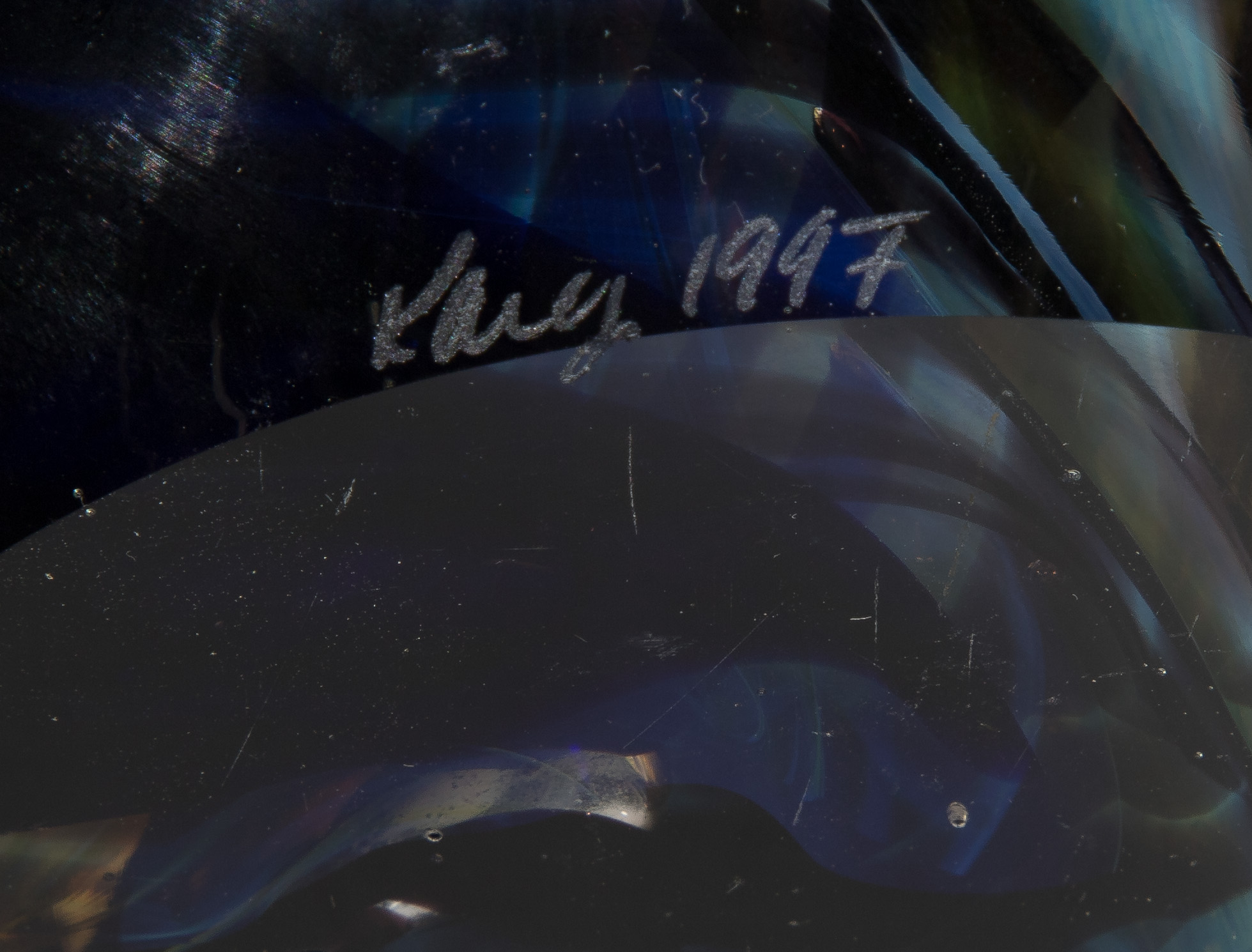 (3) total items including (2) having engraved signature with the date of 1995 or 1997; together with an unsigned paperweight attributed to Rollin Karg