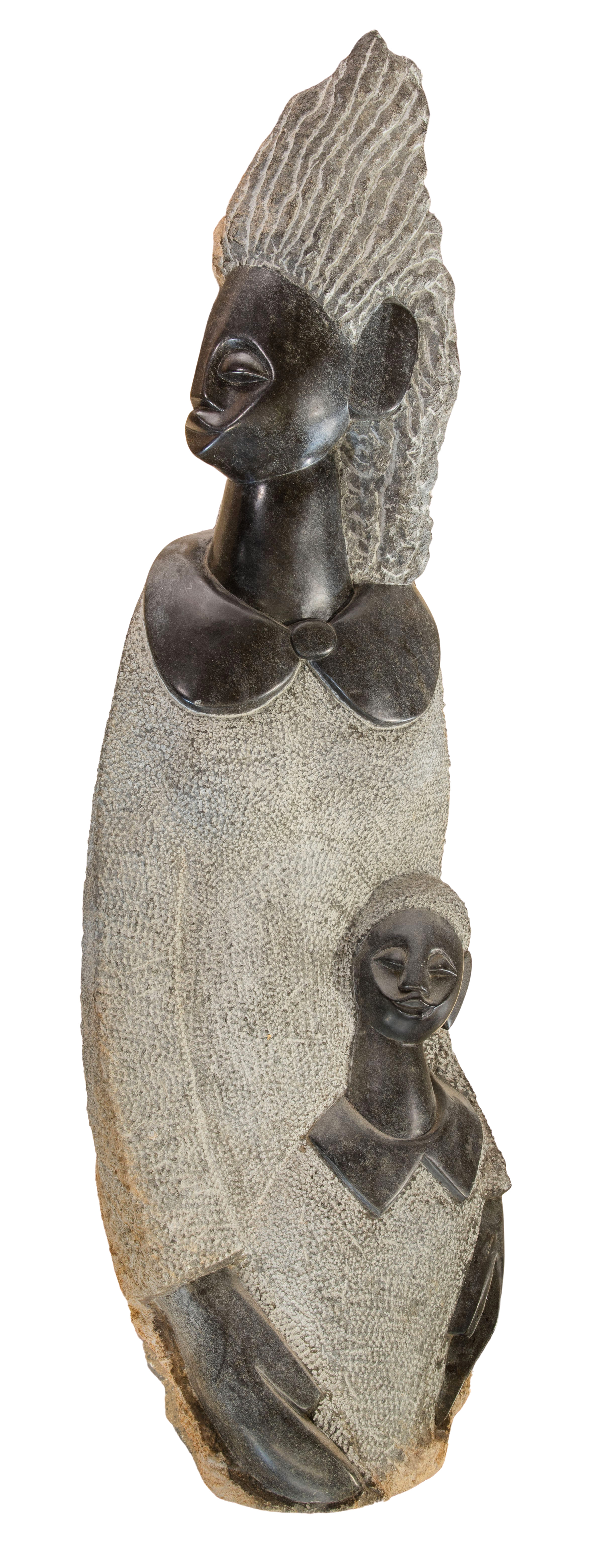 Undated, unsigned, a hand carved figure depicting a woman and child