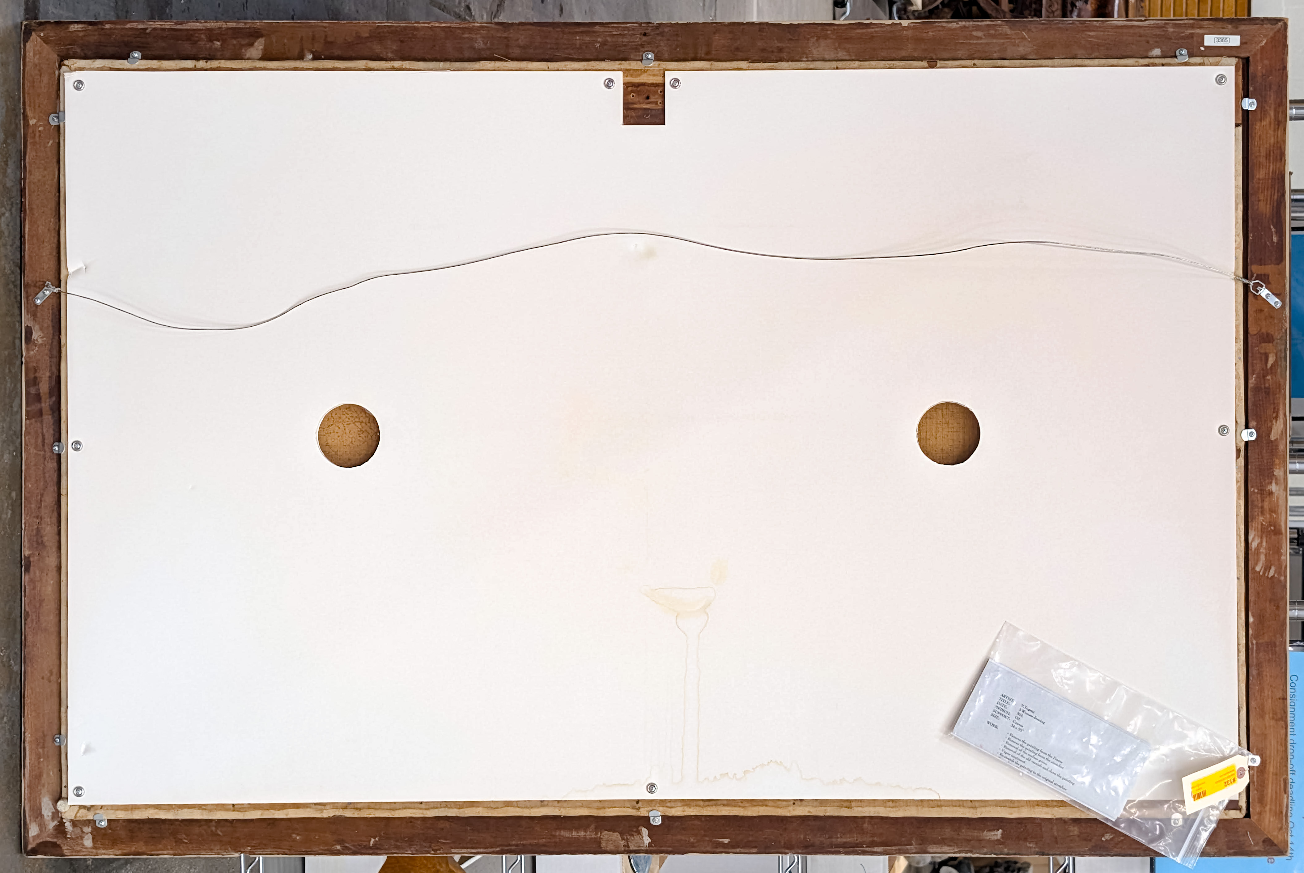 craquelure overall, cleaned, re-stretched, some inpainting, frame having moderate wear