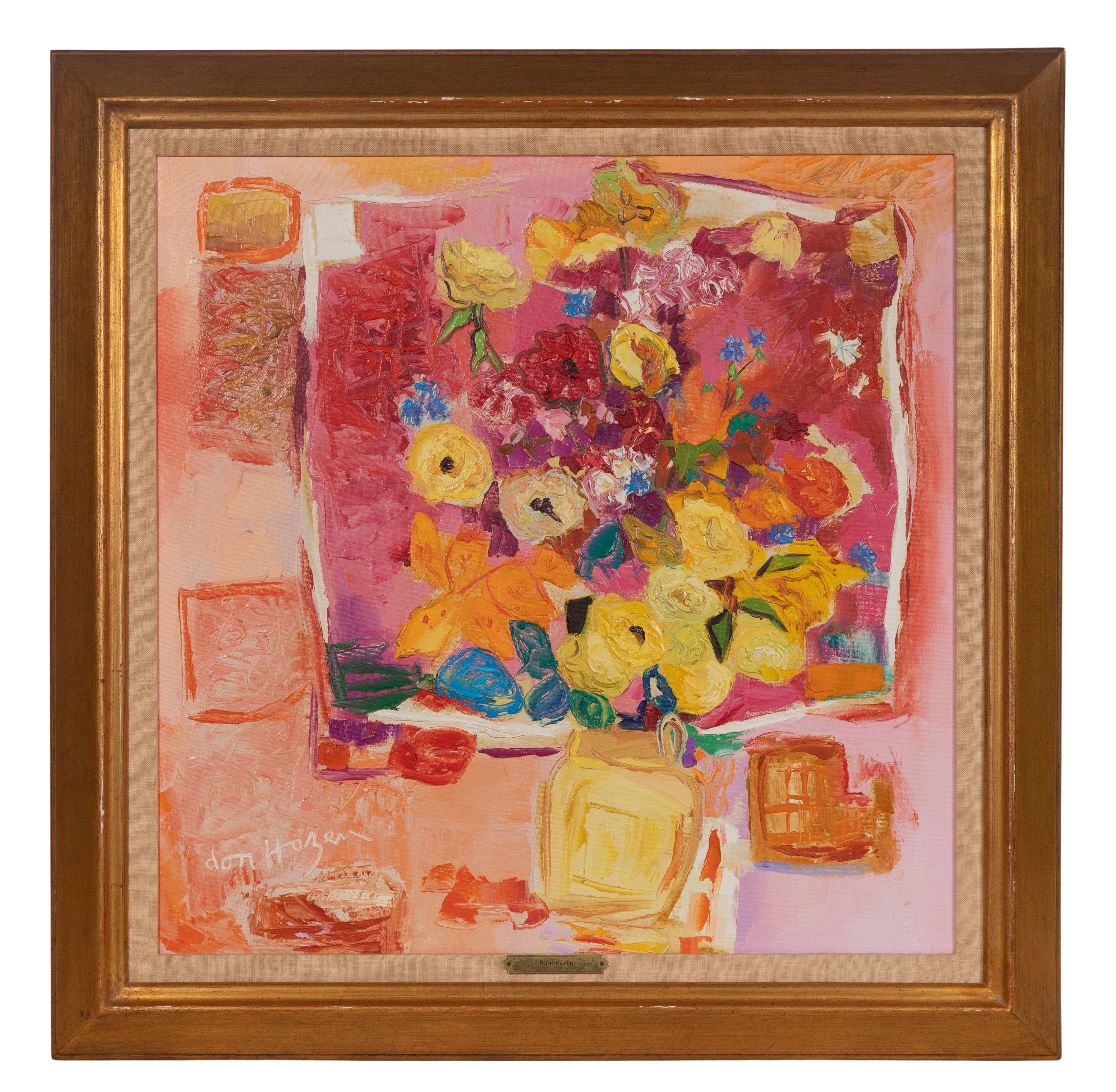 Don Hazen (American, b.1933) 'Pink, Yellow and Red' Oil on Canvas