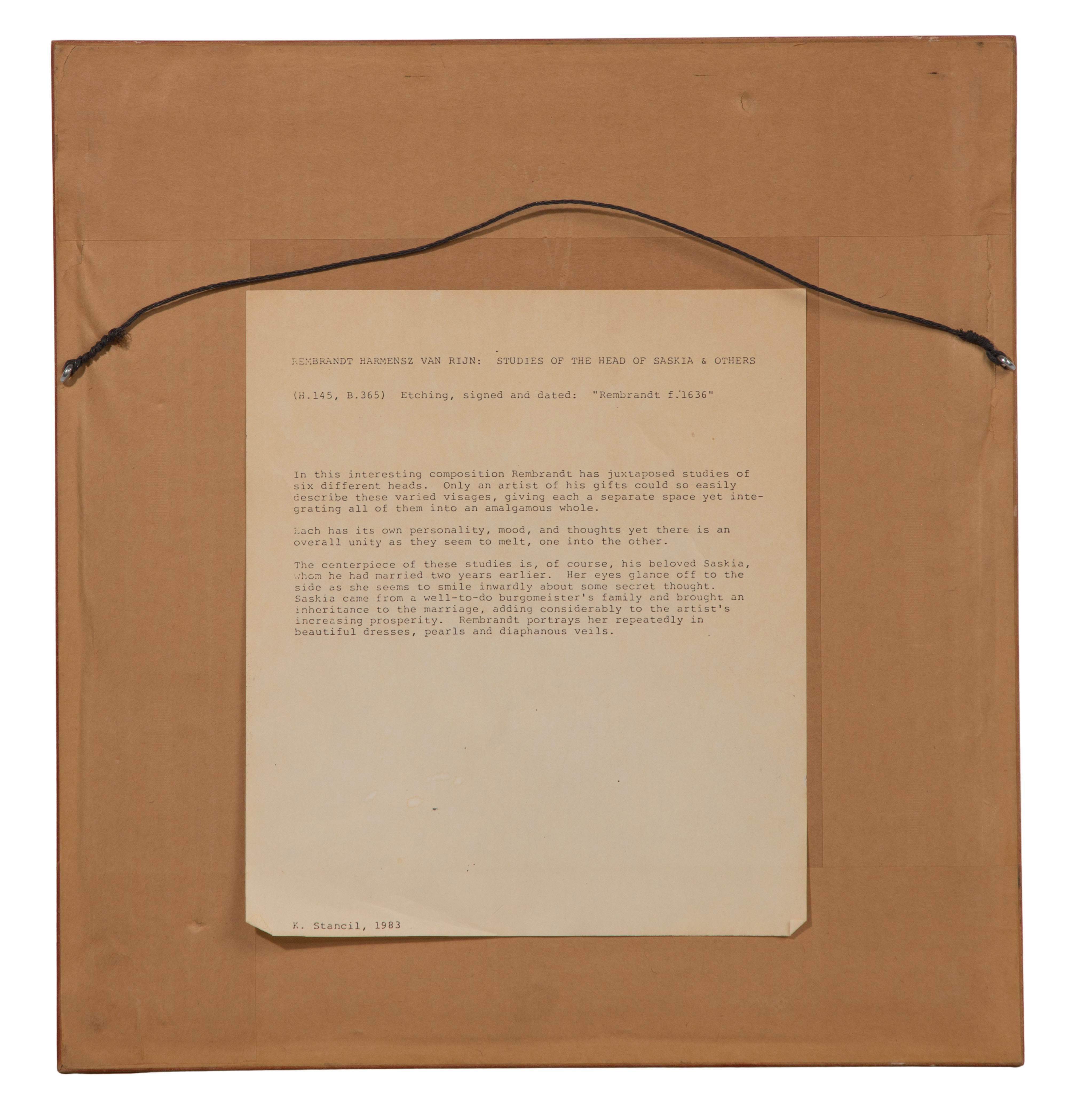 After Rembrandt Van Rijn (Dutch, 1606-1669) ‘Study of the Heads of Saskia’ Etching