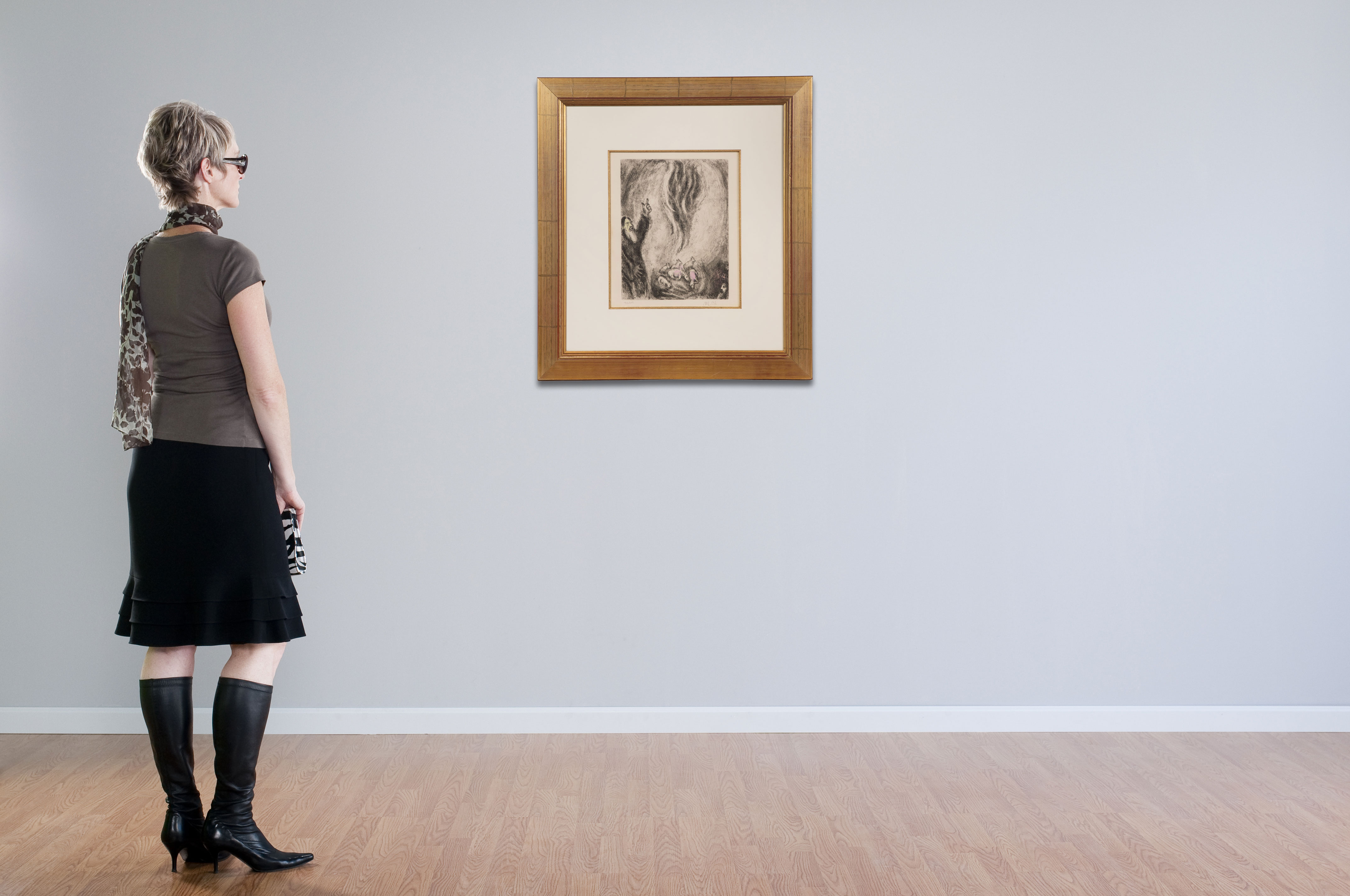 1958, pencil and plate signed, #33/100, hand colored etching on paper, from The Bible series, matted under acrylic in a gilt wood frame