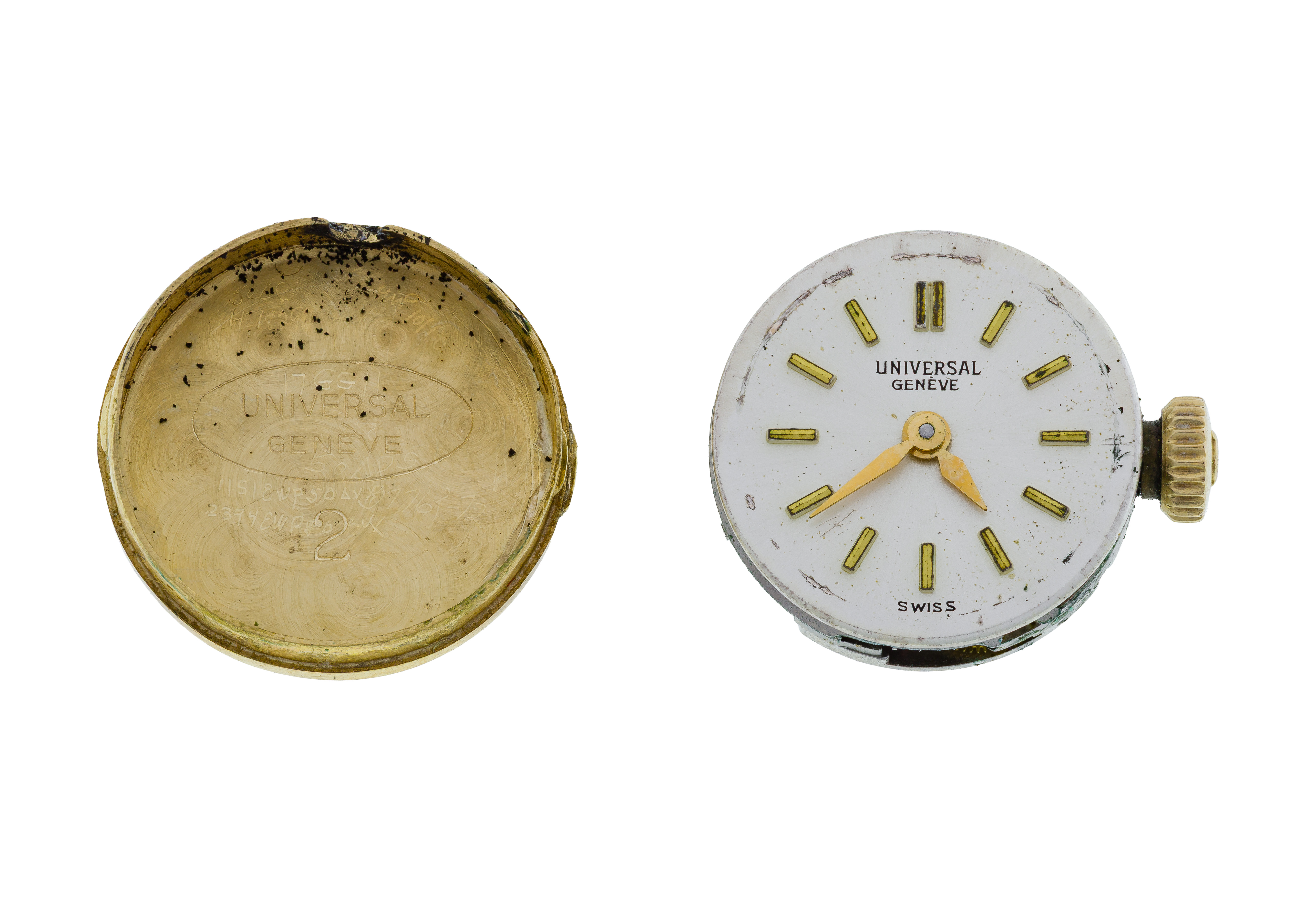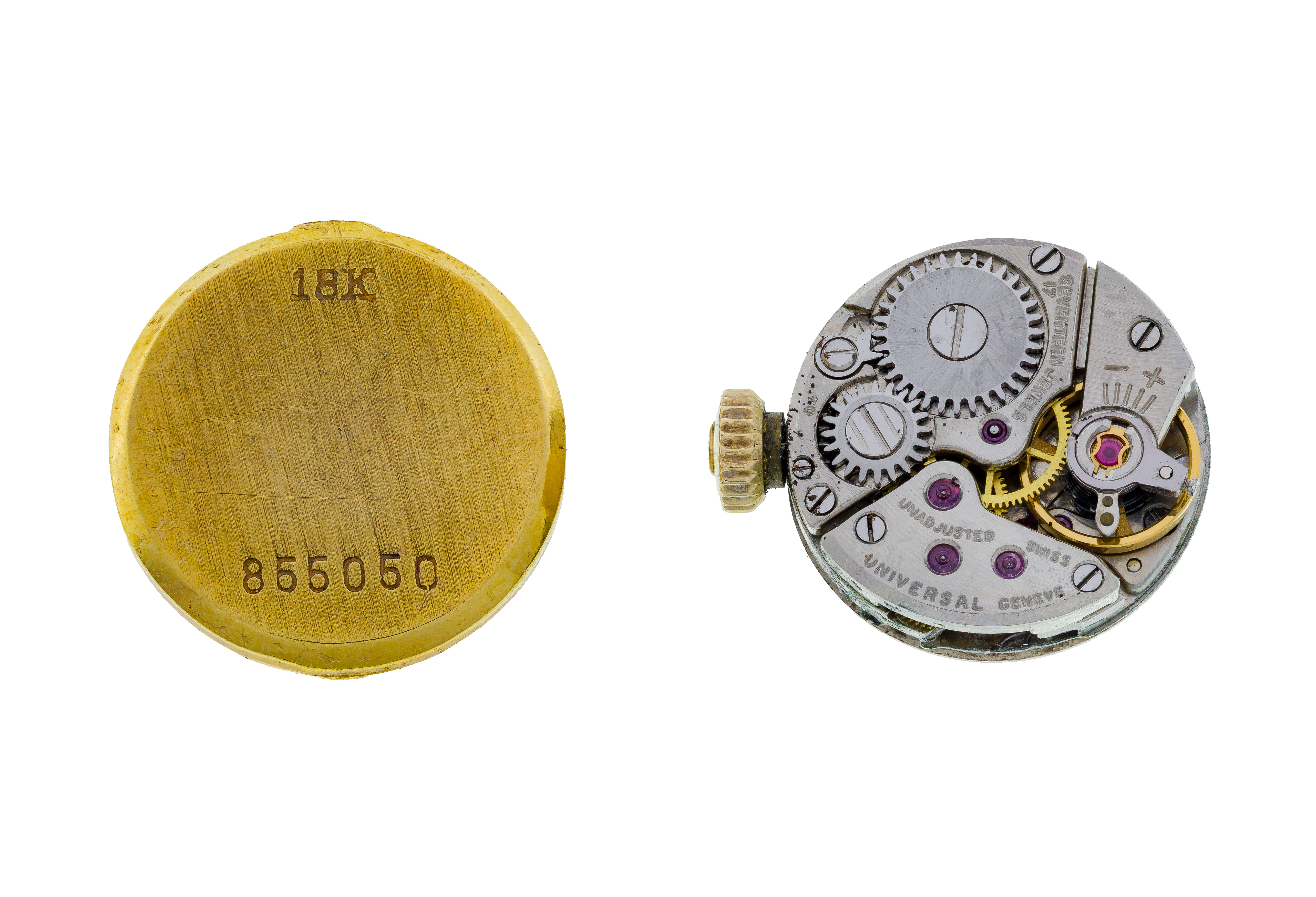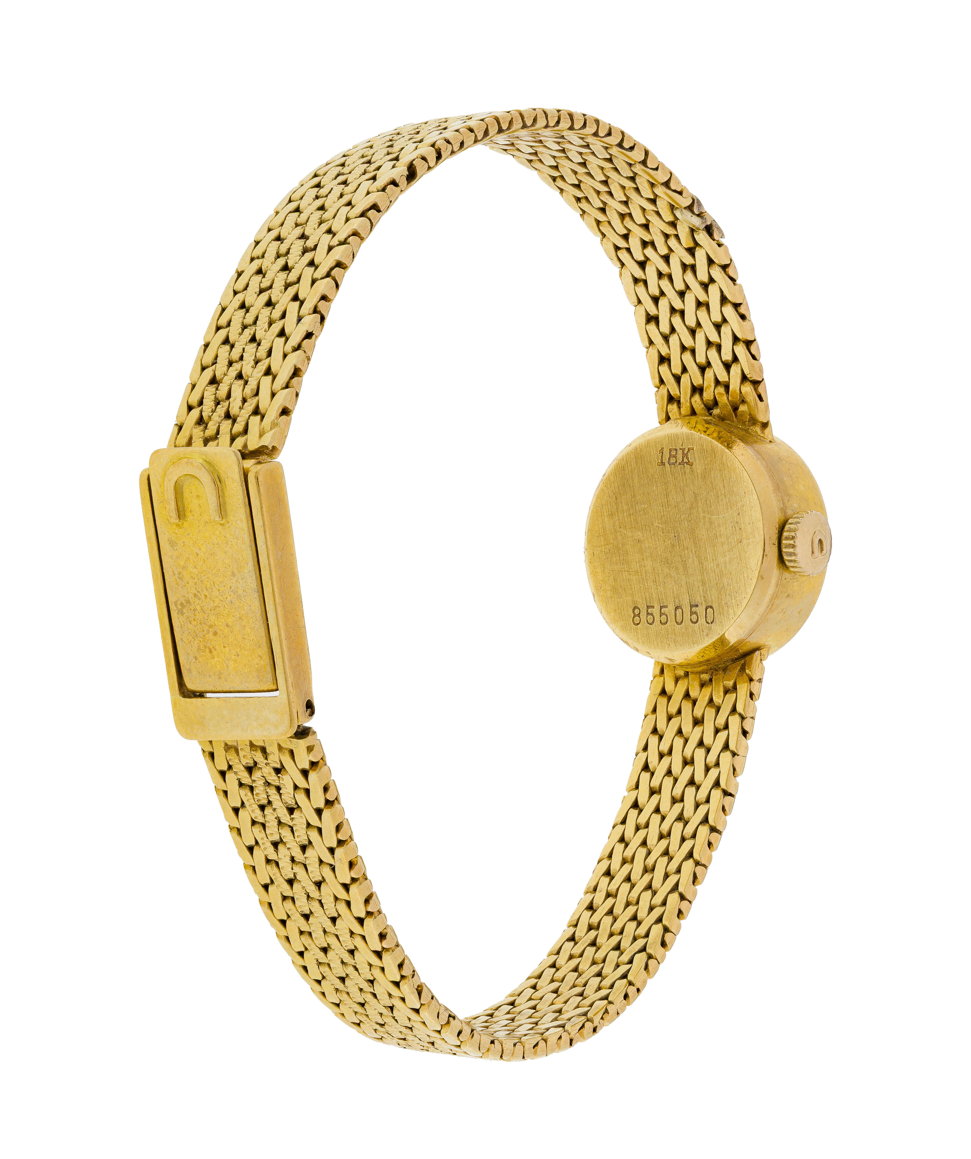 Round face having a 17-jewel movement (marked ’18k’ on back of case and clasp)