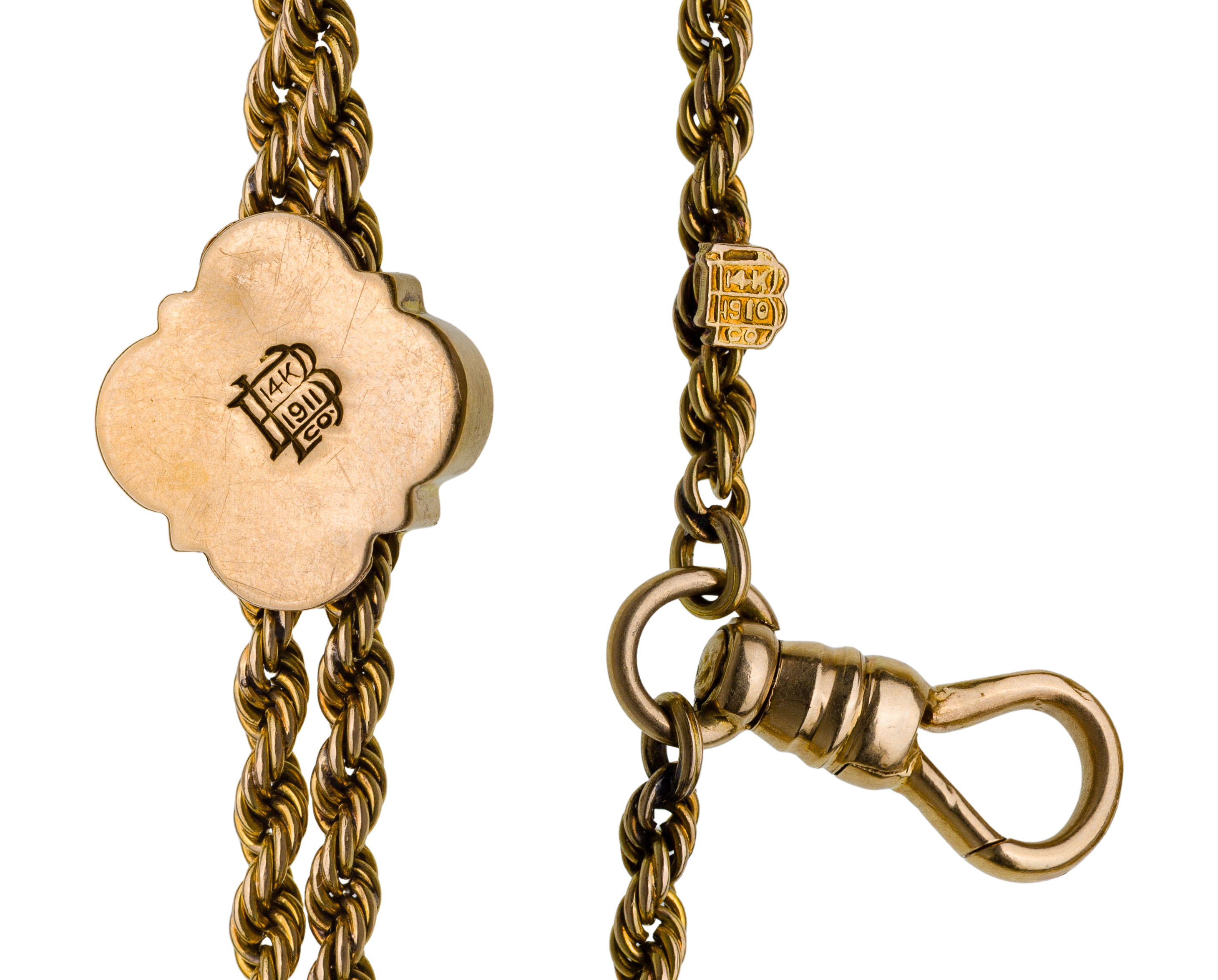 Twisted rope having a slide (slide and tag on chain marked ’14k’)