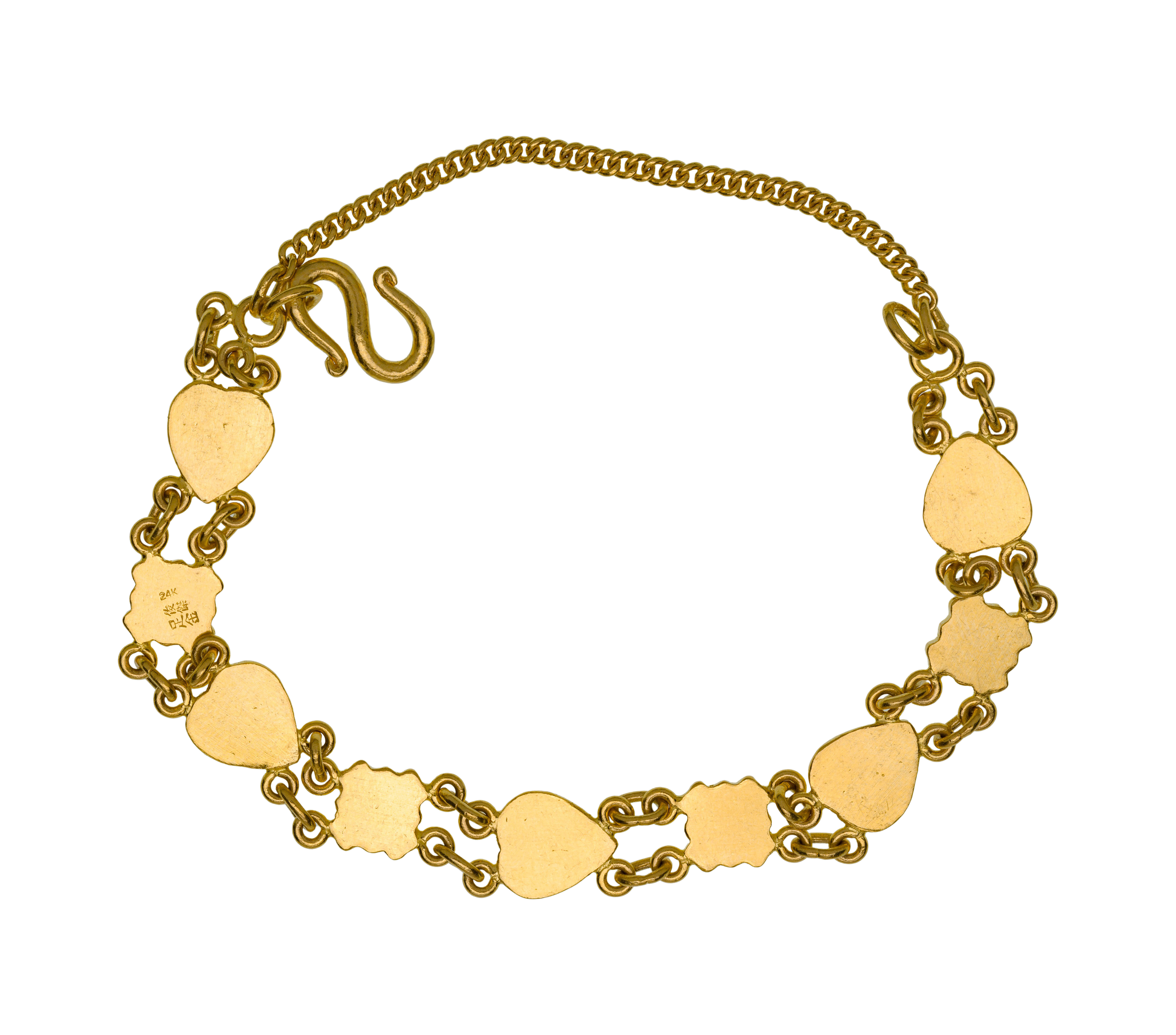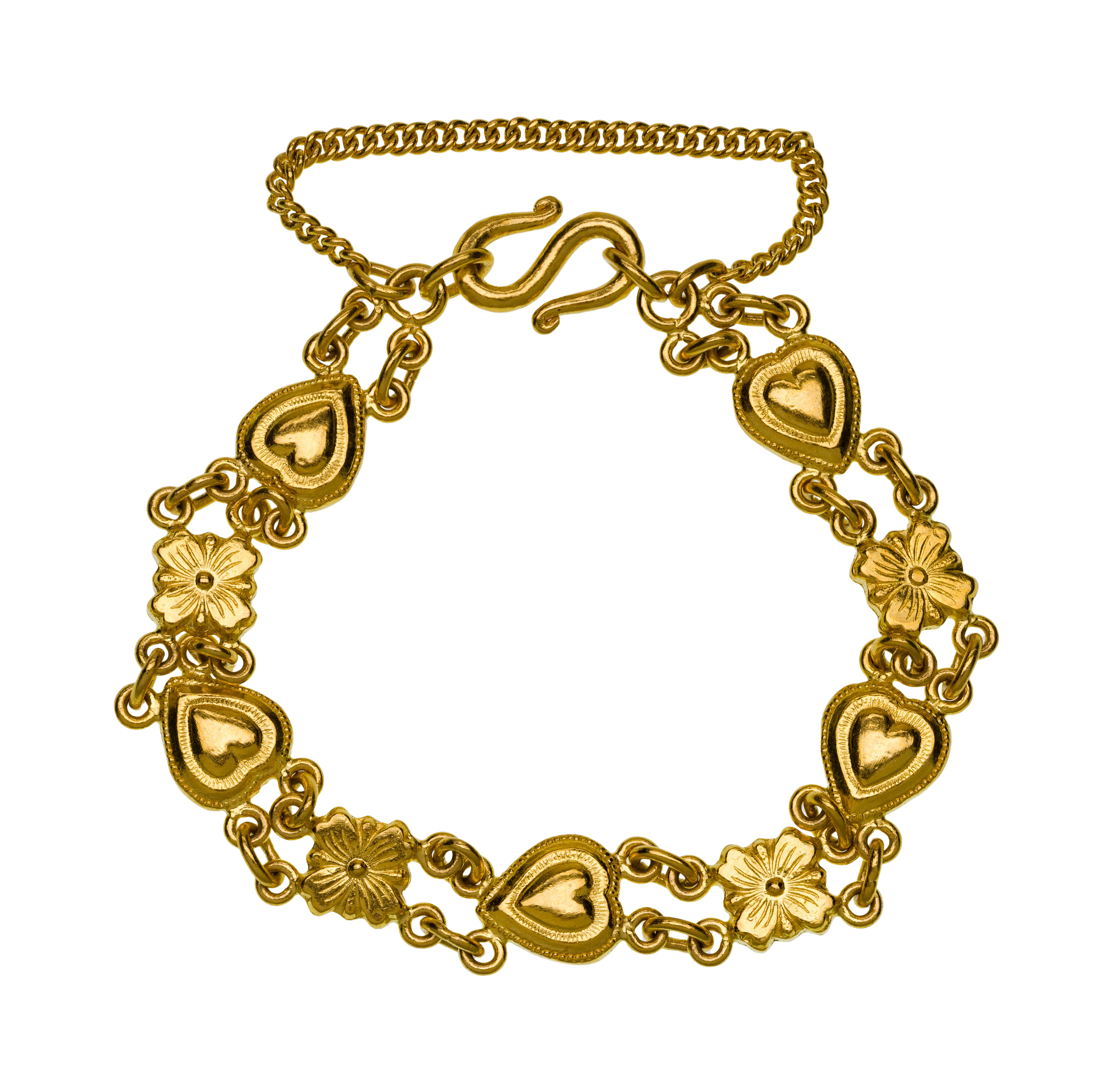 Having heart and flower links connected by chain, S-form clasp (foreign marks)