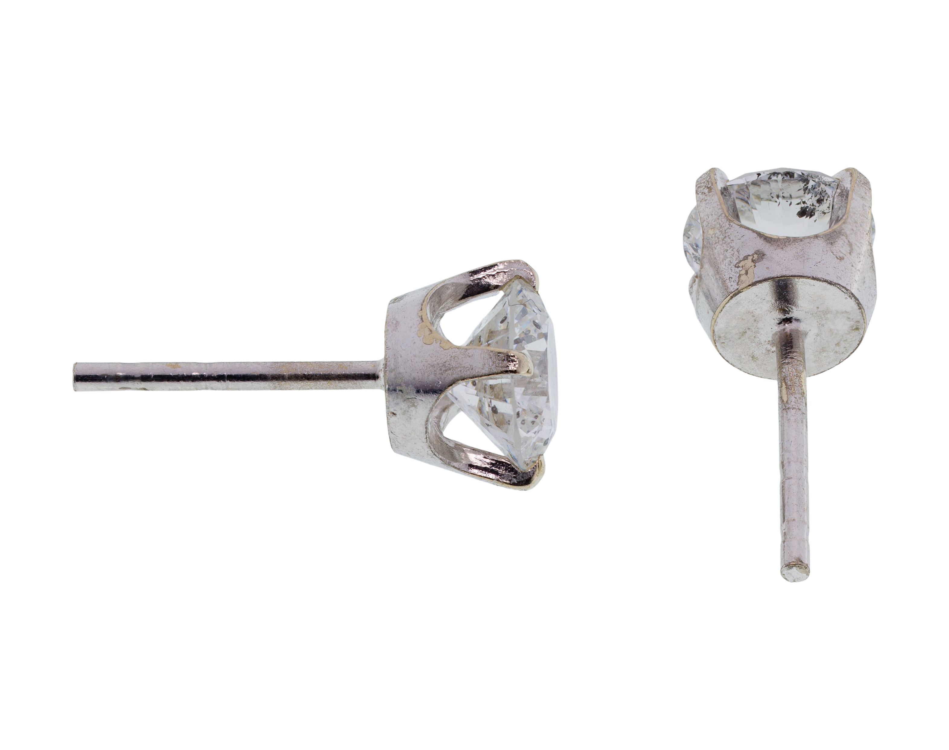 A pair of pierced stud earrings having a round cut diamond weighing approximately 0.70 carat each, J/K color, I-2 clarity (unmarked)