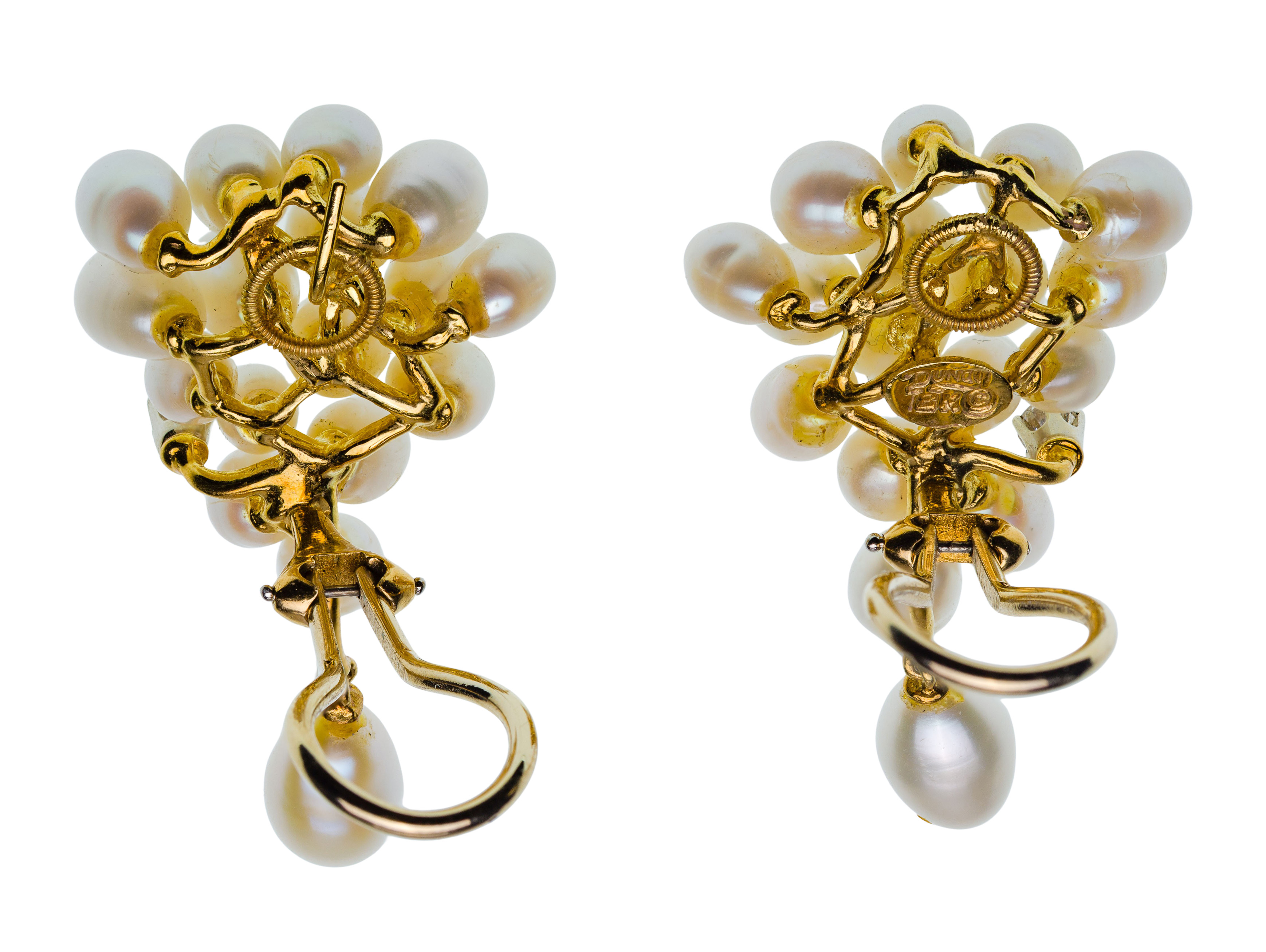 Henry Dunay 18k Yellow Gold, Pearl and Diamond Clip-on Earrings