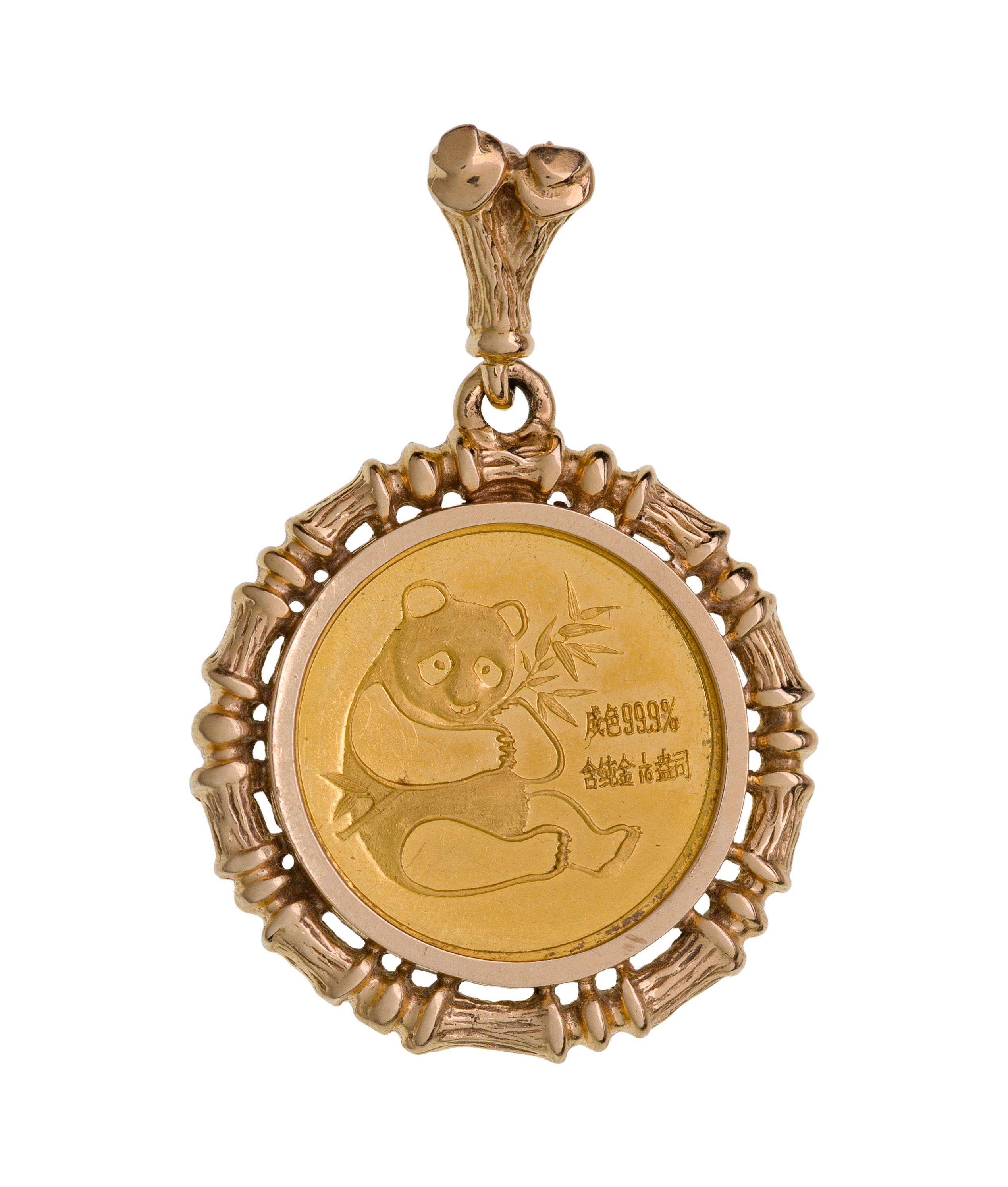 Panda coin in bail pendant (bail marked ’14k’)
