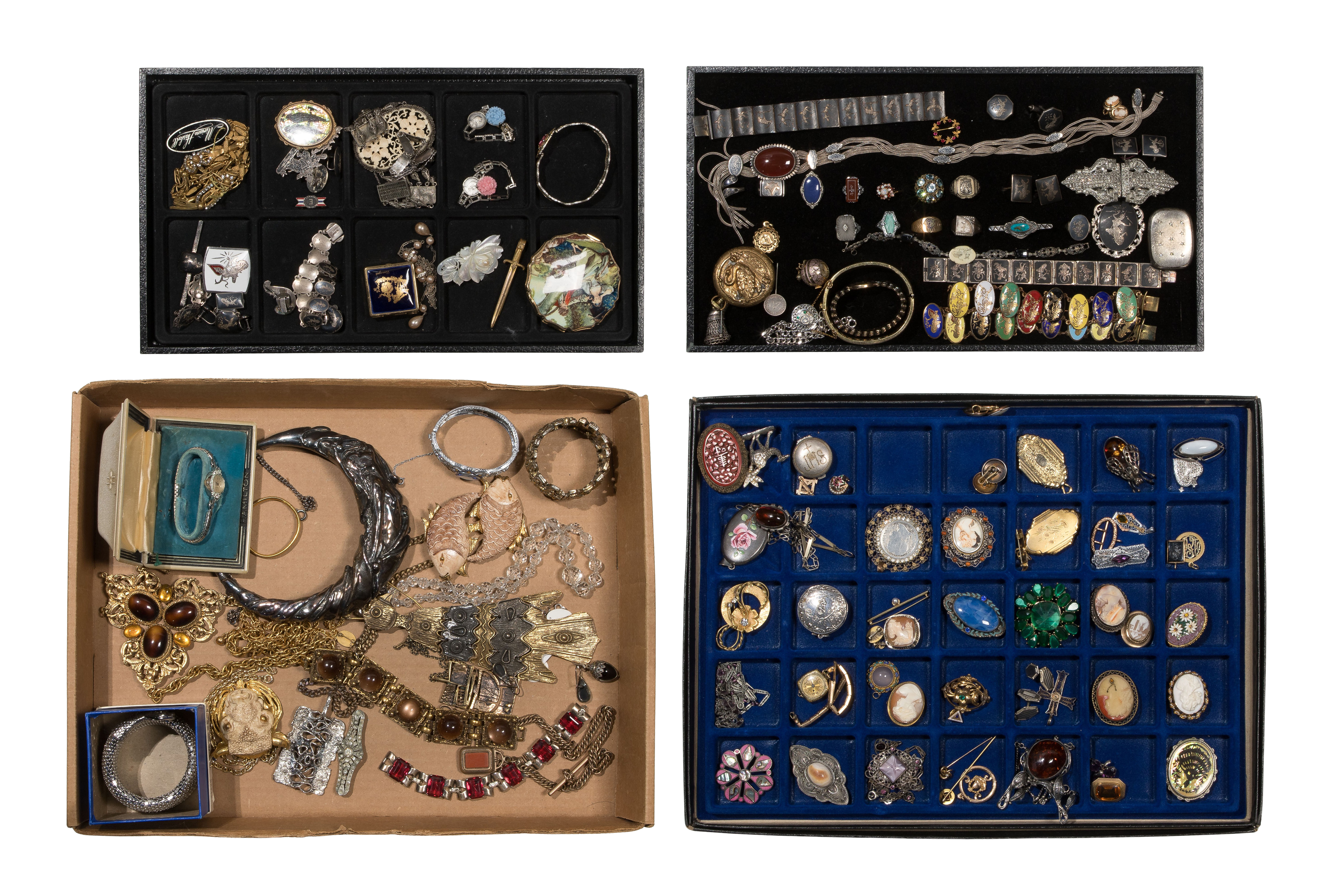 Disclaimers: some items may be bent or broken, missing stones or missing their mates; display trays not included
