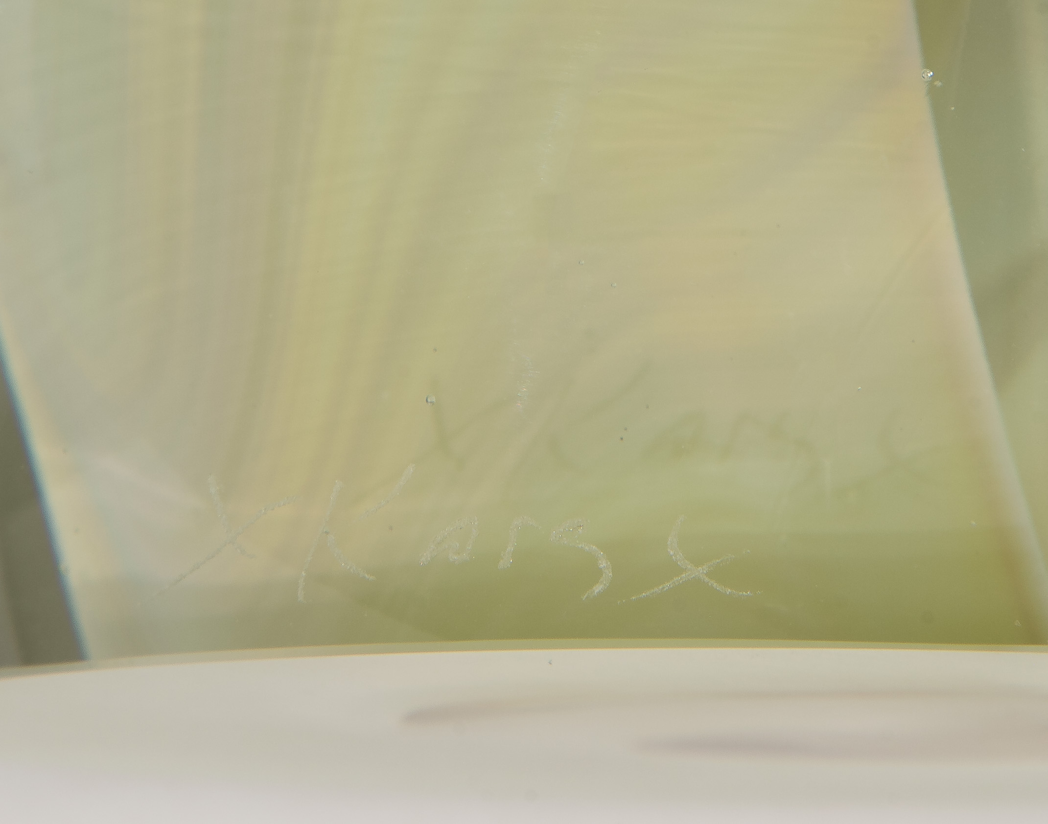 (4) total items including (3) having etched signatures, one dated 2003 and two undated; together with an Andrew Karg art glass sculpture
