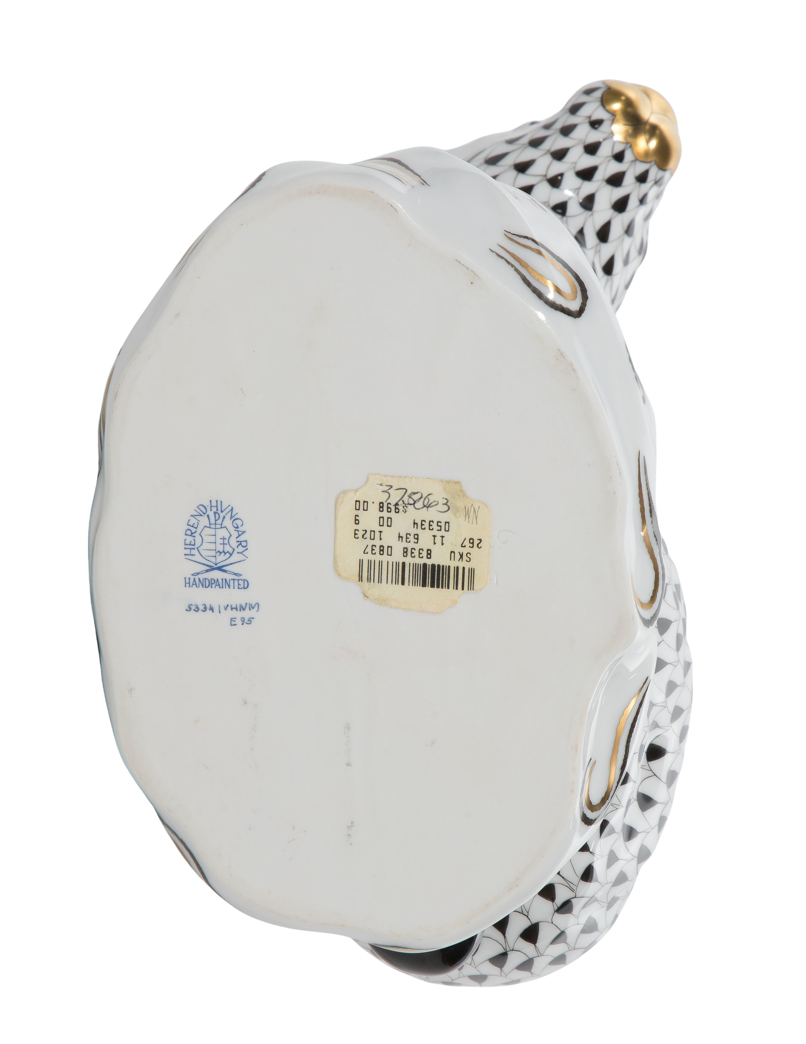 A #5534 large black fishnet sitting rabbit, gilt details and mark underside