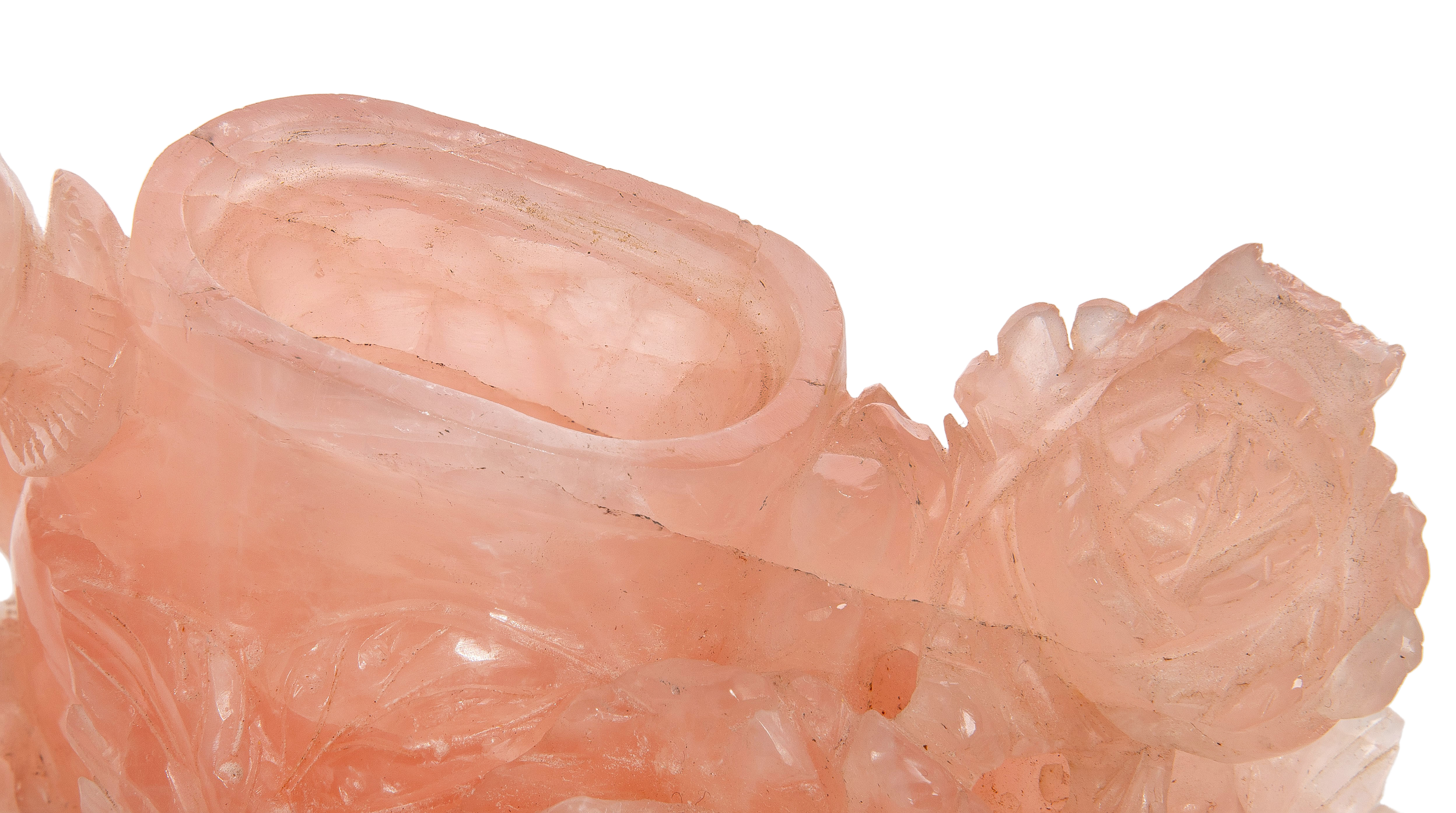 Condition: a rooster having a chipped comb, urn having chipped petal, pink females having repaired vine between heads, most having internal flaws, stress cracks