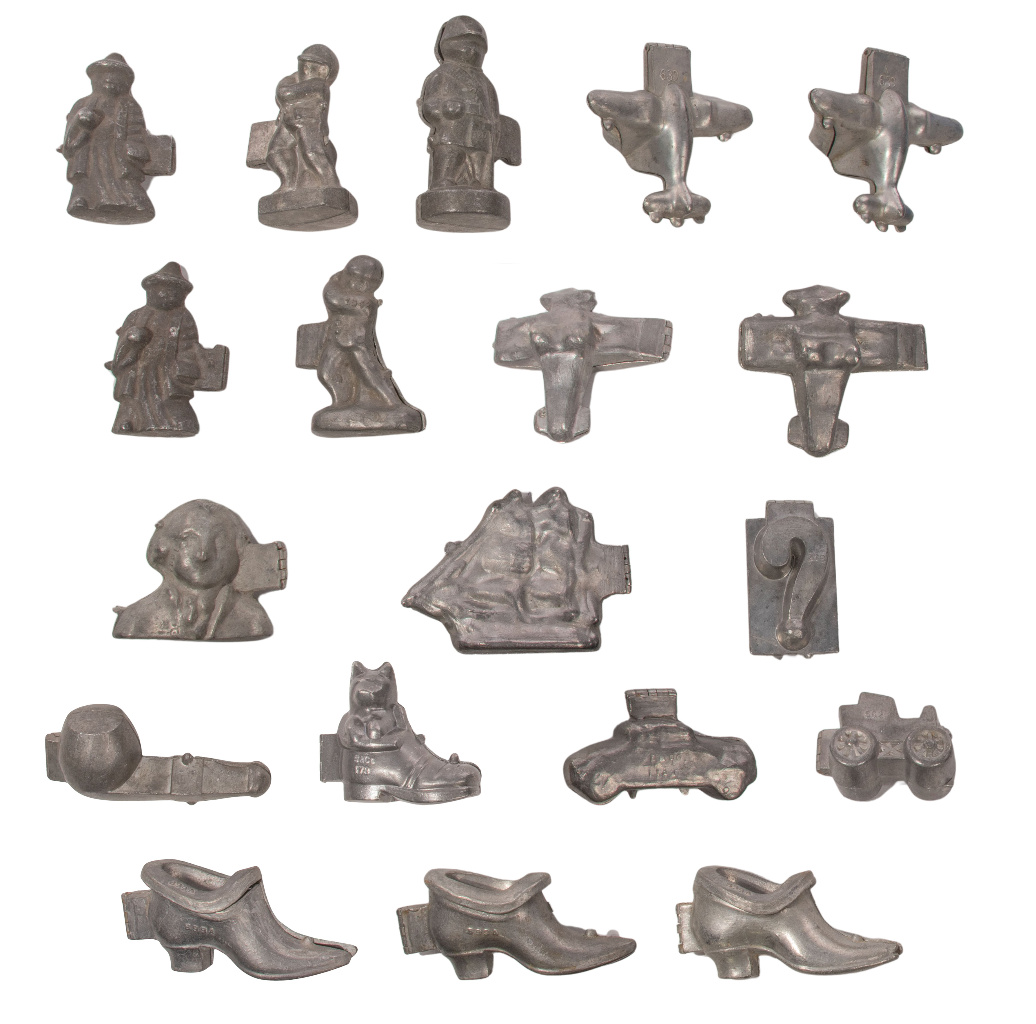 (19) items including George Washington, airplanes, figures, cars, shoes, ship, question mark, shoe with dog and smoking pipe, some marked ‘E&Co.’ for Eppelsheimer & Co