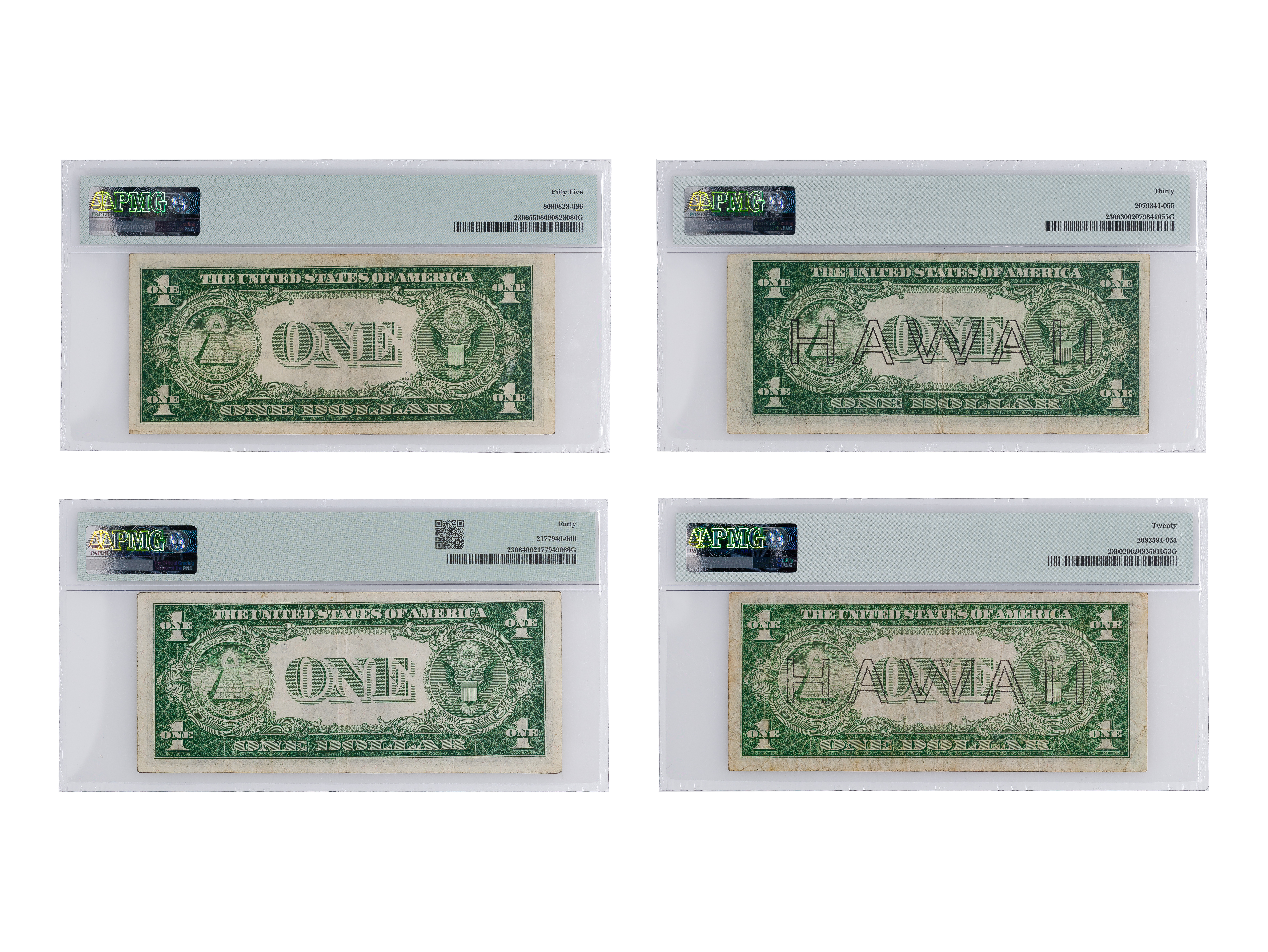 (4) notes including Fr#2306 AU-55 PMG, Fr#2306 XF-40 PMG, Fr#2300 VF-30 PMG and Fr#2300 VF-20 PMG