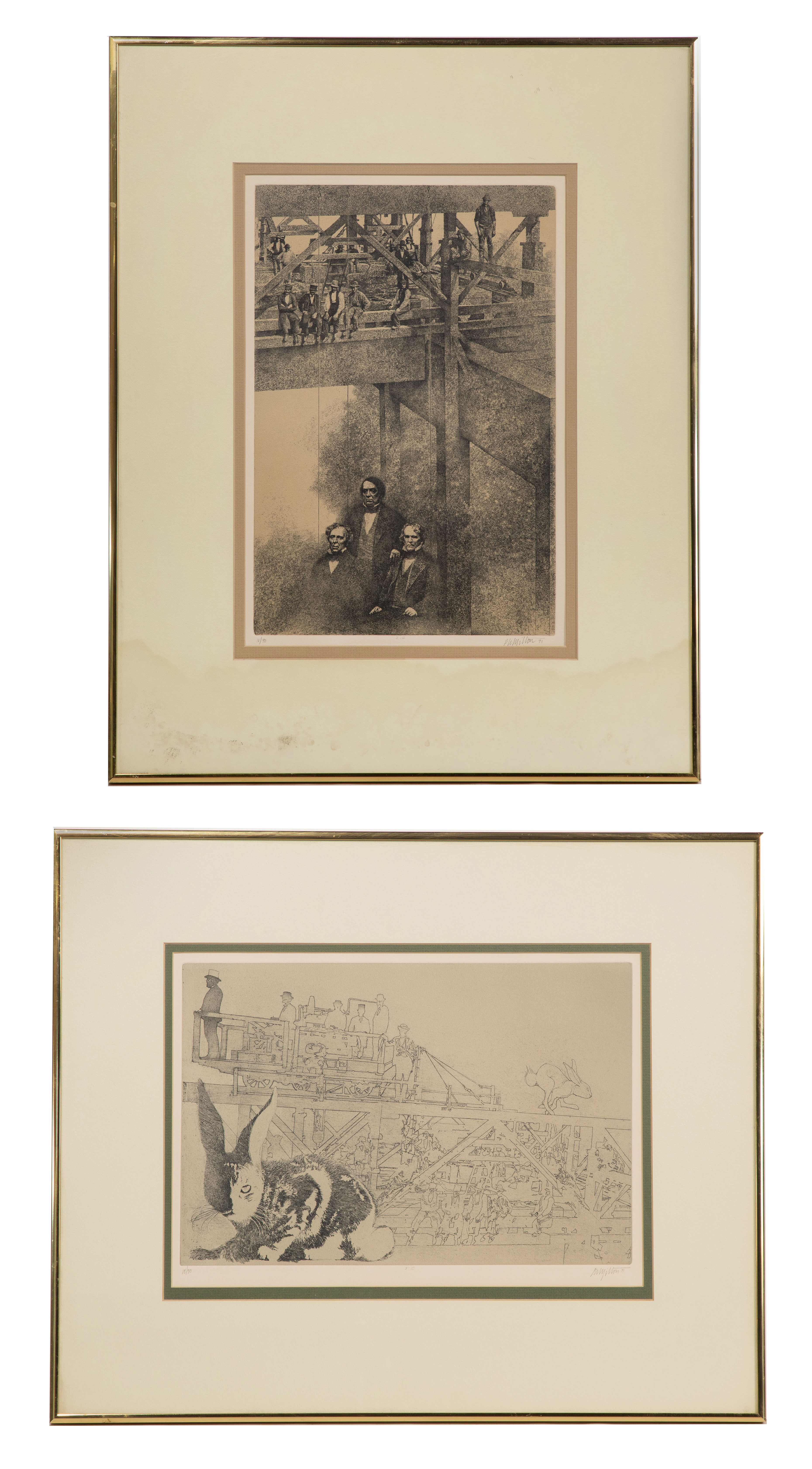 (2) 1971 items, both signed etchings from the titled series including ‘I:2’, #11/90 and ‘I:5’, #18/90, both matted under glass in metallic frames, ‘I:5’ retaining Roten Galleries label
