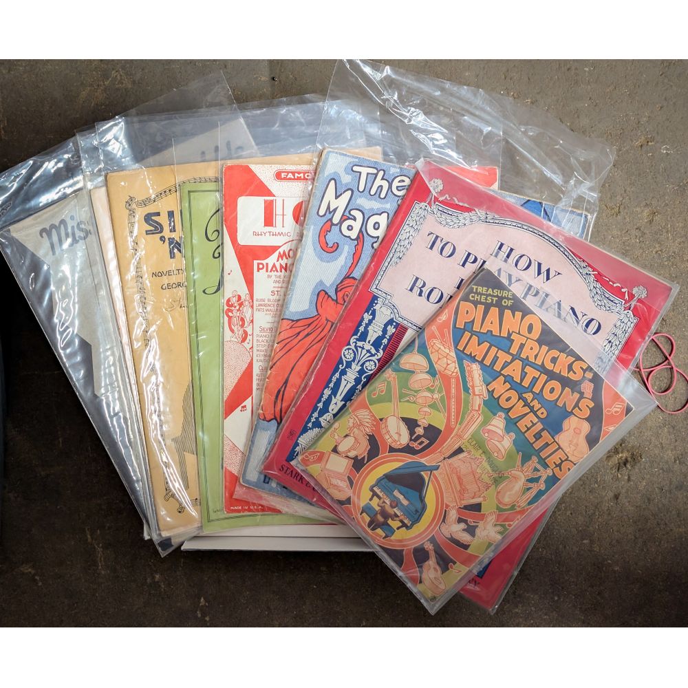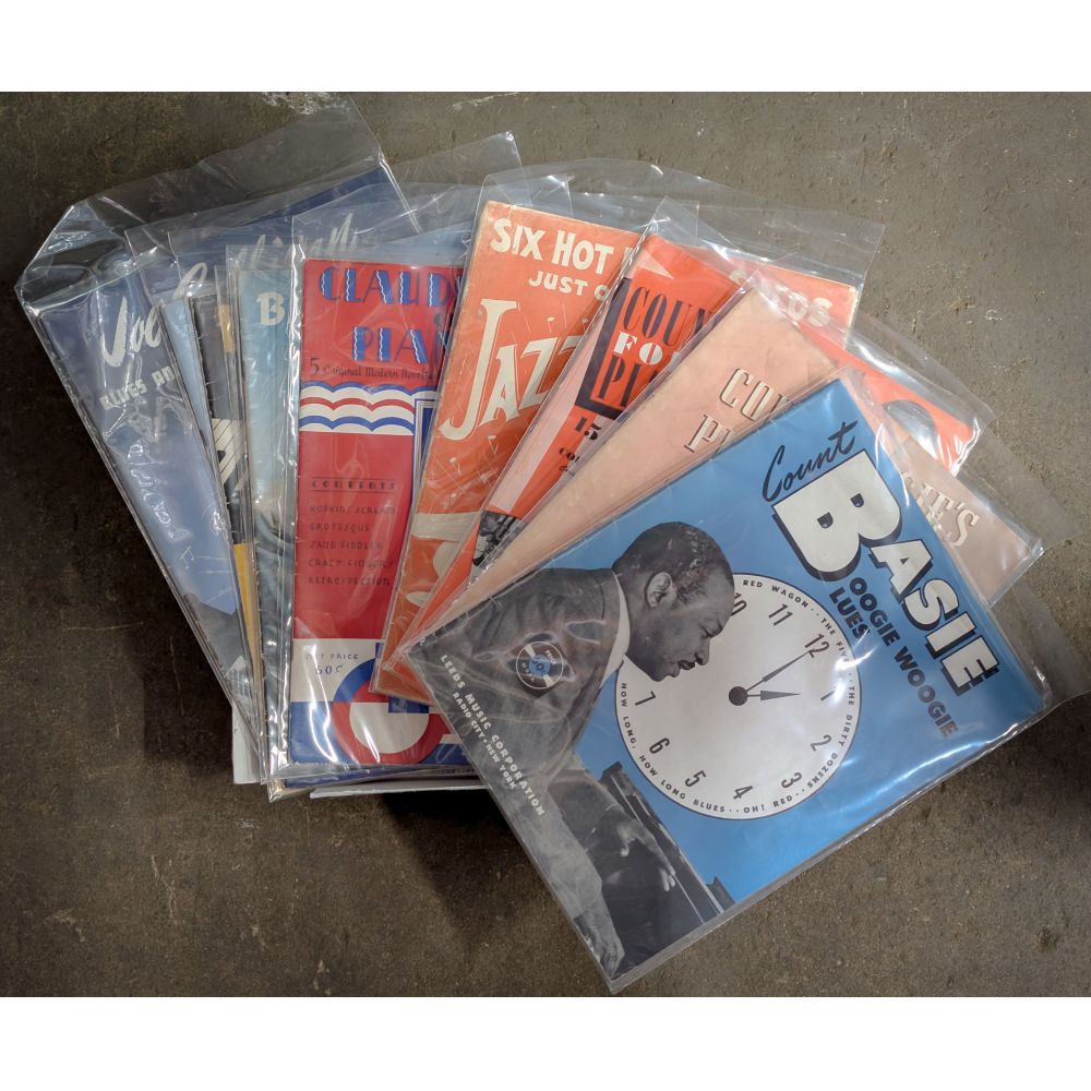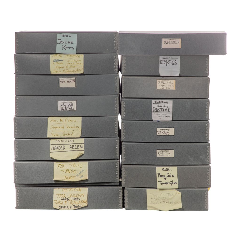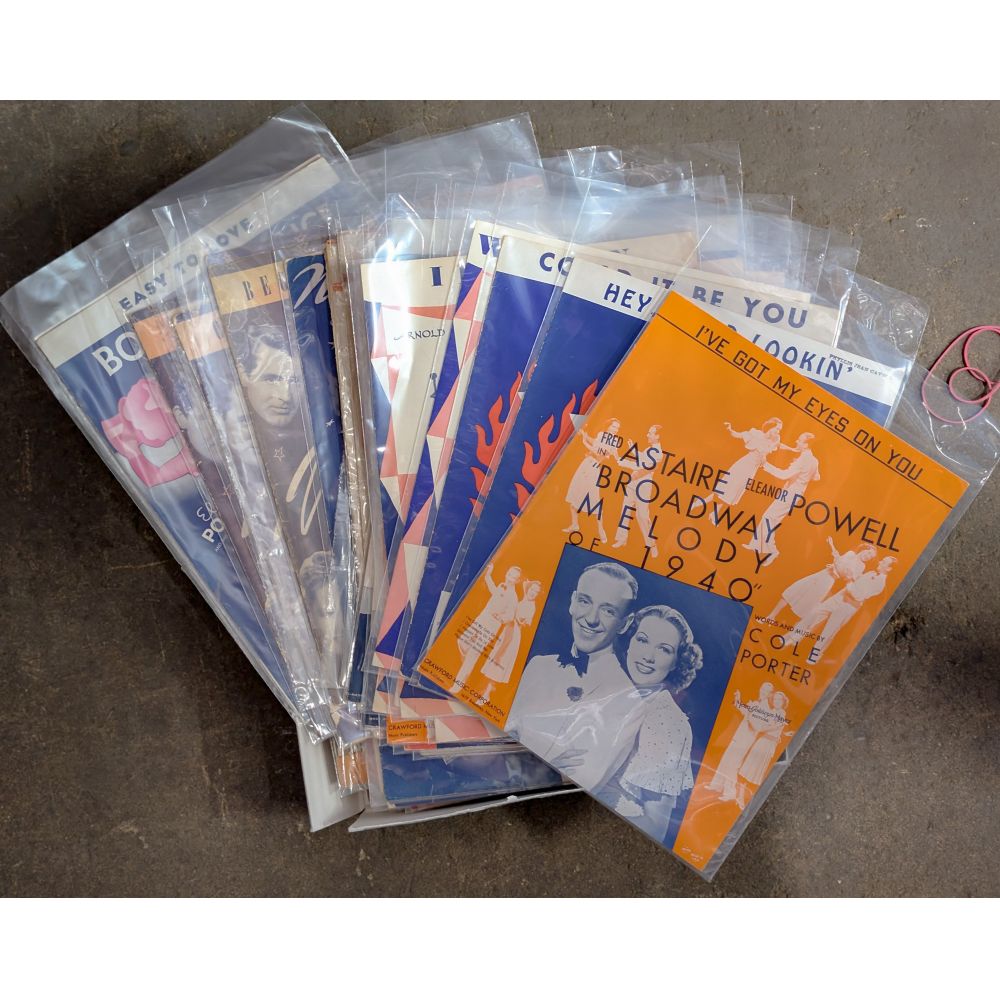 Approximately (2500) items of sheet music, including turn of the century, big band, Broadway, blues, piano solos having artists such as George M. Cohan, Irving Berlin, Cole Porter, Jerome Kern, Jelly Roll Morton, some covers having vibrant lithographic art illustrations, most stored in plastic sleeves
