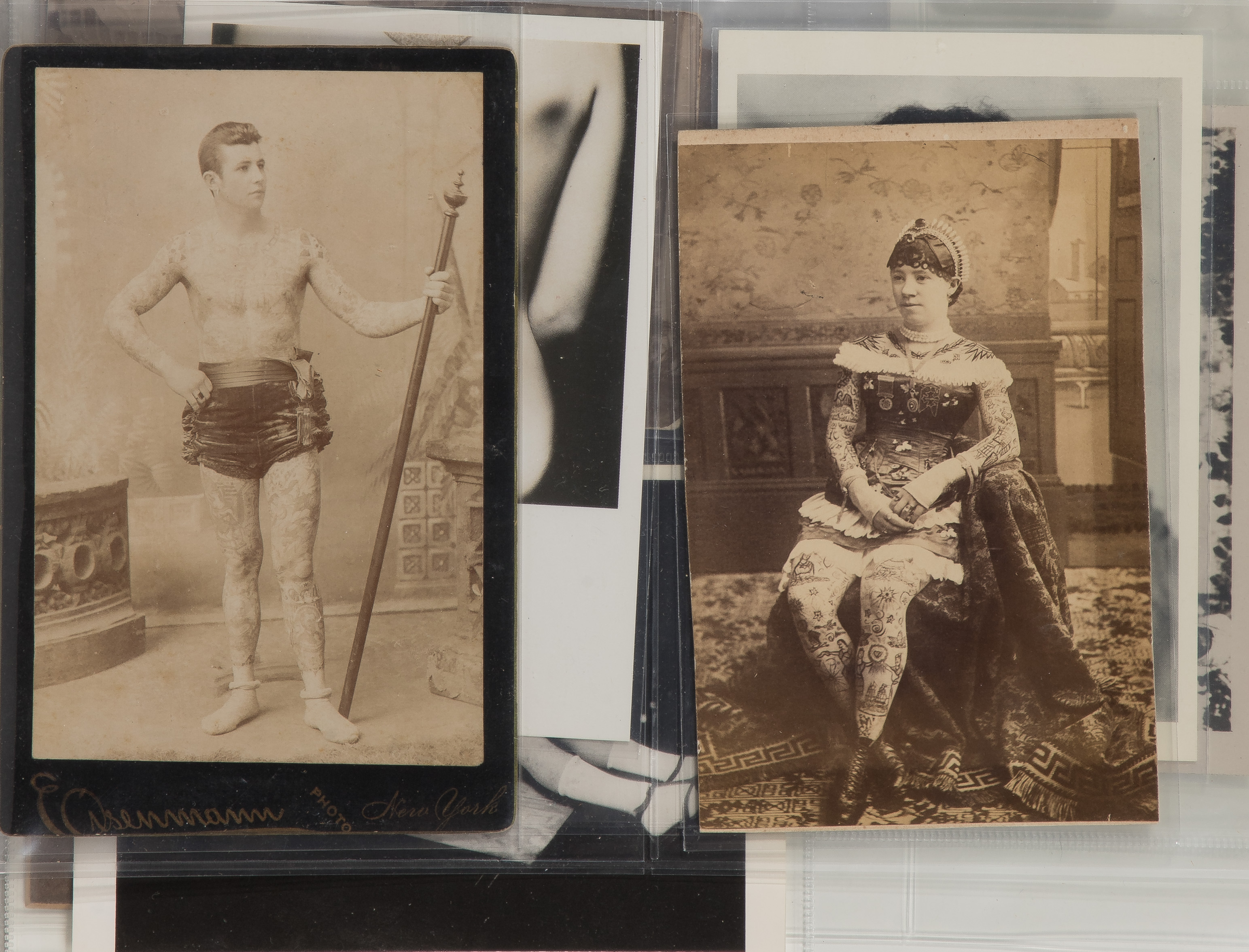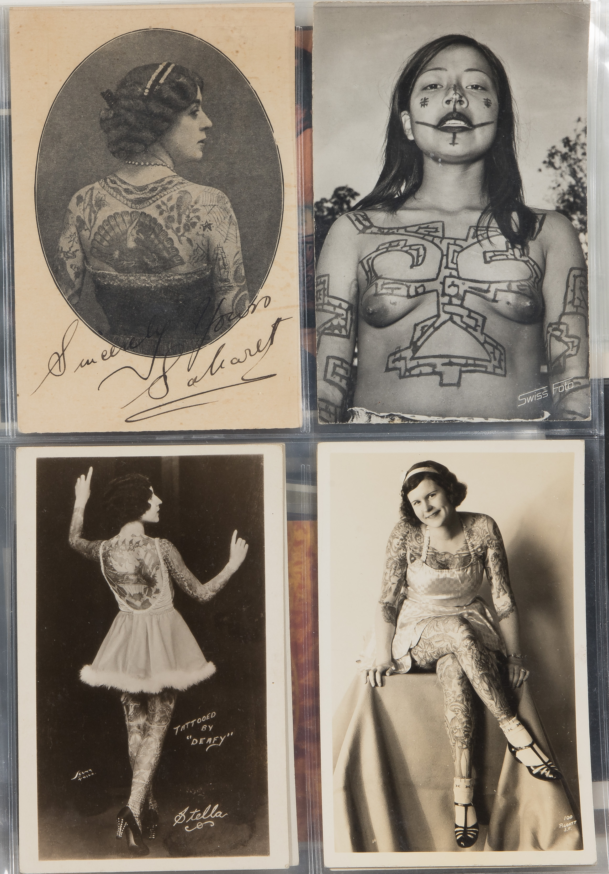 Approximately (135) items including postcards and stereoviews depicting tramps as well as individuals having body modifications and tattoos from around the world, most items contained in binders