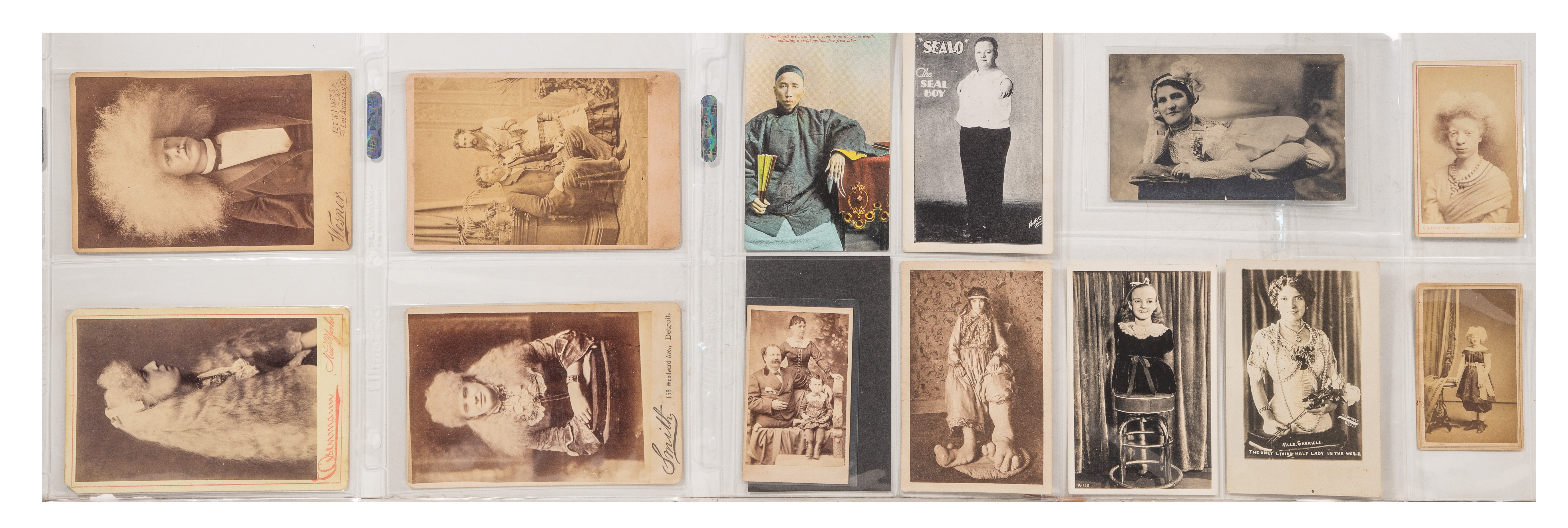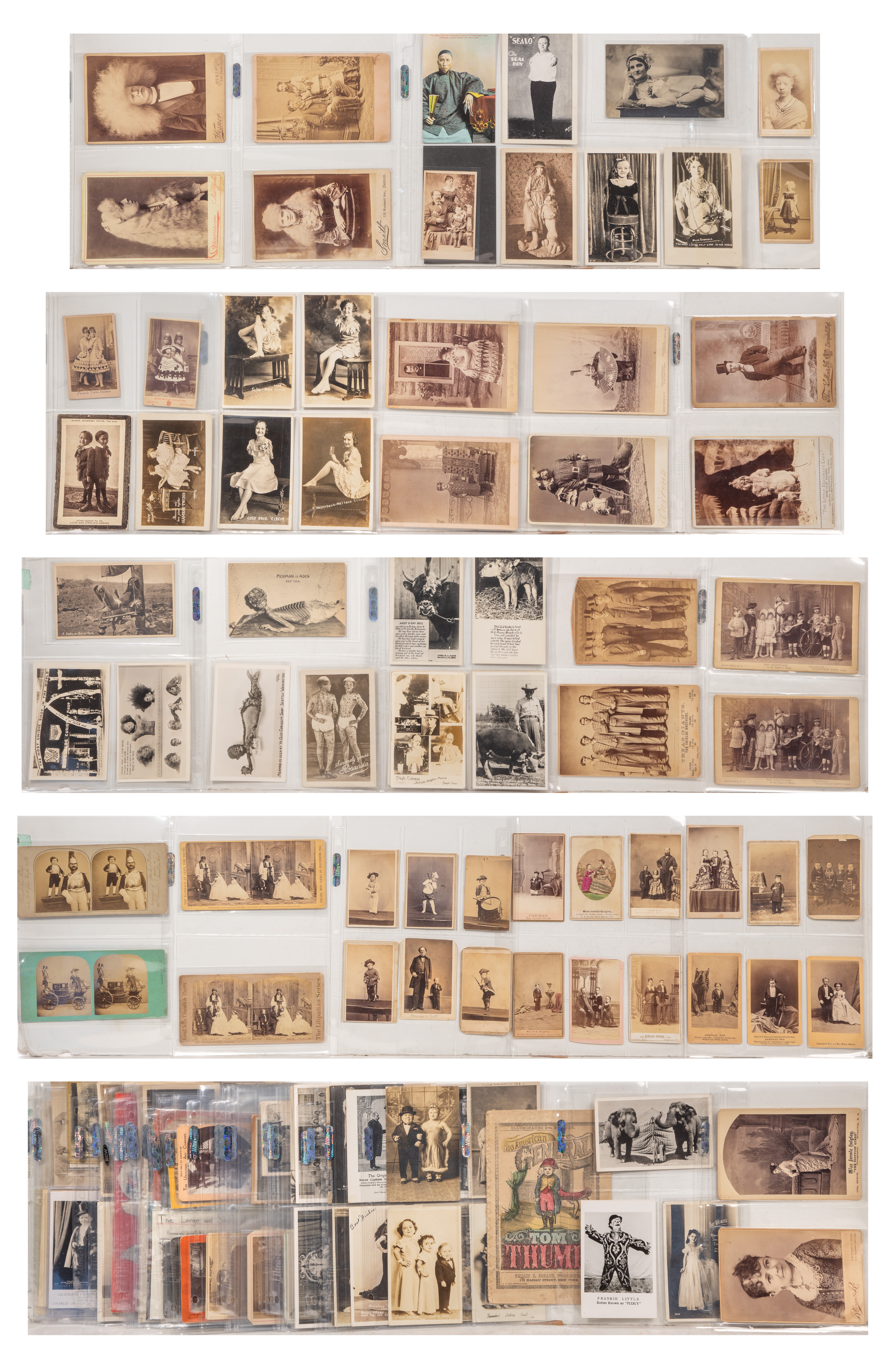 Approximately (160) total items including cabinet cards, cartes de visite, stereoviews and other images of little people, conjoined twins as well as natural and fabricated curiosities; together with printed ephemera including a 19th century pamphlet ‘The American General Tom Thumb’