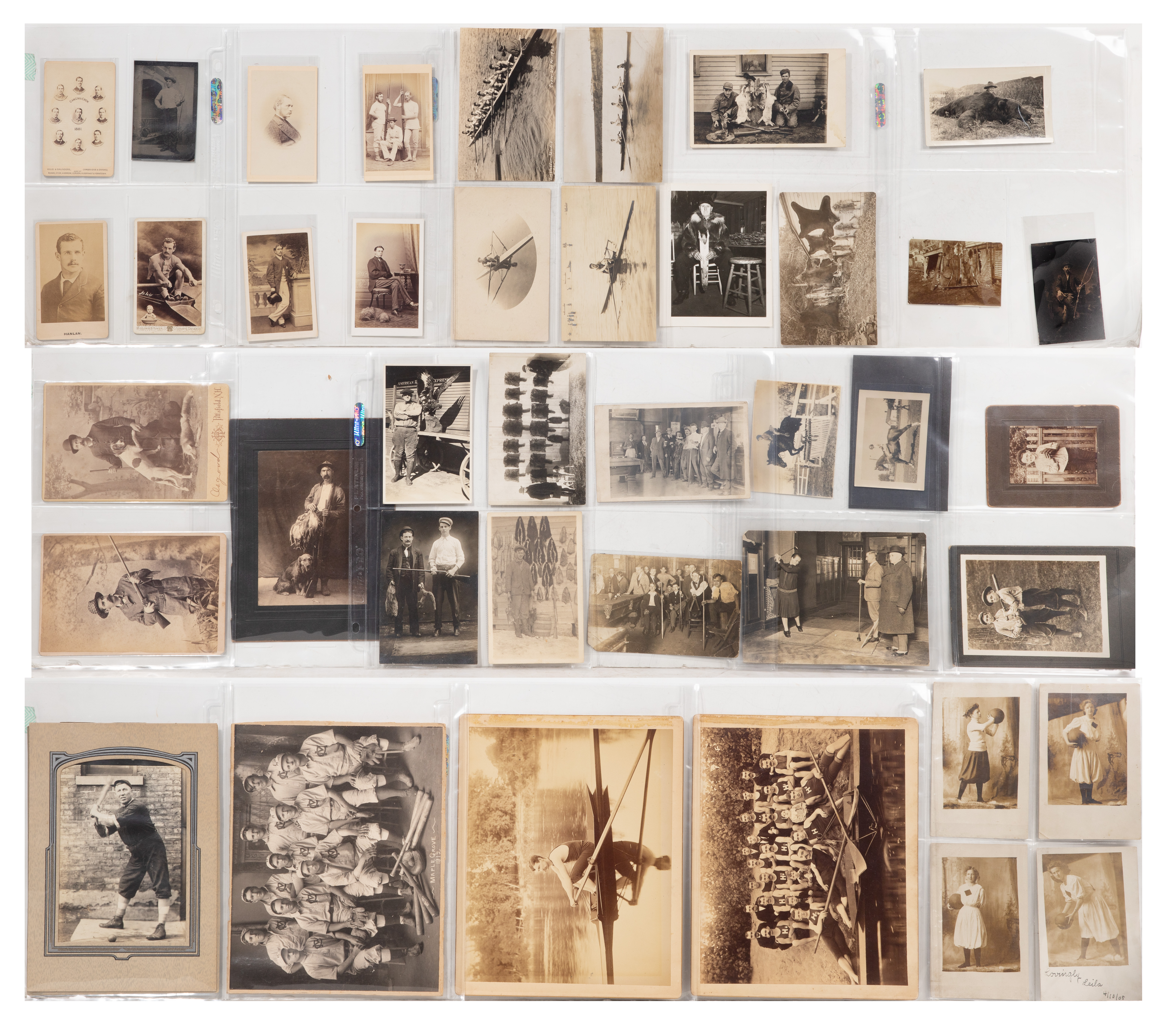 Approximately (100) items including hockey, tennis, rowing, football, baseball, some in a binder