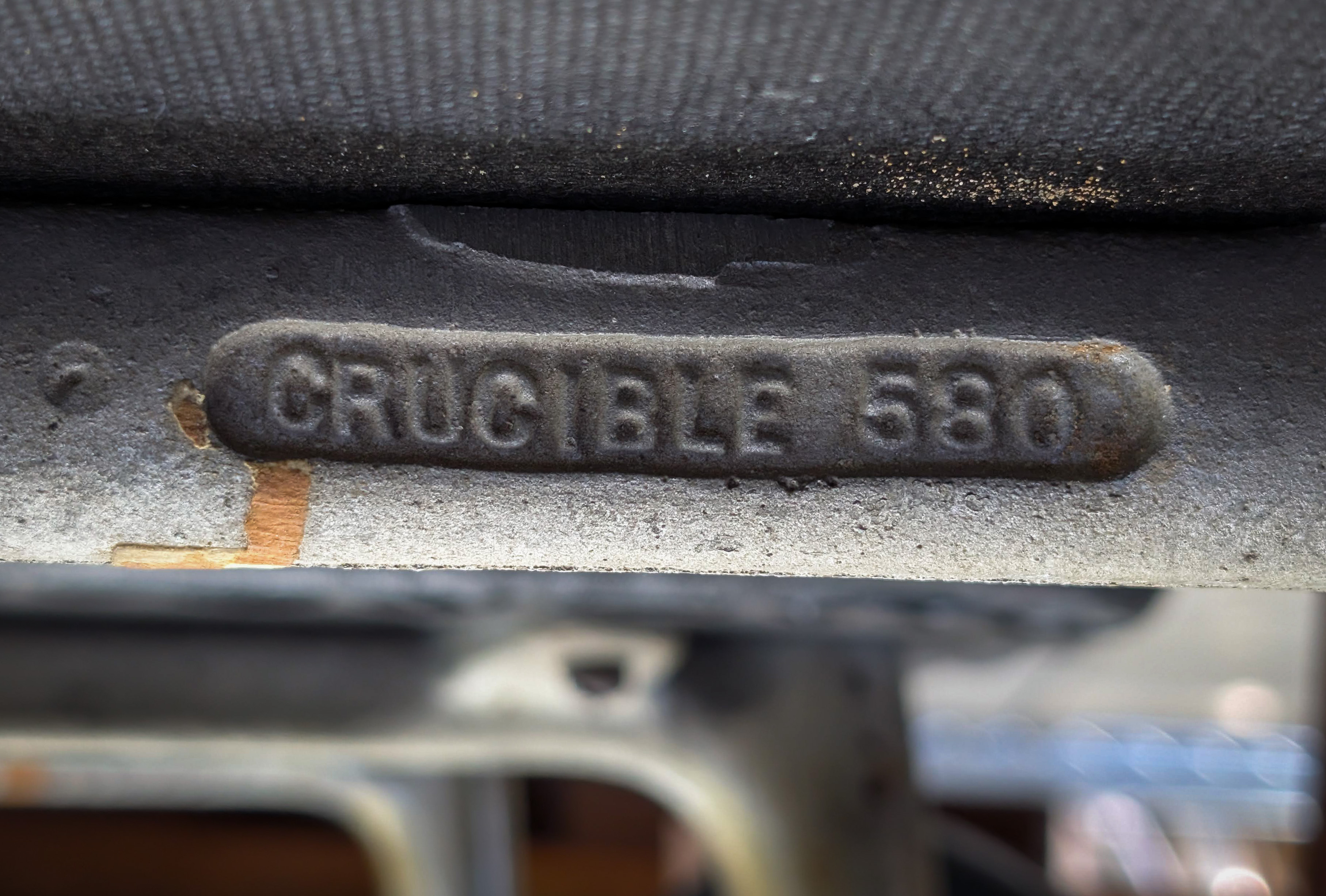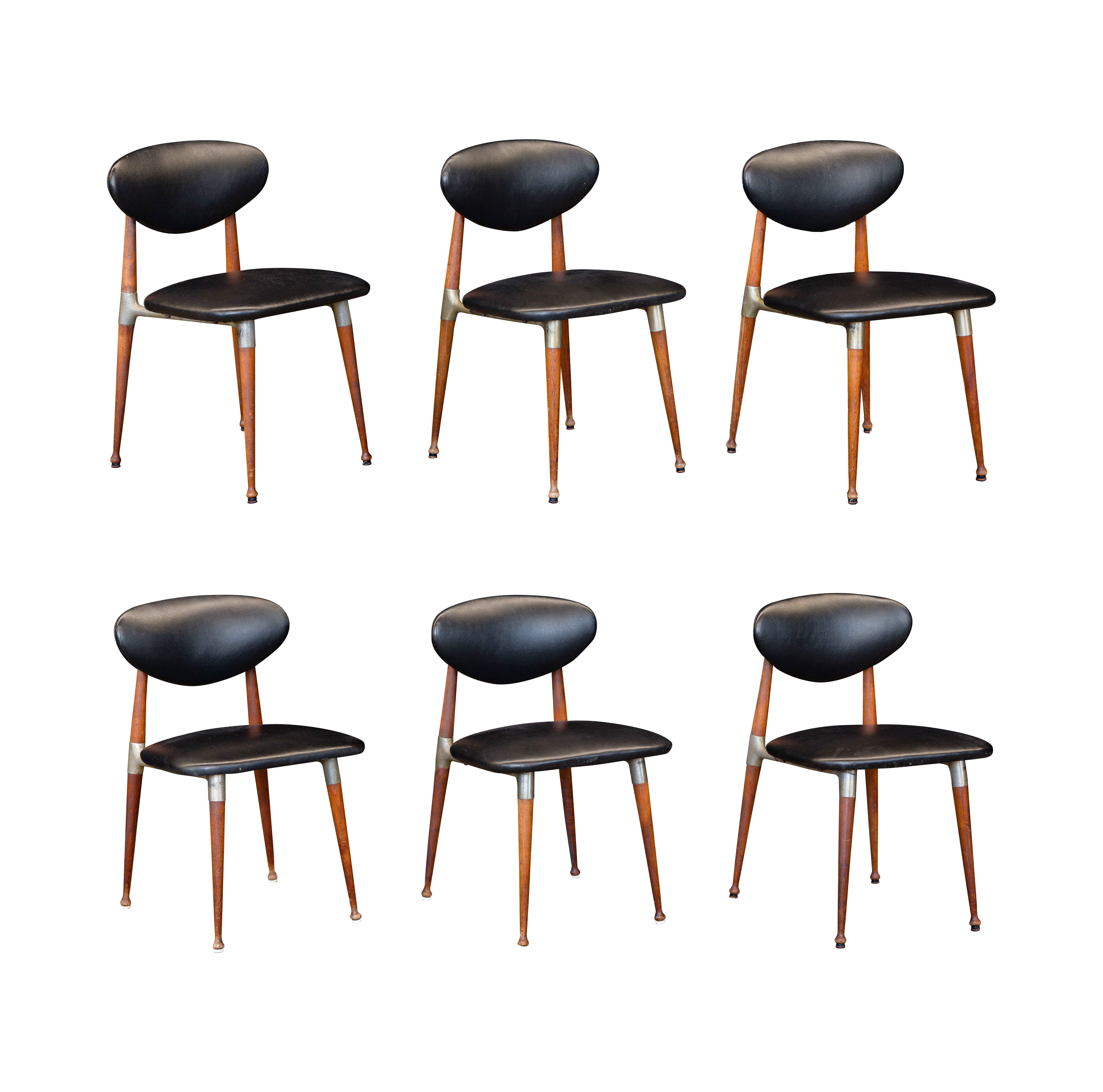 A set of (6) having cast metal hardware and vinyl upholstered seats, bottom metal hardware marked ‘Crucible 580’