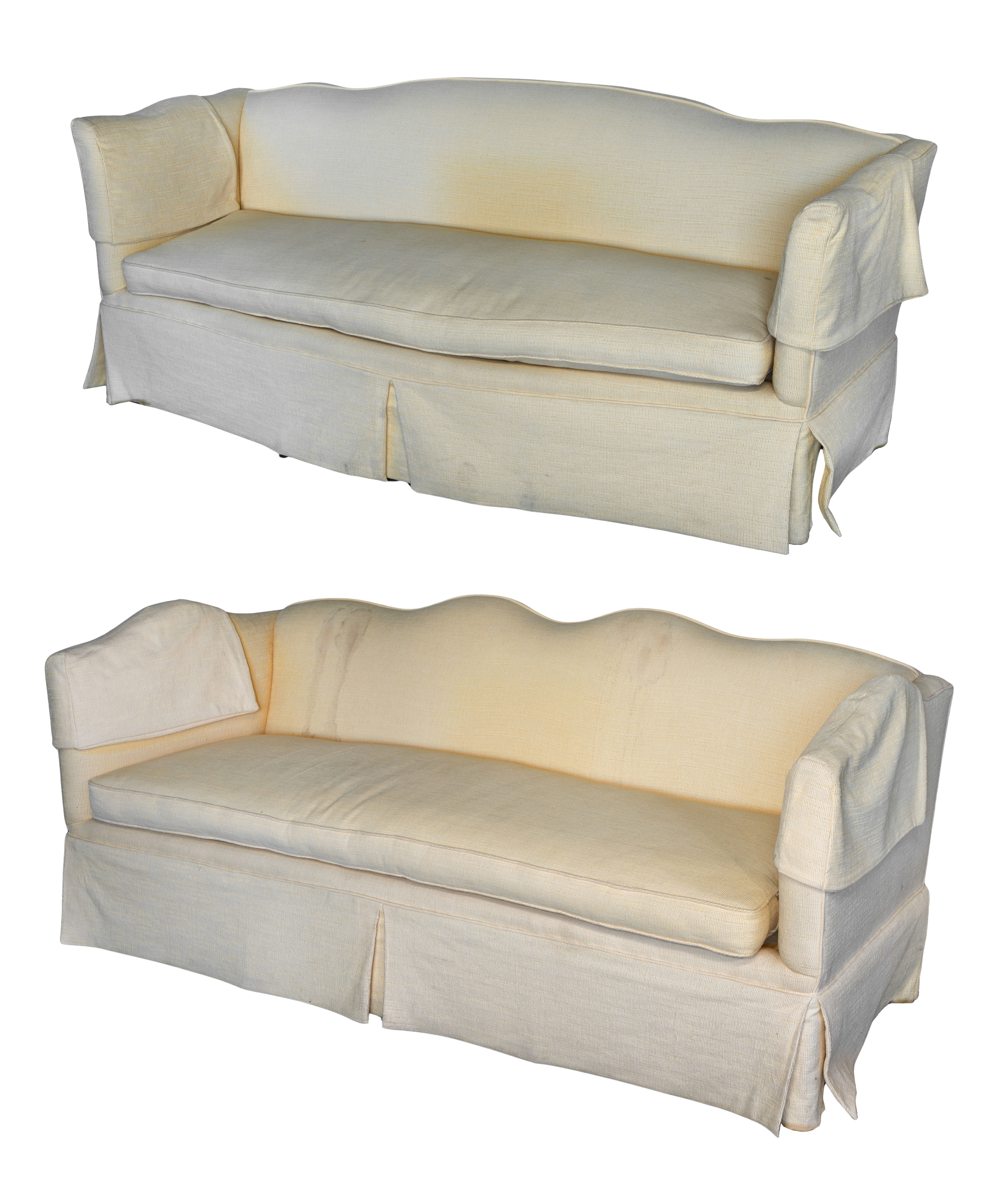 Including a camel back and a scallop back, both having bench seats and light yellow upholstery