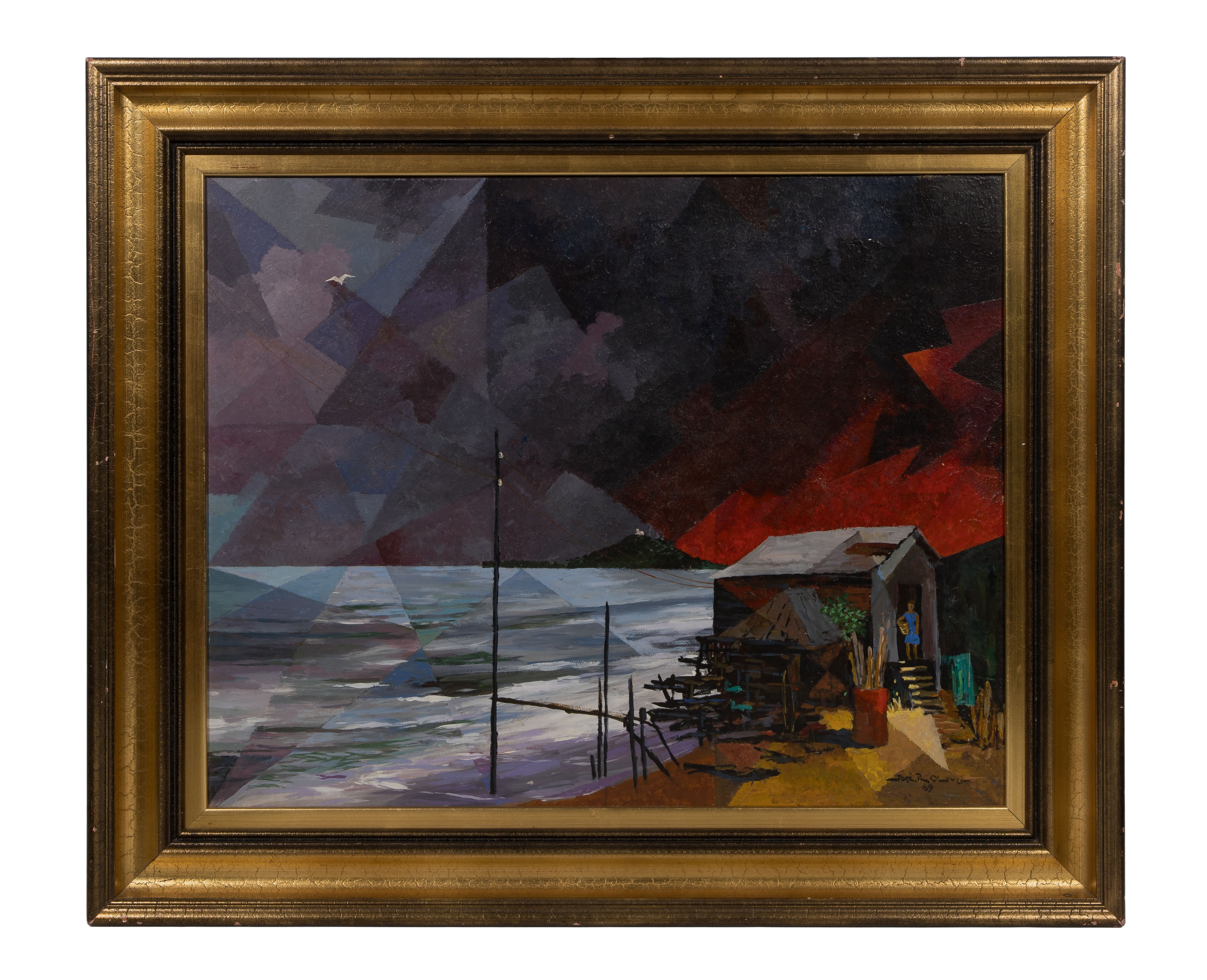 Jose R. Oliver (Puerto Rican, 1901-1979) ‘El Faro De Arecibo’ Acrylic on Panel