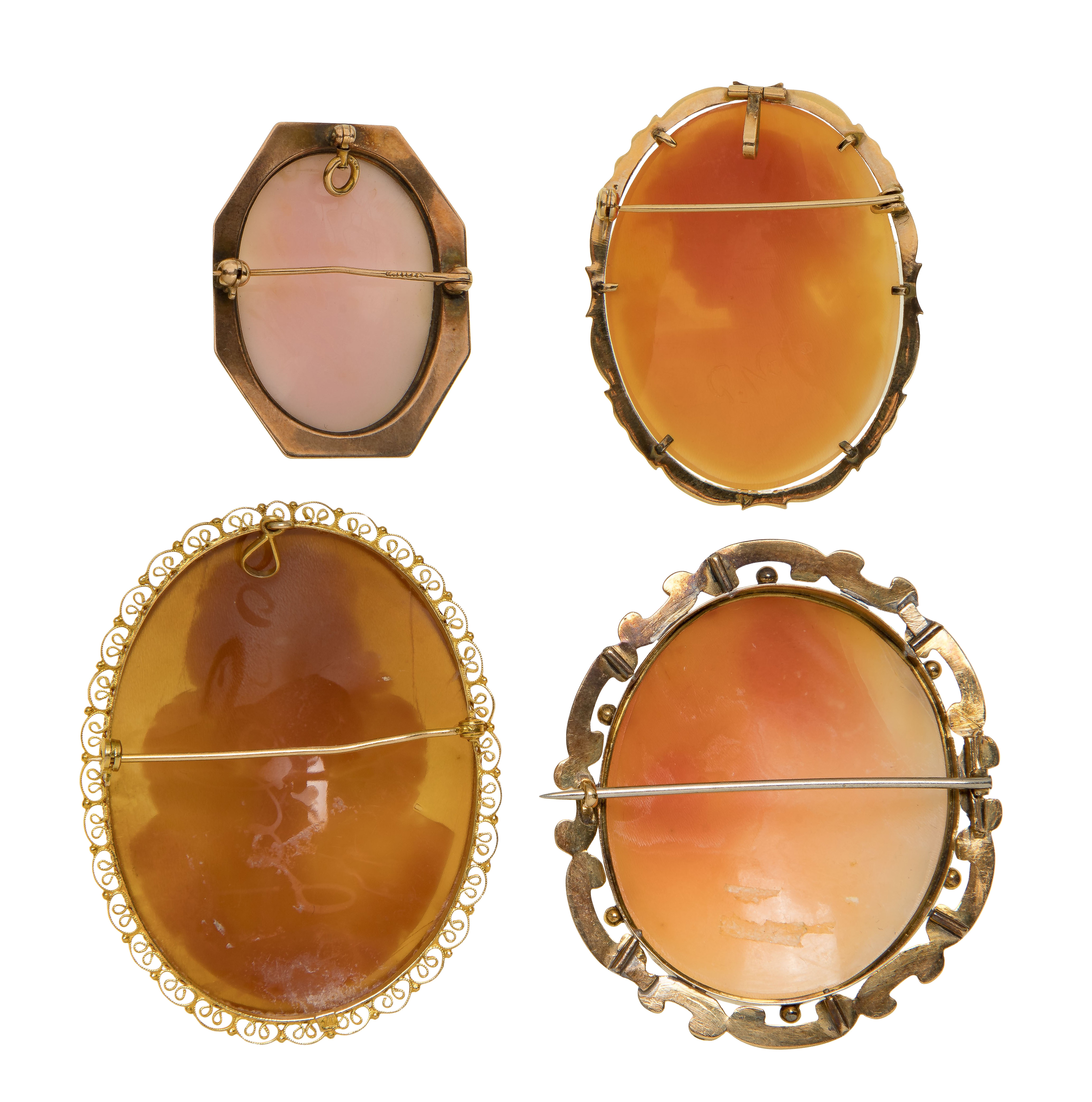 (4) items of various design, all having carved reliefs, one signed ‘G. Noto’ (some marked ’14k’, one marked ’10k’)