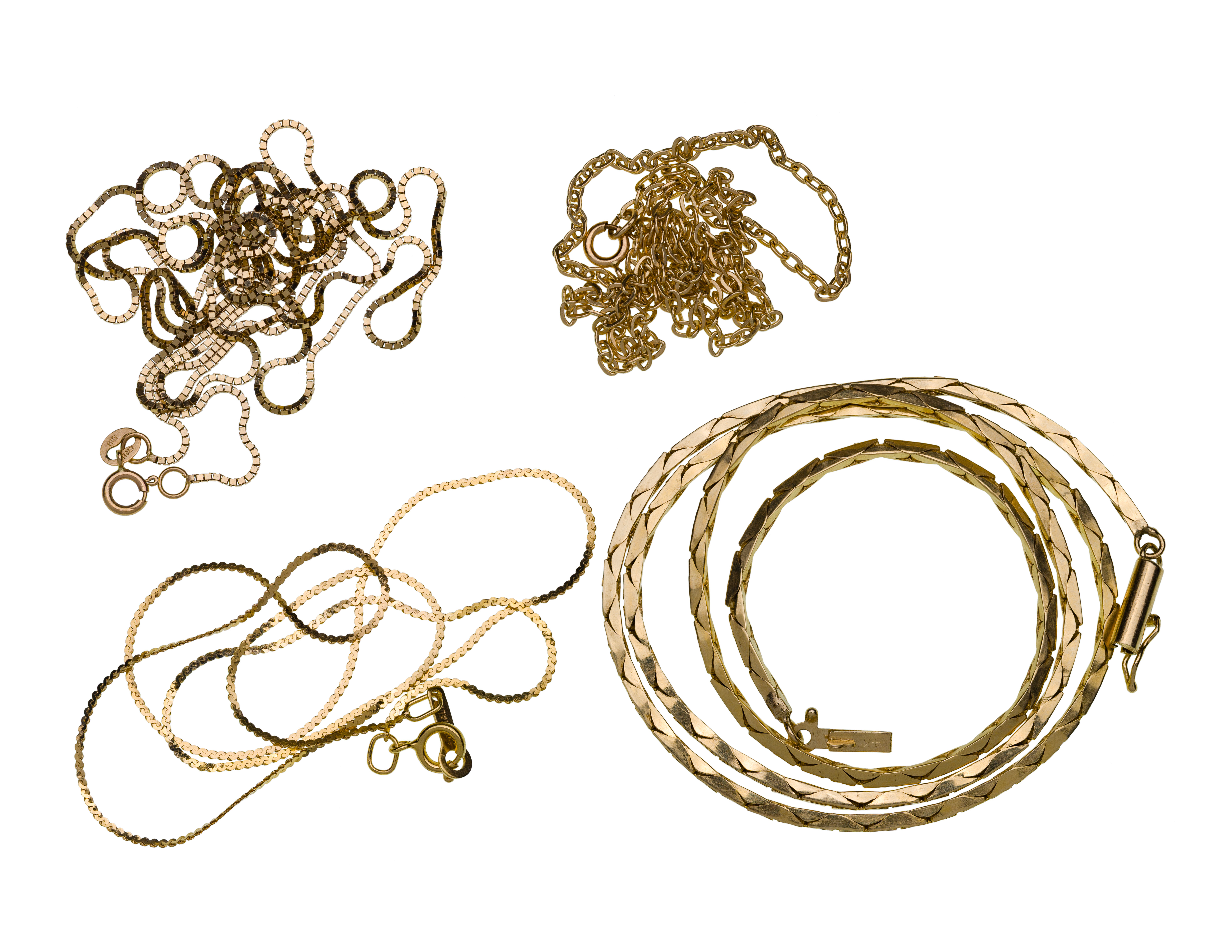(4) chain style necklaces in various designs (all marked 14k)