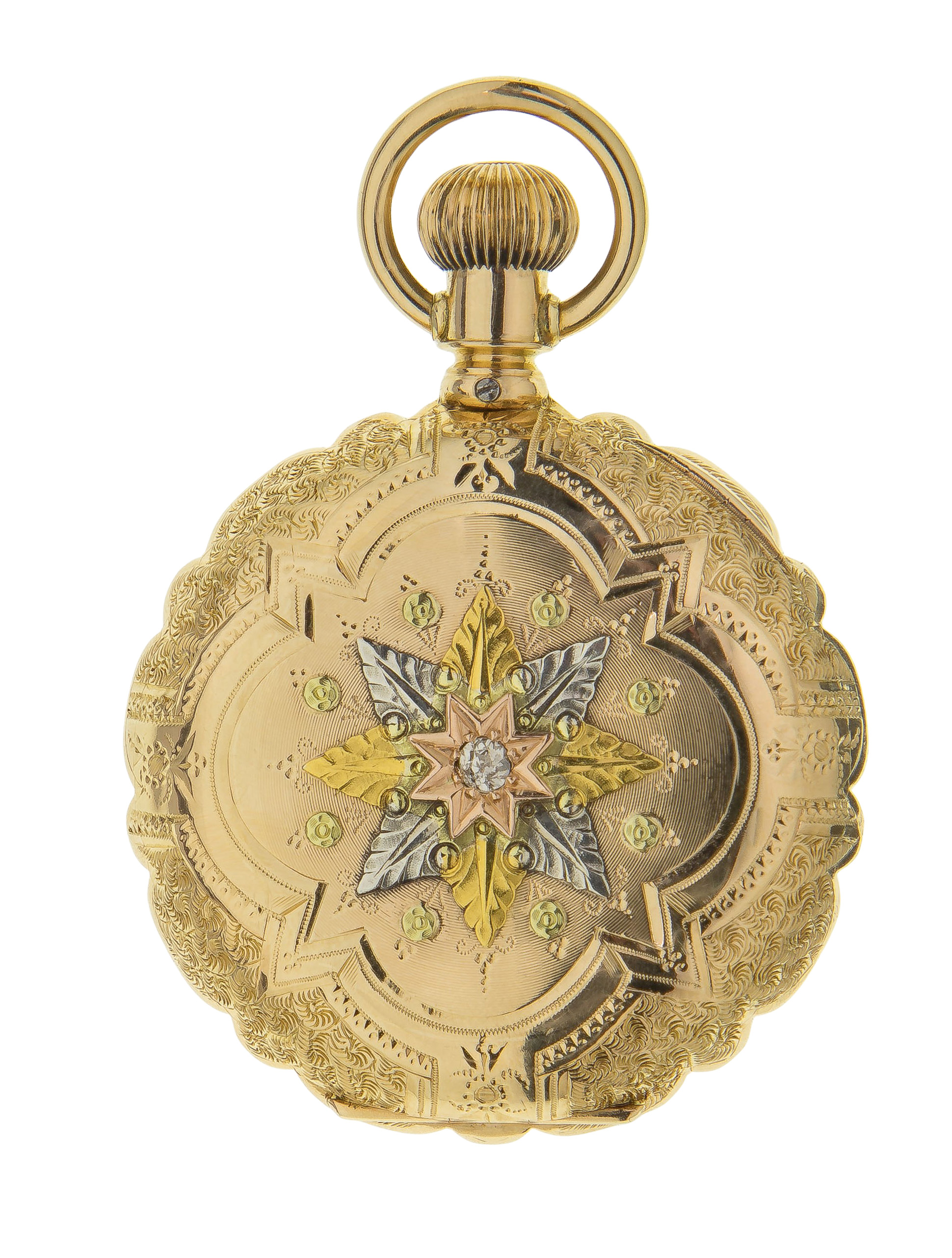 Elgin 14k Multi-color Gold and Diamond Hunter Case Pocket Watch