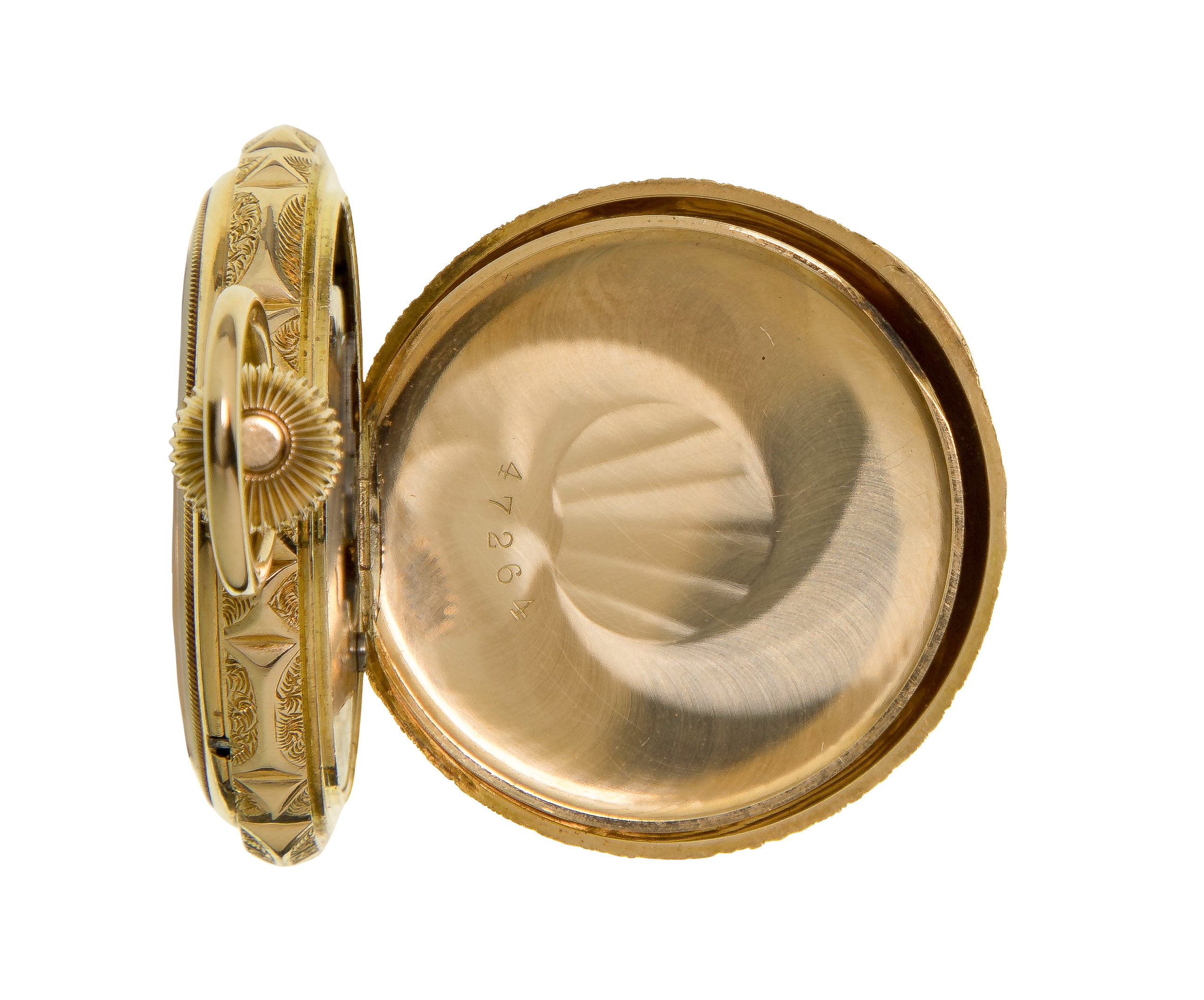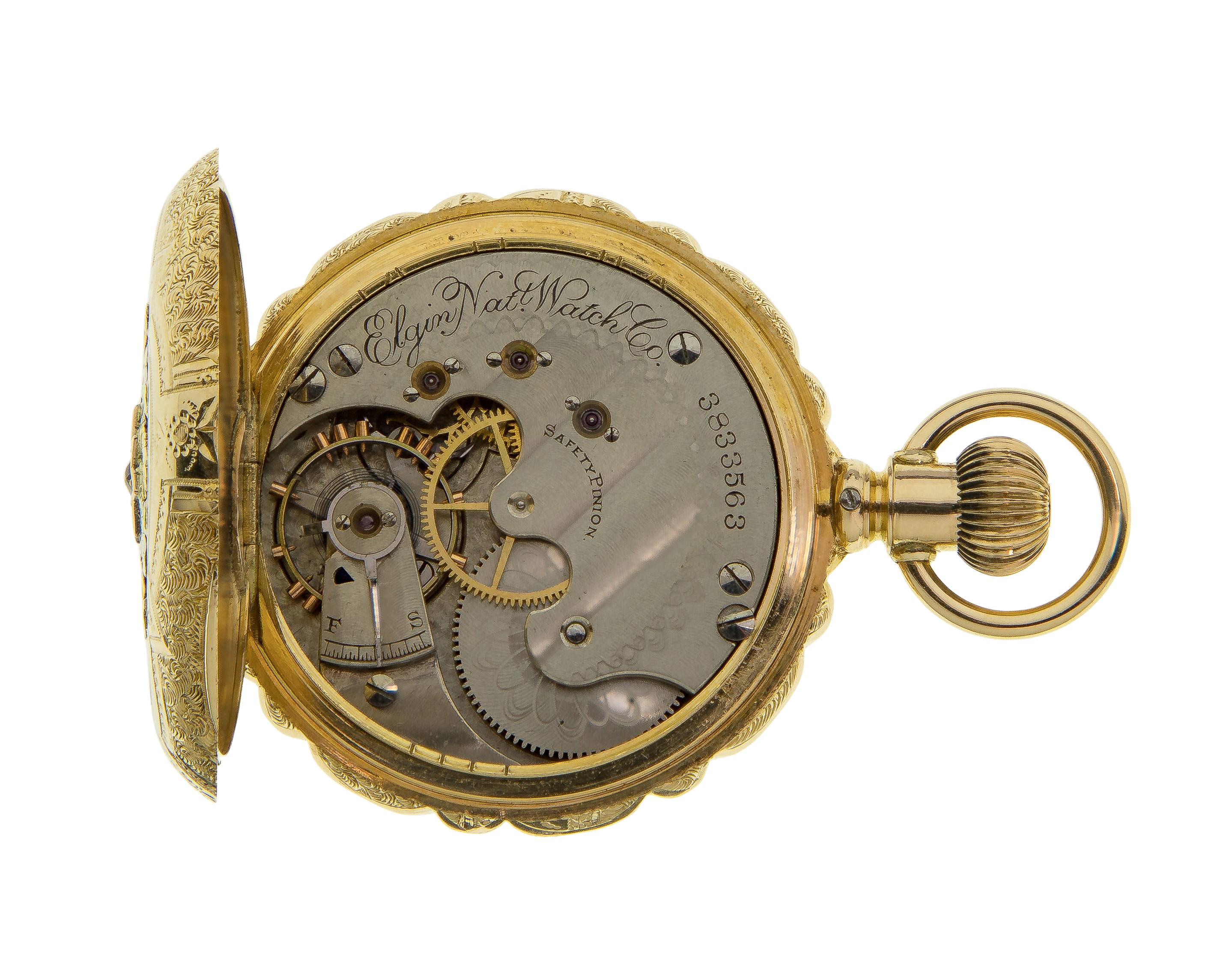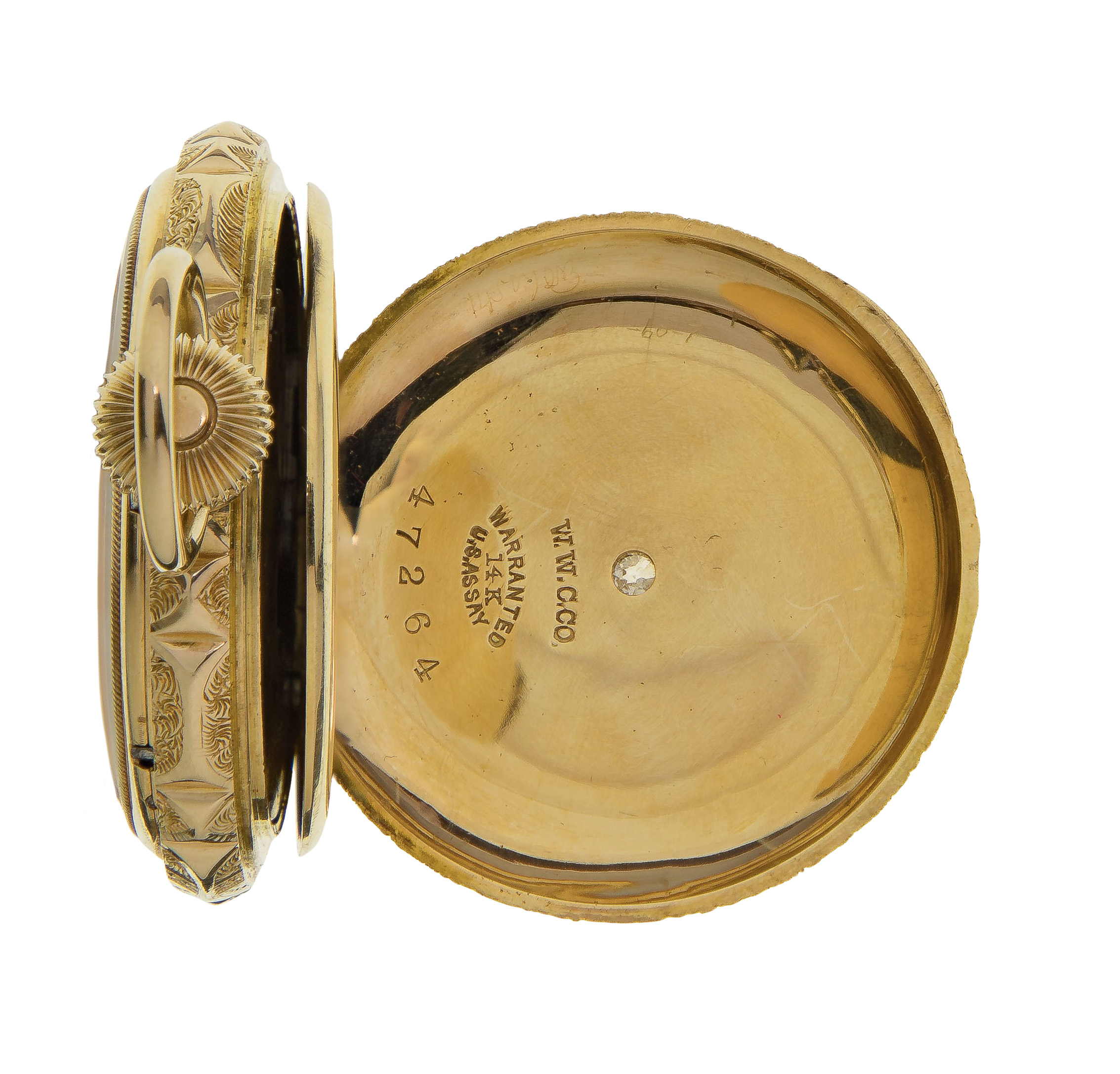 Serial #3833563 c.1890, having an ornate hunters case and 15-jewel movement (marked ‘Warranted 14k U S Assay’)