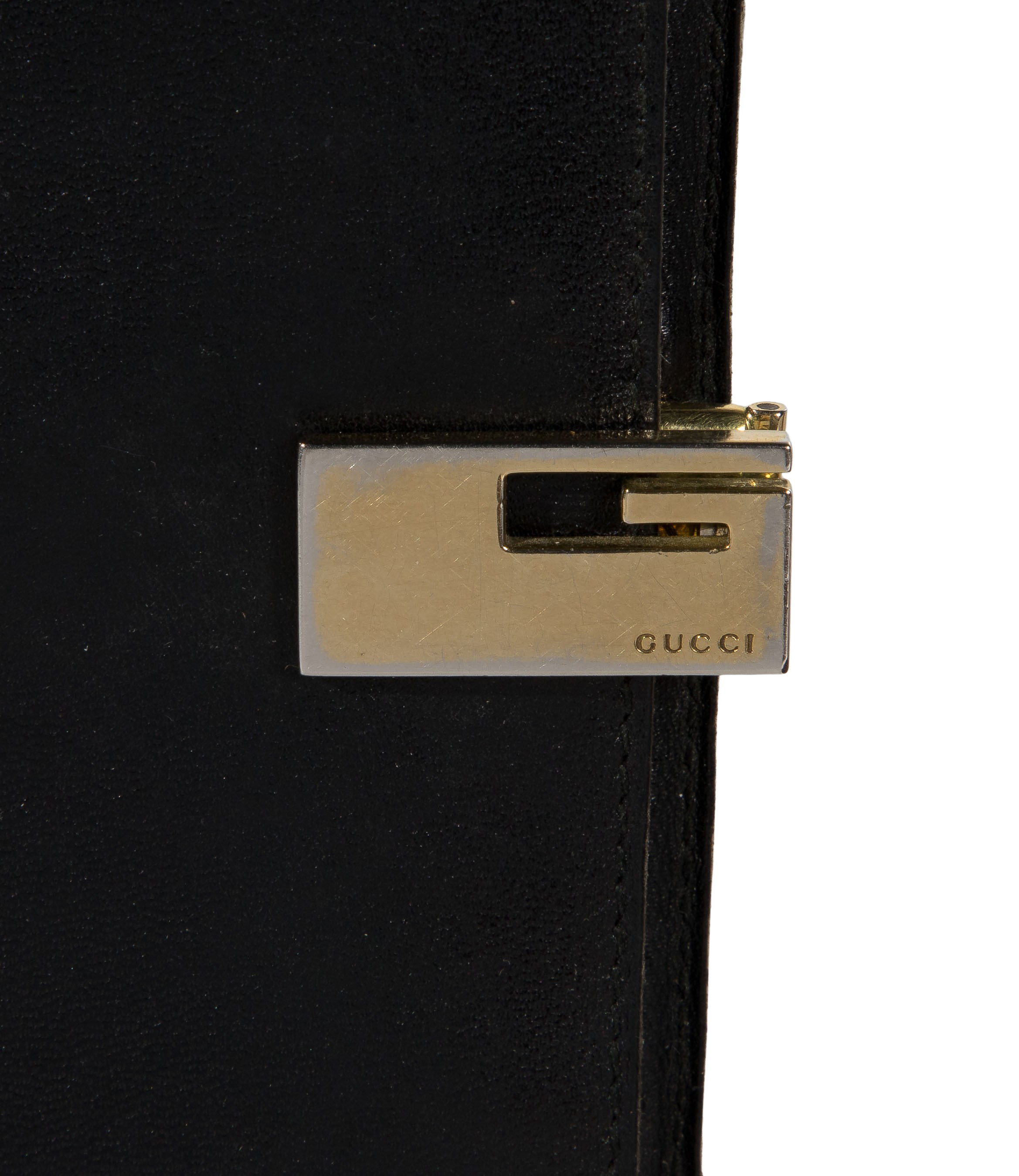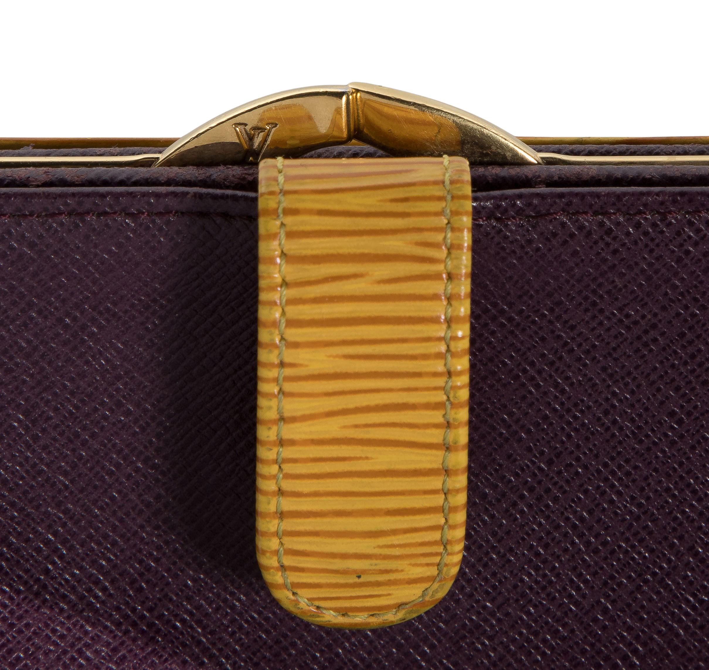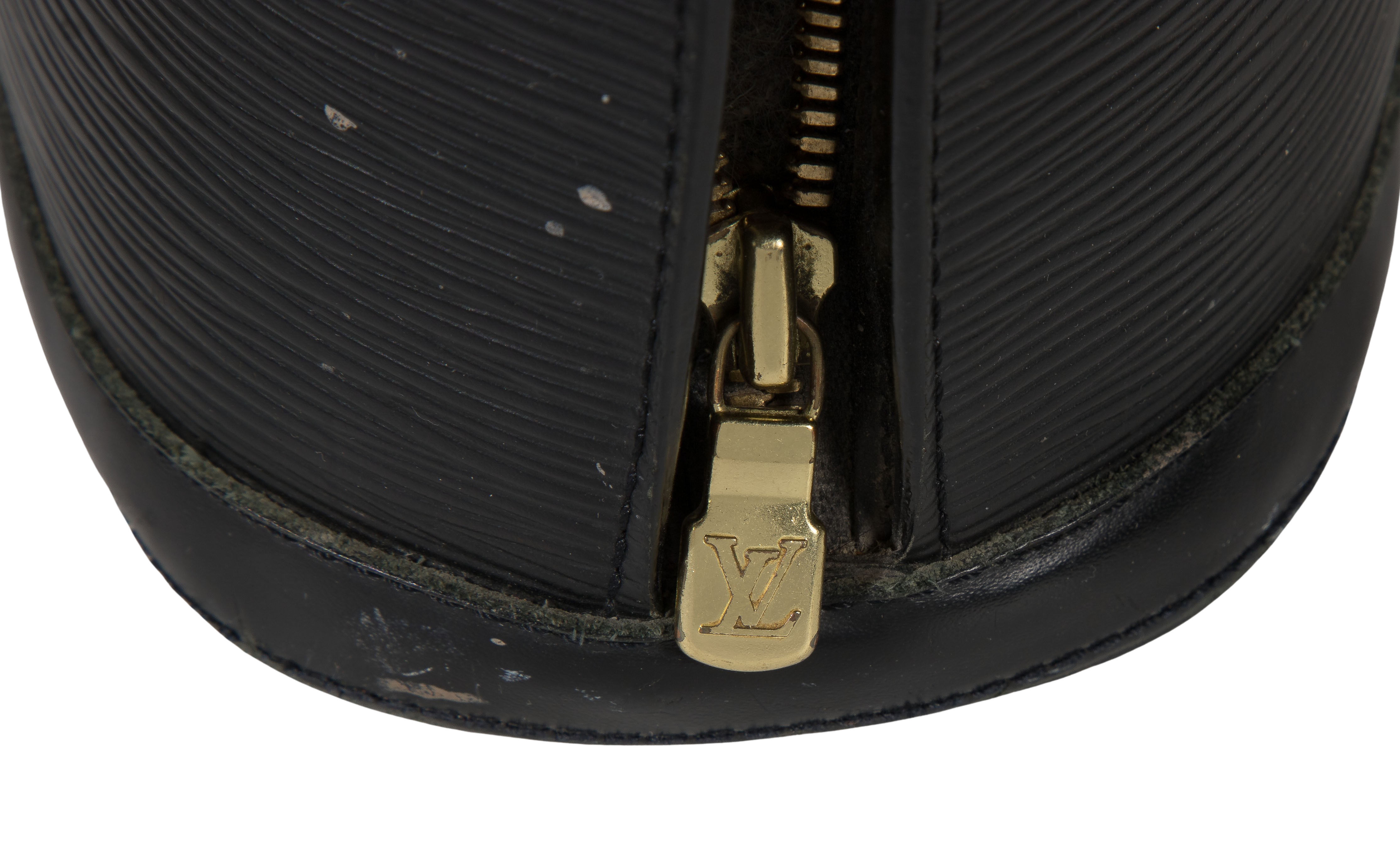 (4) items including a black leather Epi bag, a gold Epi Sarah wallet, a monogrammed luggage tag as well as a black wallet by Gucci