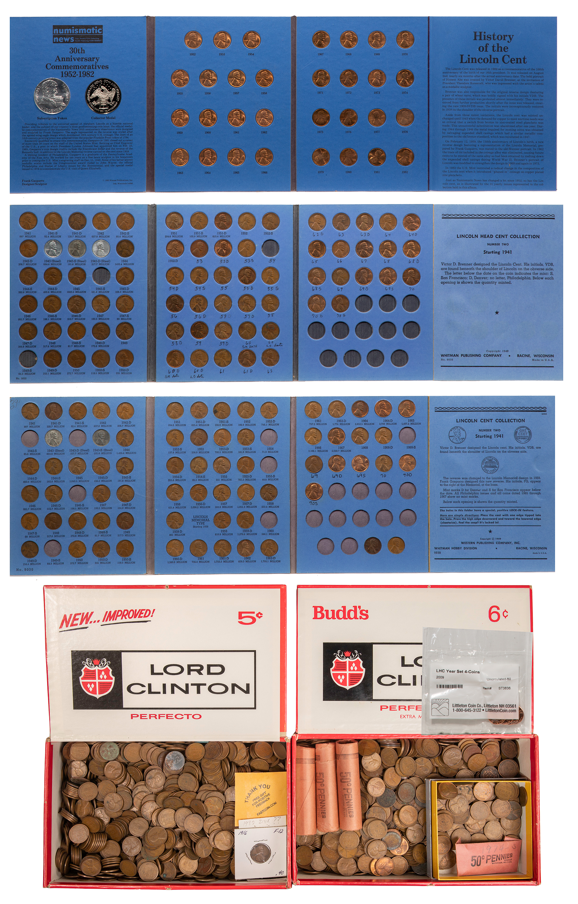 Including (2) near complete blue book volume 2 and a ’30th Anniversary Lincoln Penny’ blue book as well as approximately (20) pounds of loose pennies