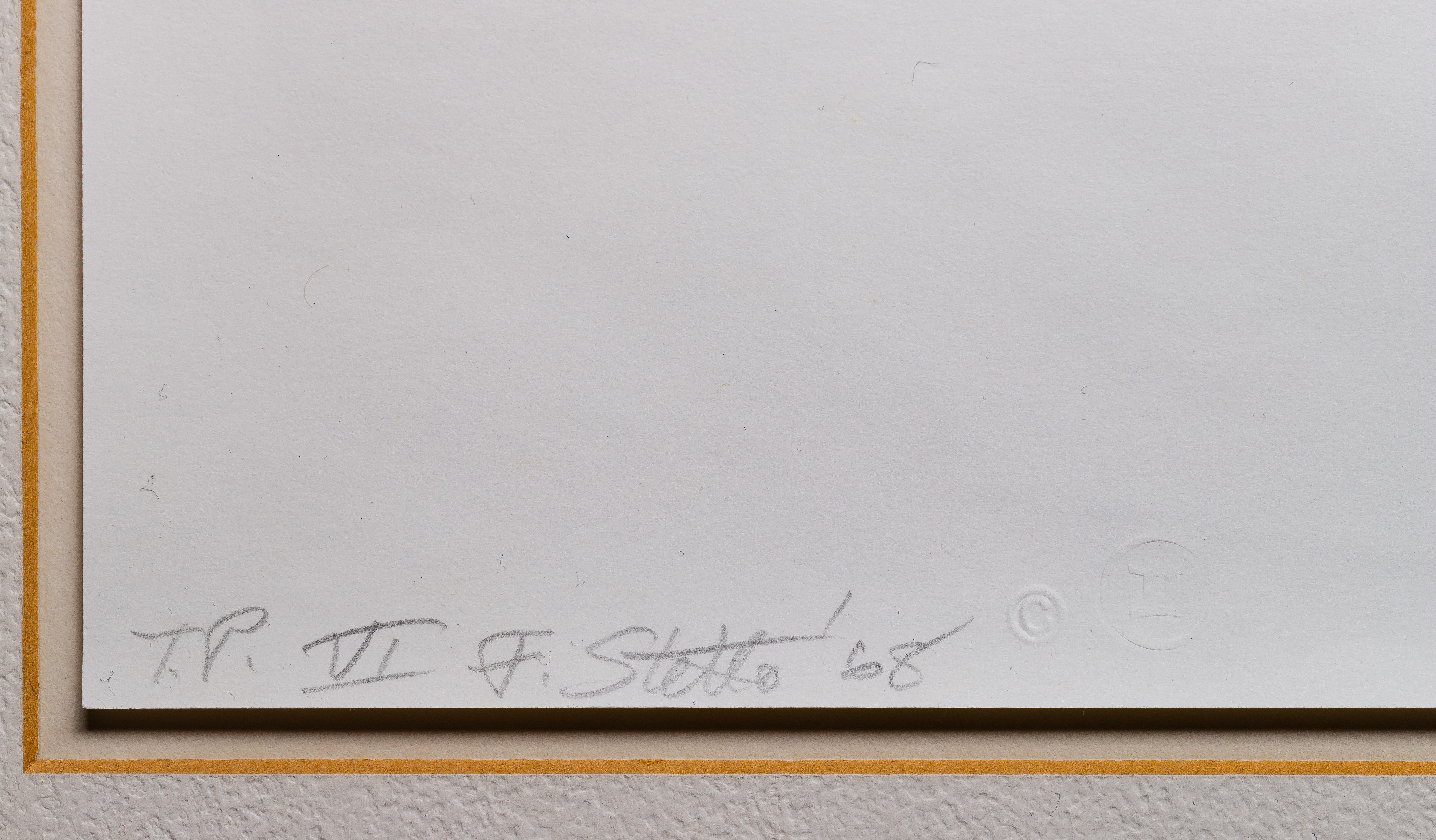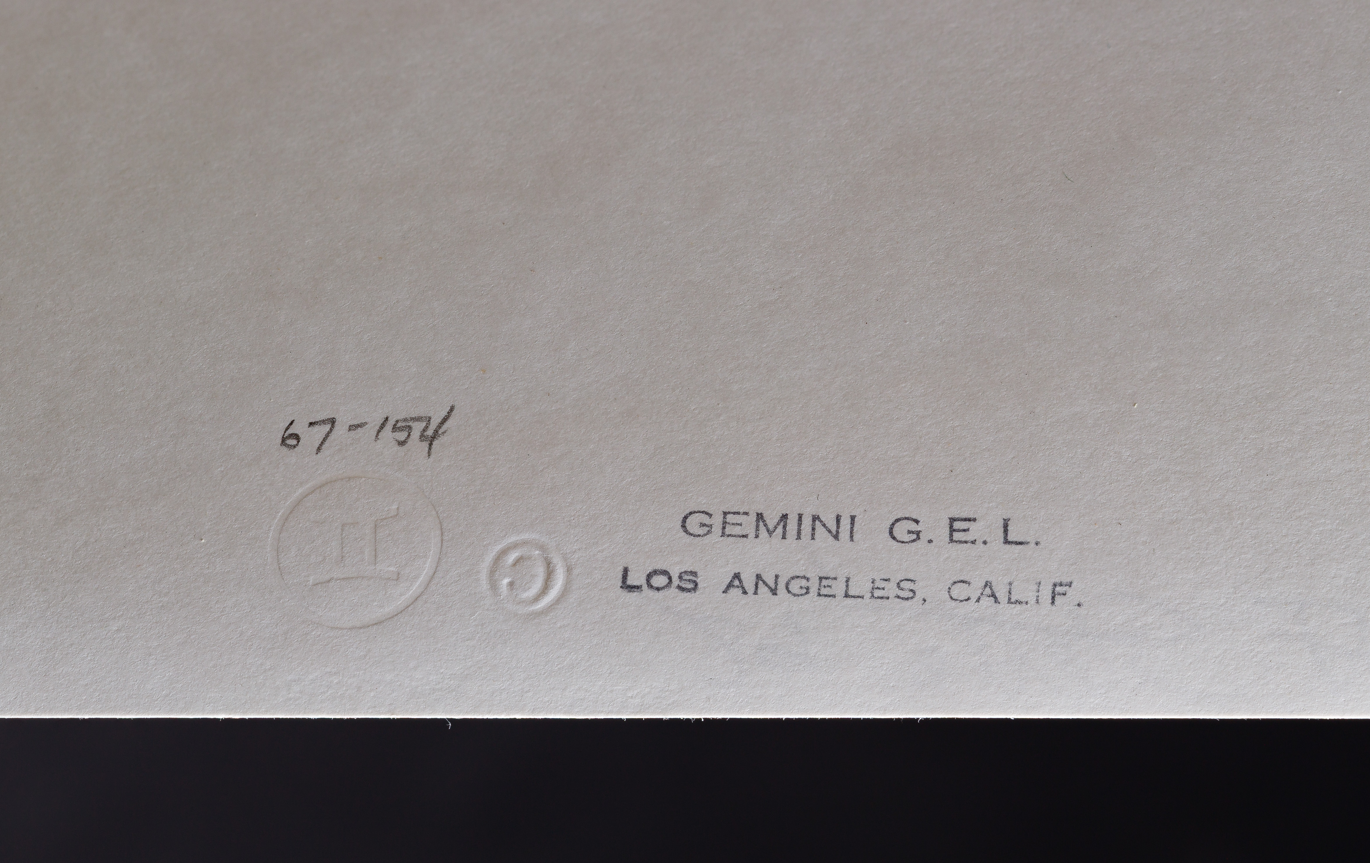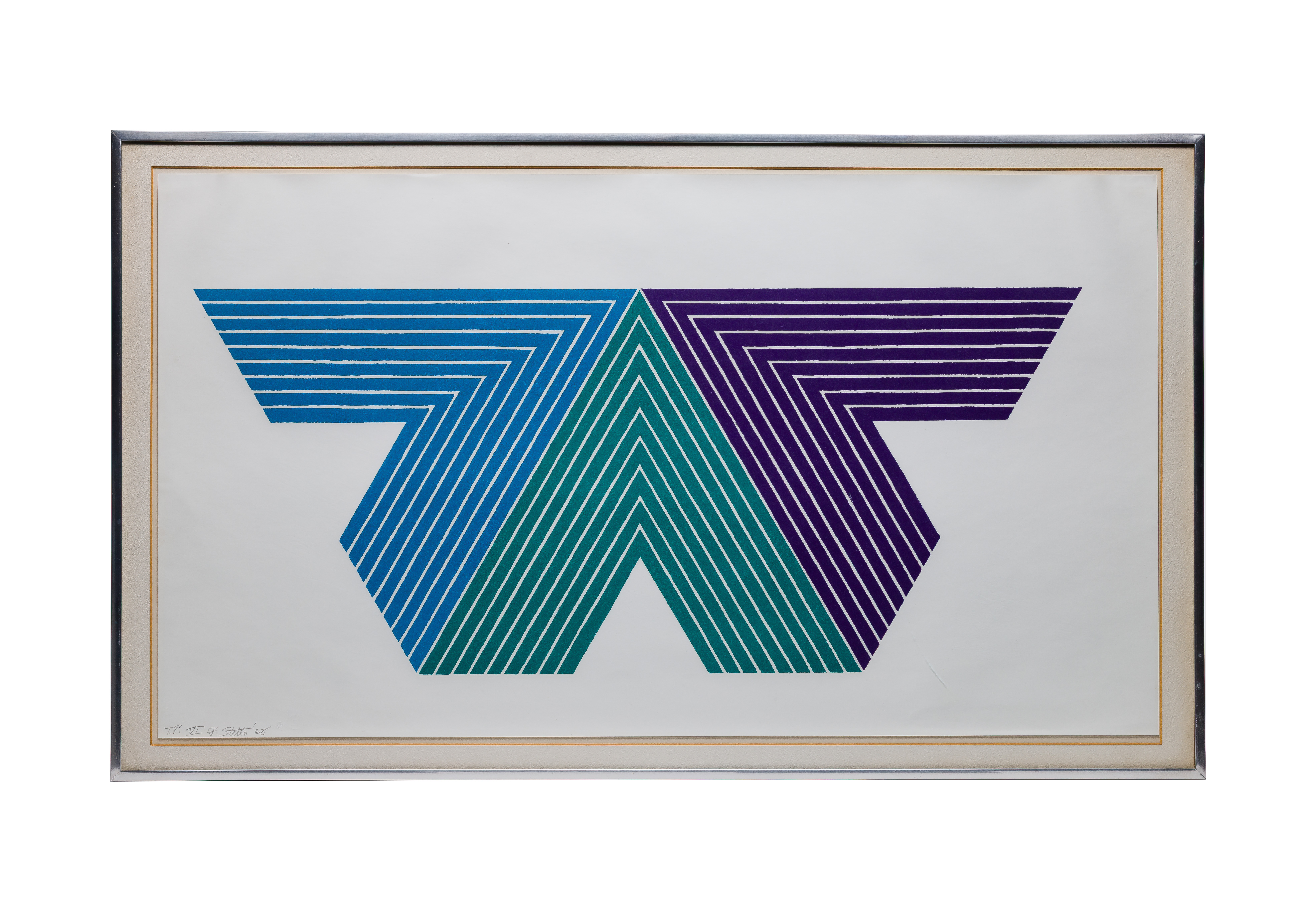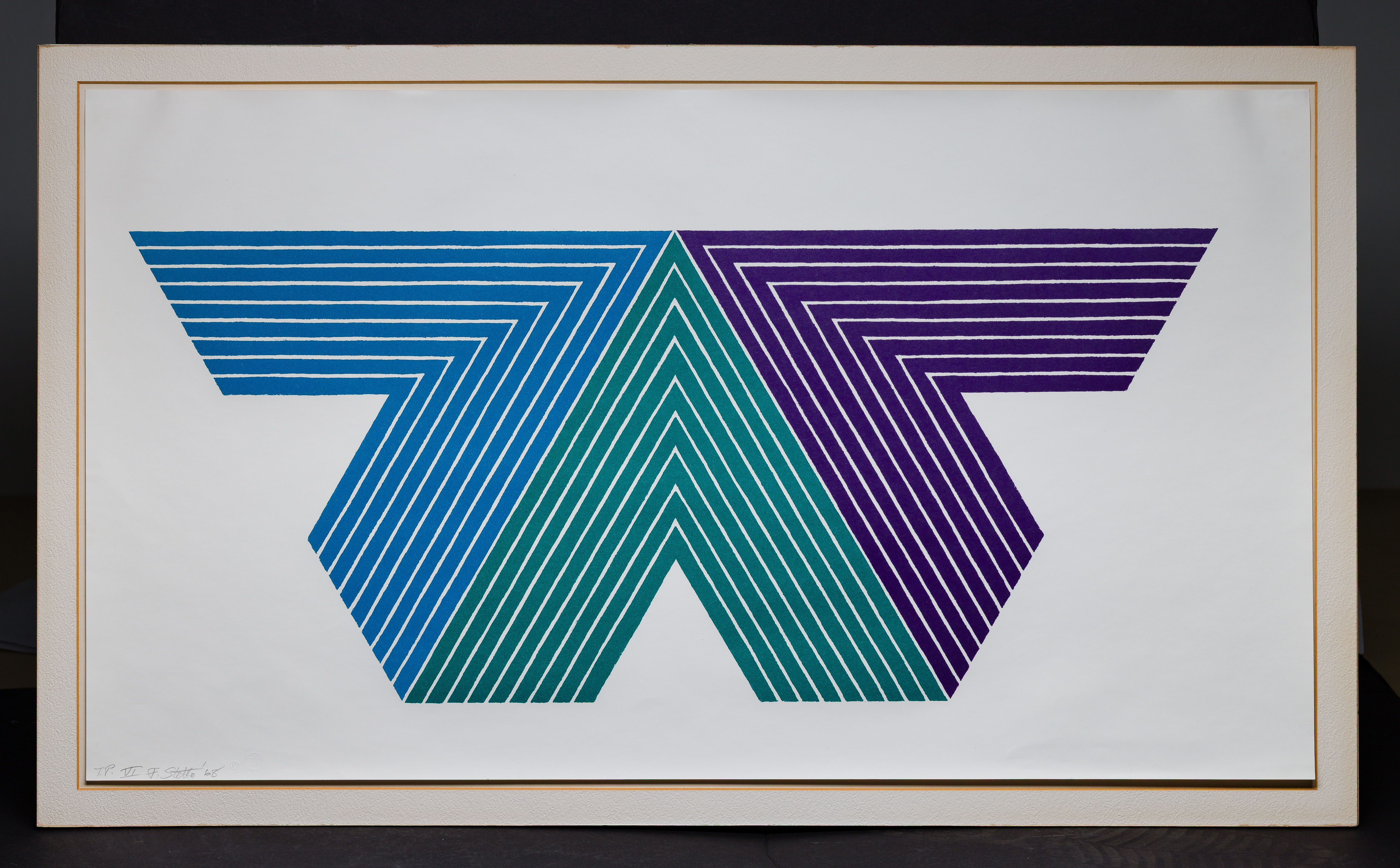 1968, pencil signed, annotated ‘T.P. VI’, from the ‘V’ Series, printed and published by Gemini G.E.L. in Los Angeles having blind stamp, Gemini G.E.L. rubber stamp and pencil annotation ’67-154′ verso, floated under glass in a metal frame
