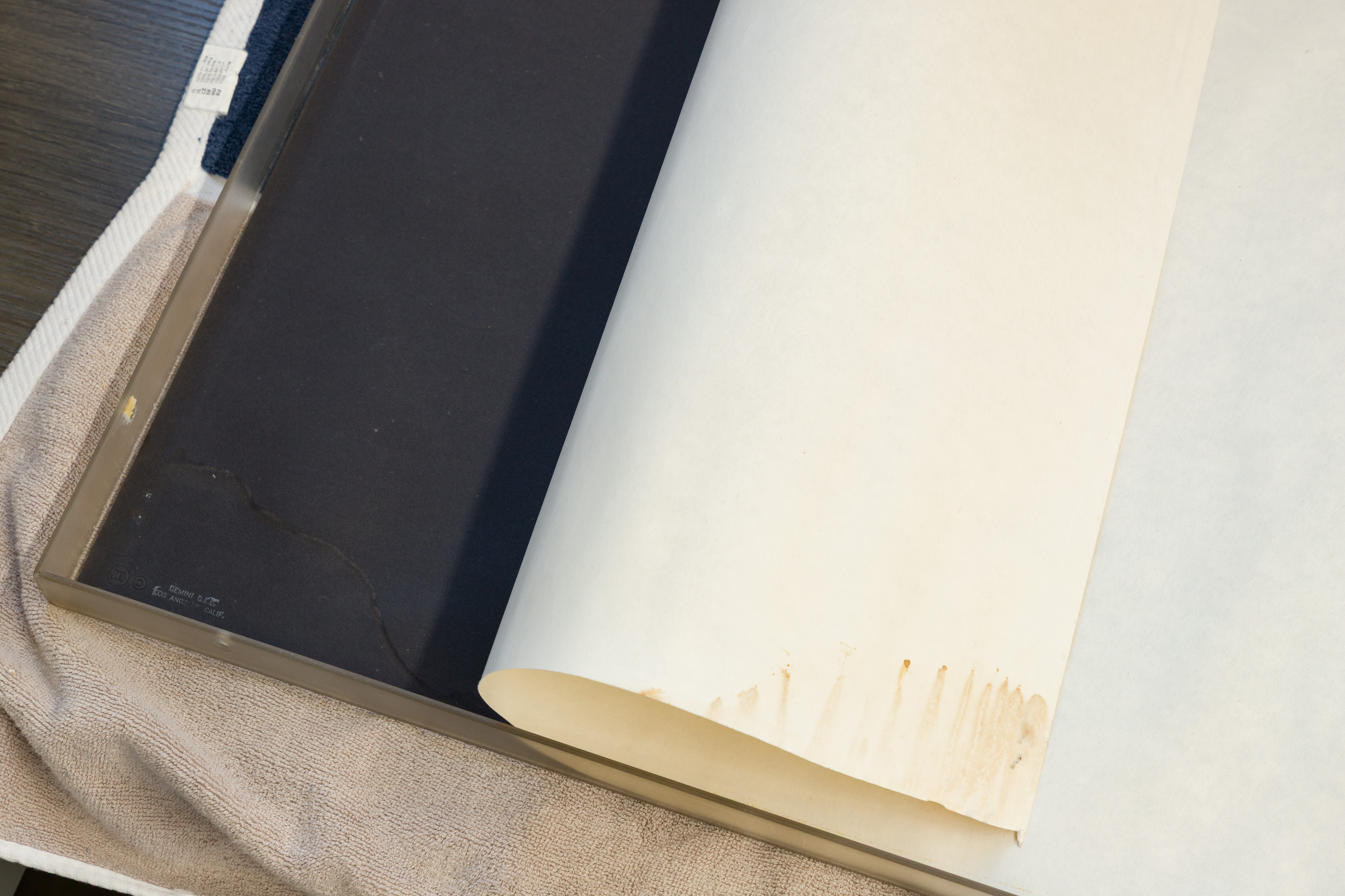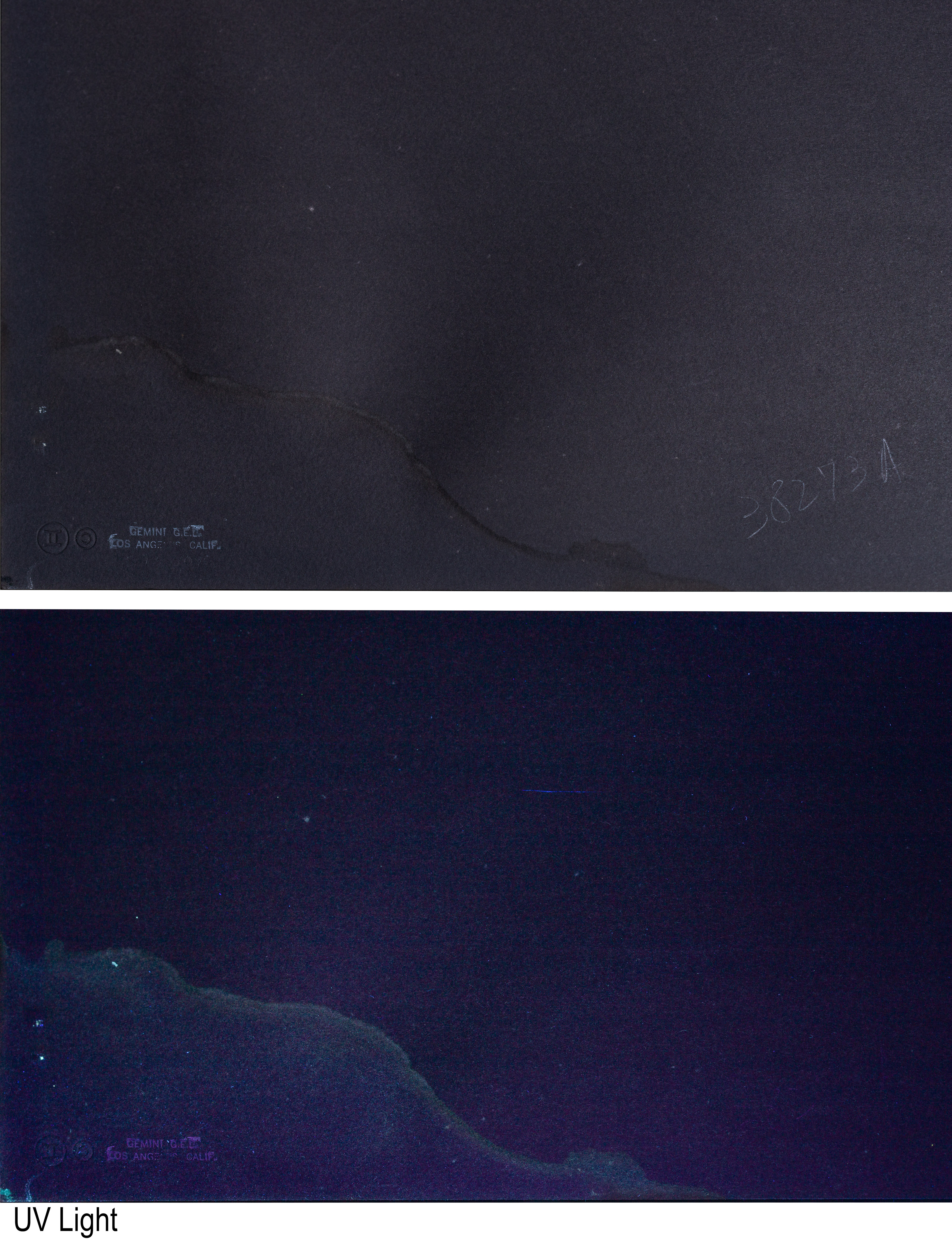 some water damage to lower right margin, scuffs on lower and upper left margins, frame having scratches and minor wear