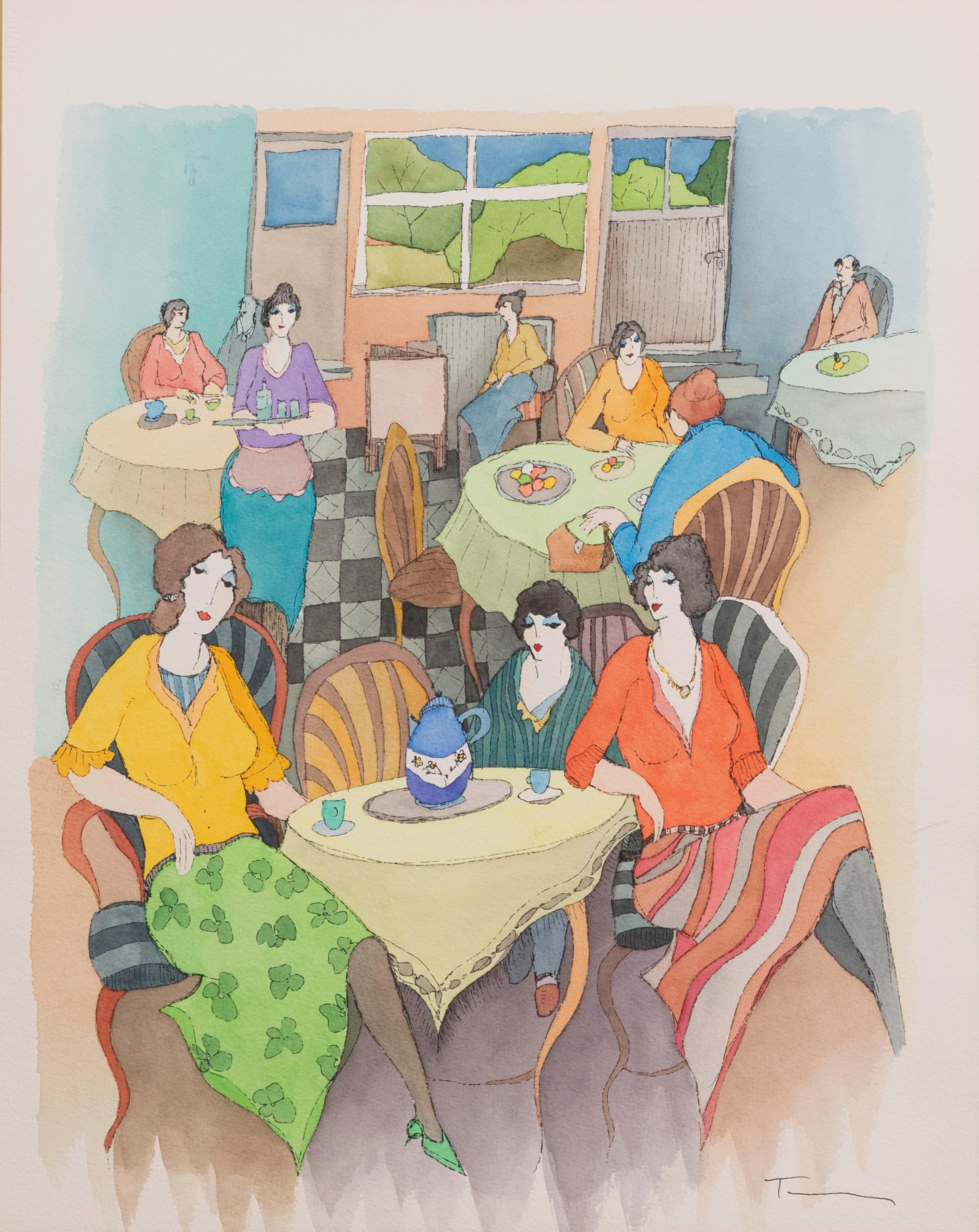 Itzchak Tarkay (Israeli, 1935-2012) ‘Dinner at the Club’ Mixed Media on Paper