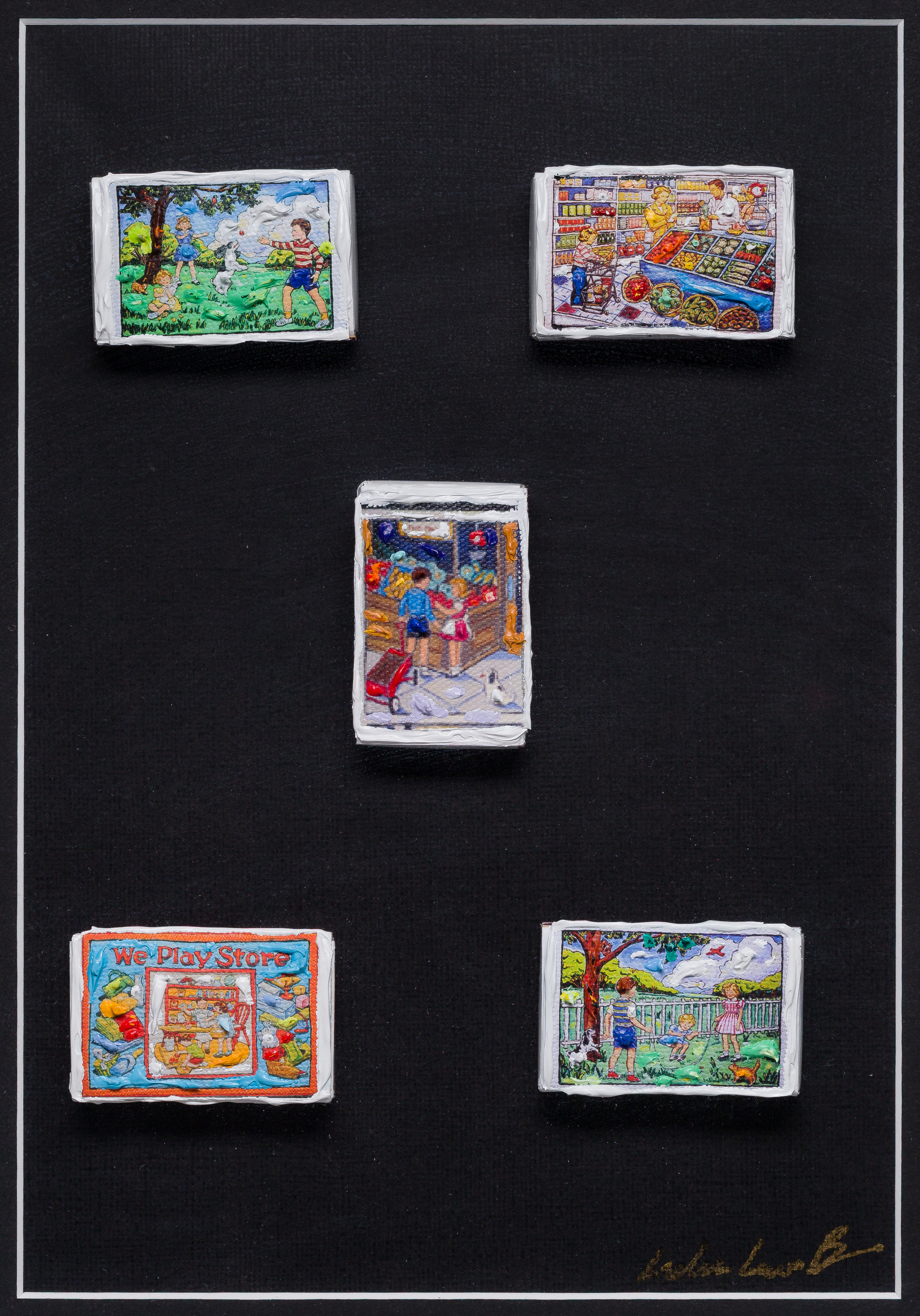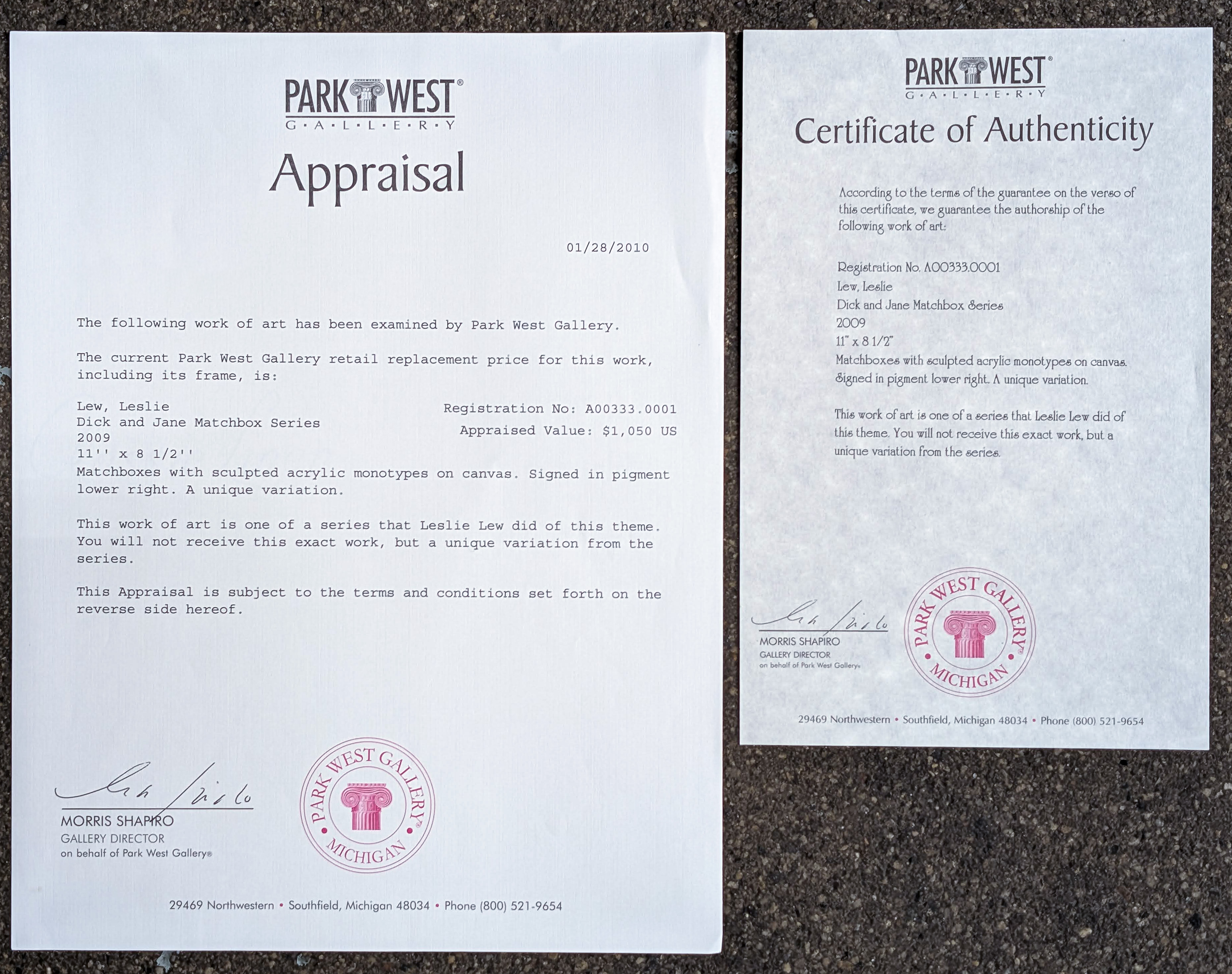Leslie Lew (American, b.1953) Dick and Jane Matchbox Series Mixed Media