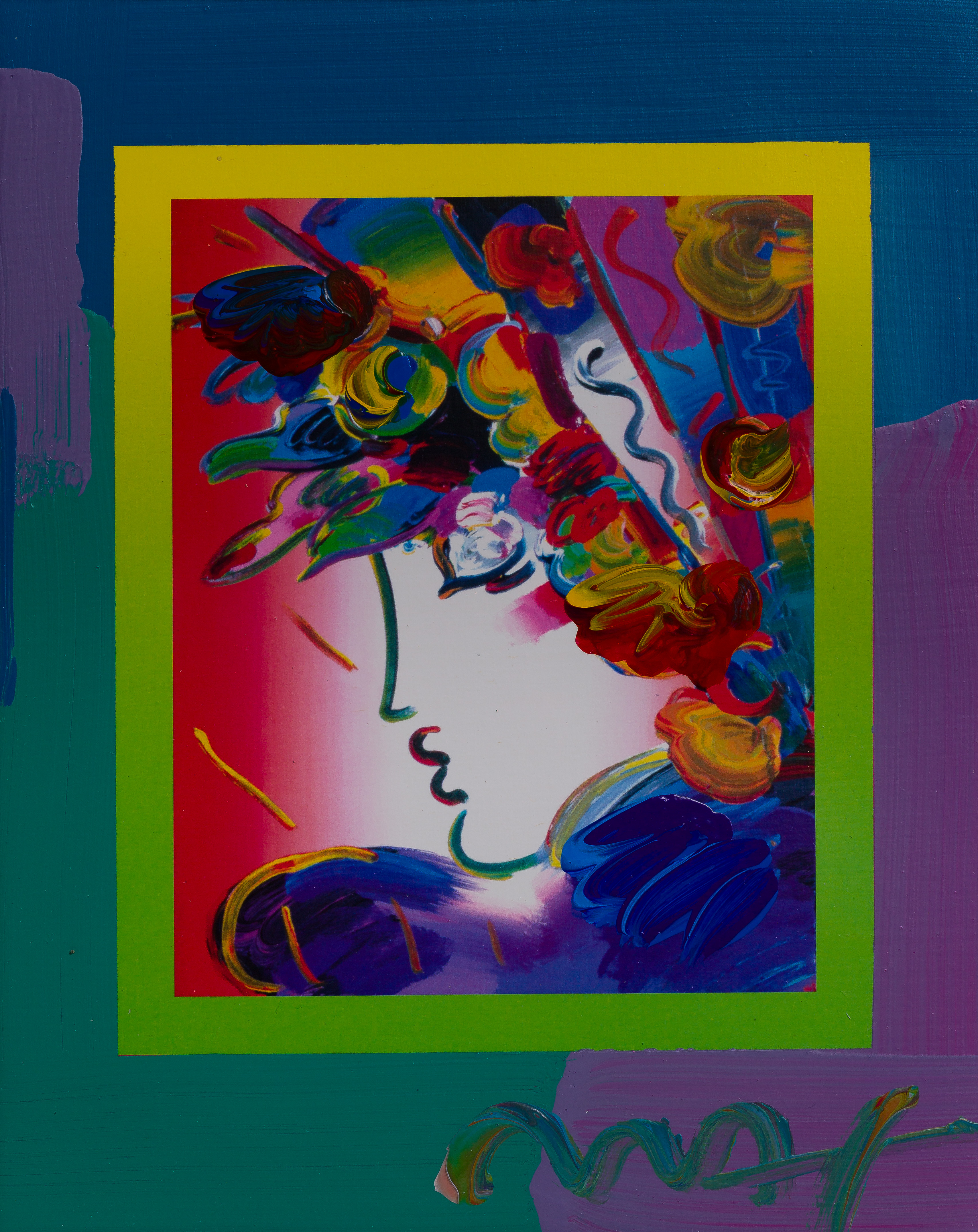 Peter Max (American, b.1937) ‘Blushing Beauty on Blends’ Mixed Media on Paper