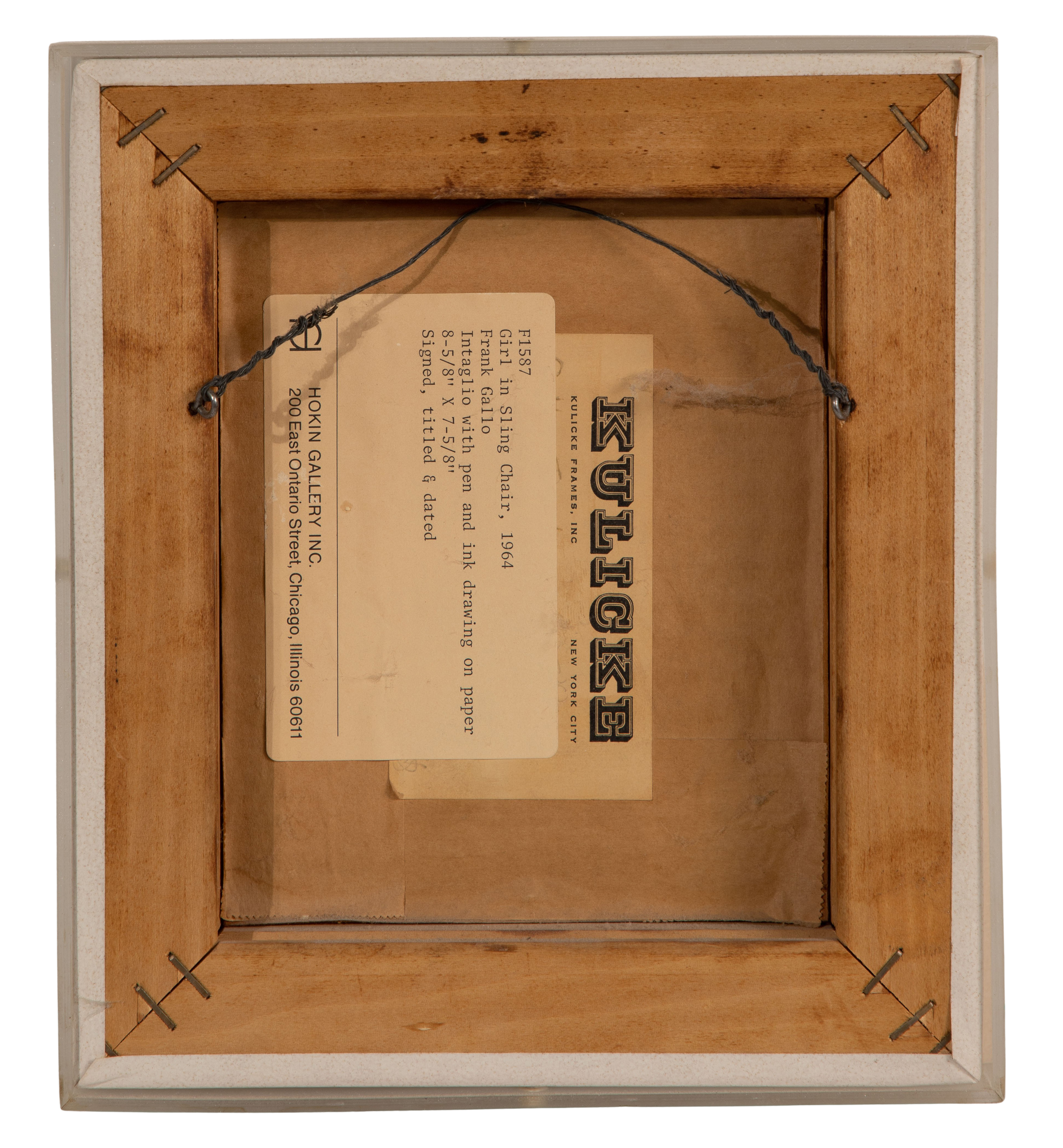 1964, signed, titled, intaglio with pen and ink drawing, in an acrylic custom box frame, retaining Hokin Gallery Chicago, Illinois gallery label