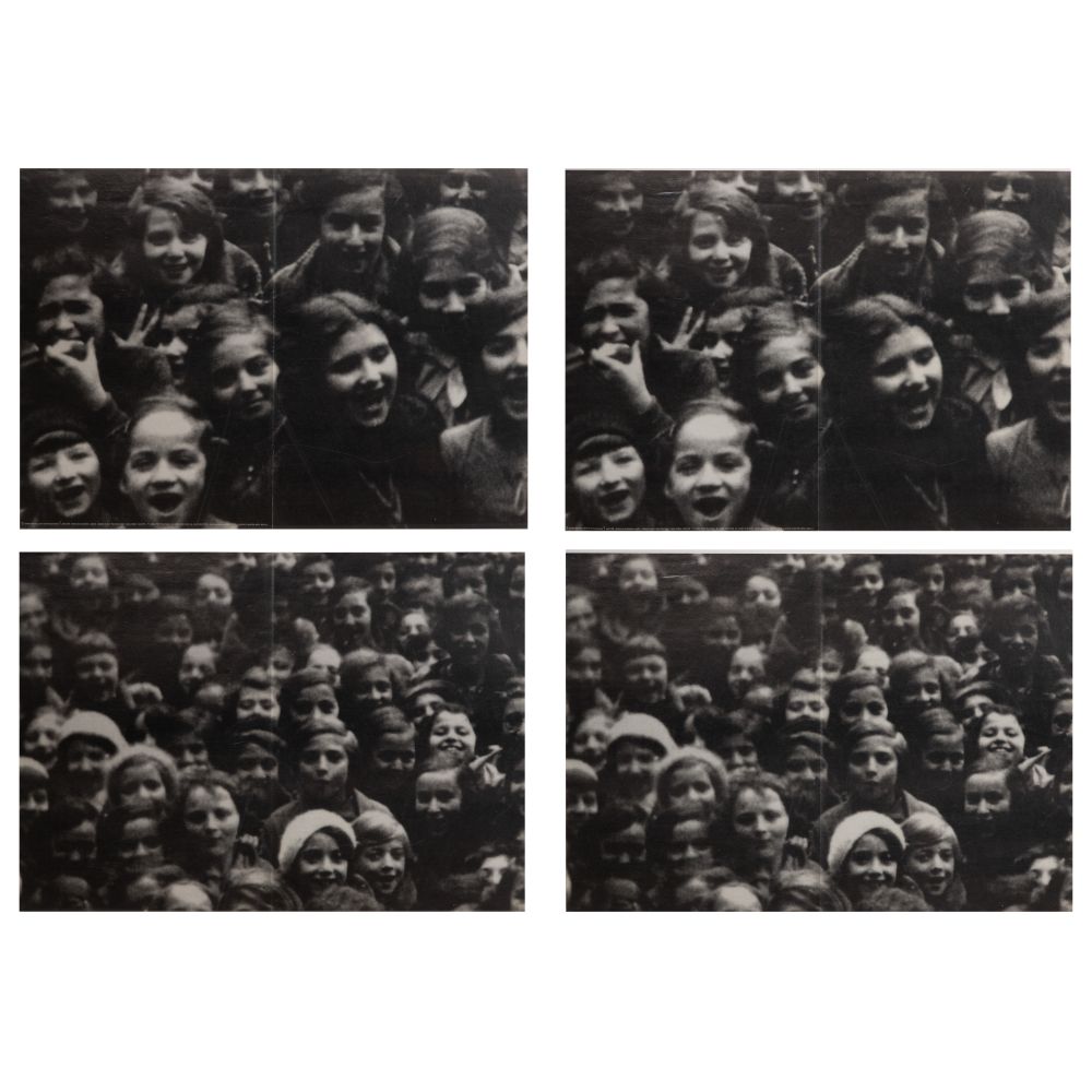 (2) items, both being bi-fold having single sheet insert, all sides printed, caption along lower back edge giving a 1998 date, reproducing ‘Judische Schule, Berlin 1939’ or ‘L’Ecole de Hamburgerstasse’, a photograph used by the artist in his work