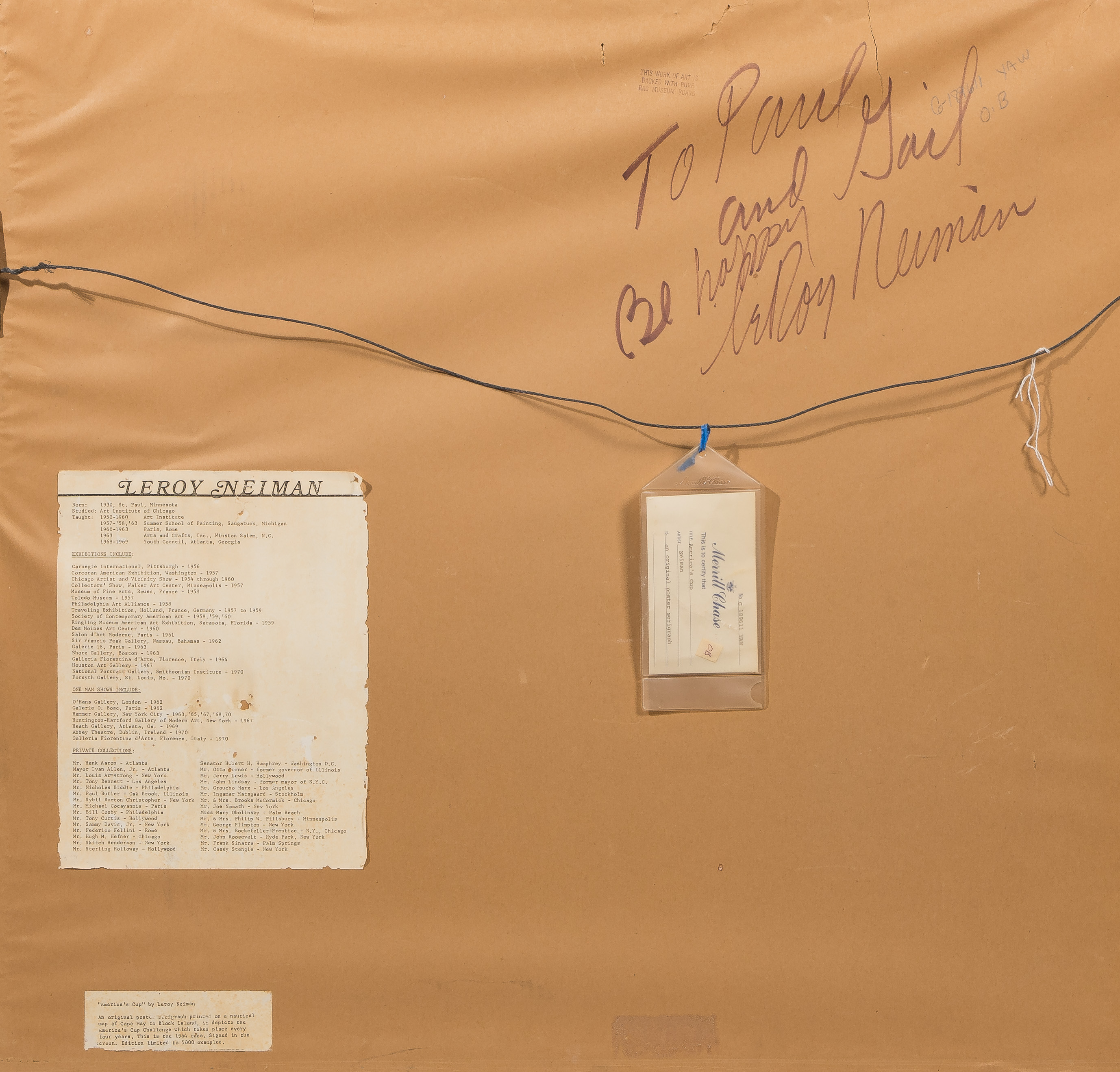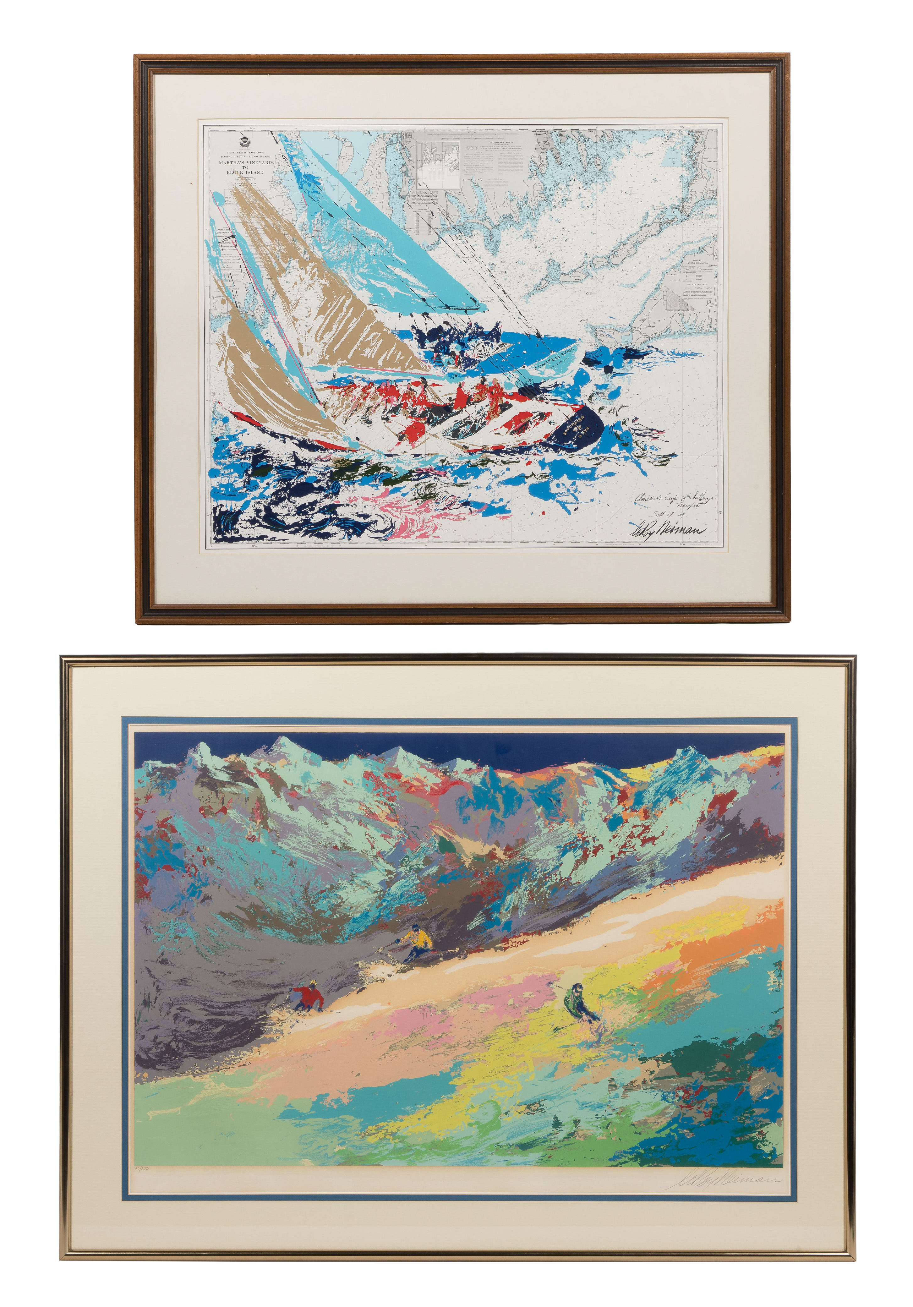 (2) items including 1977 ‘High Altitude Skiing’, pencil signed, #23/300, matted behind acrylic in a metal frame accompanied by a Bowles / Hopkins Gallery, San Francisco 1979 COA as well as 1964 ‘America’s Cup’, printed signature, from an edition of 5000, matted behind glass in a wood frame, Merrill Chase COA