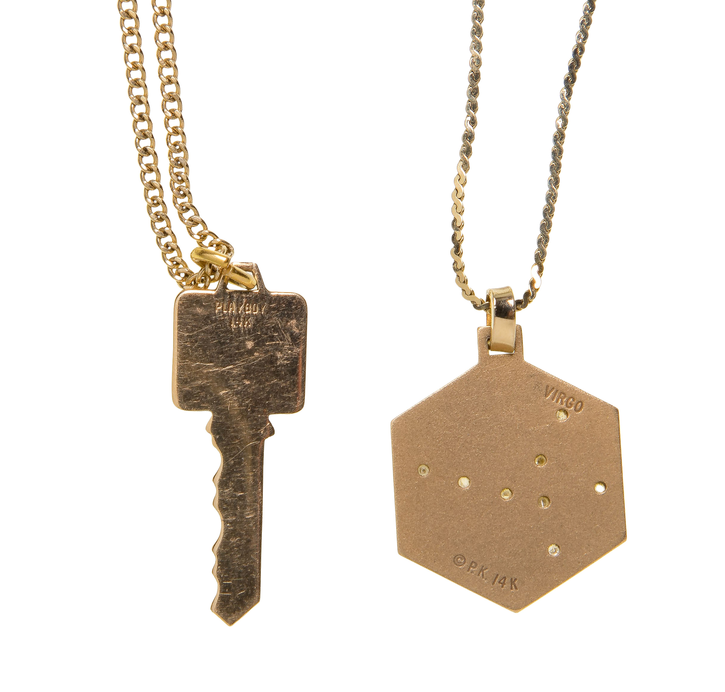 (2) items including a playboy key and an astrological hexagon having the constellation Virgo in diamond accents (all marked ’14k’)