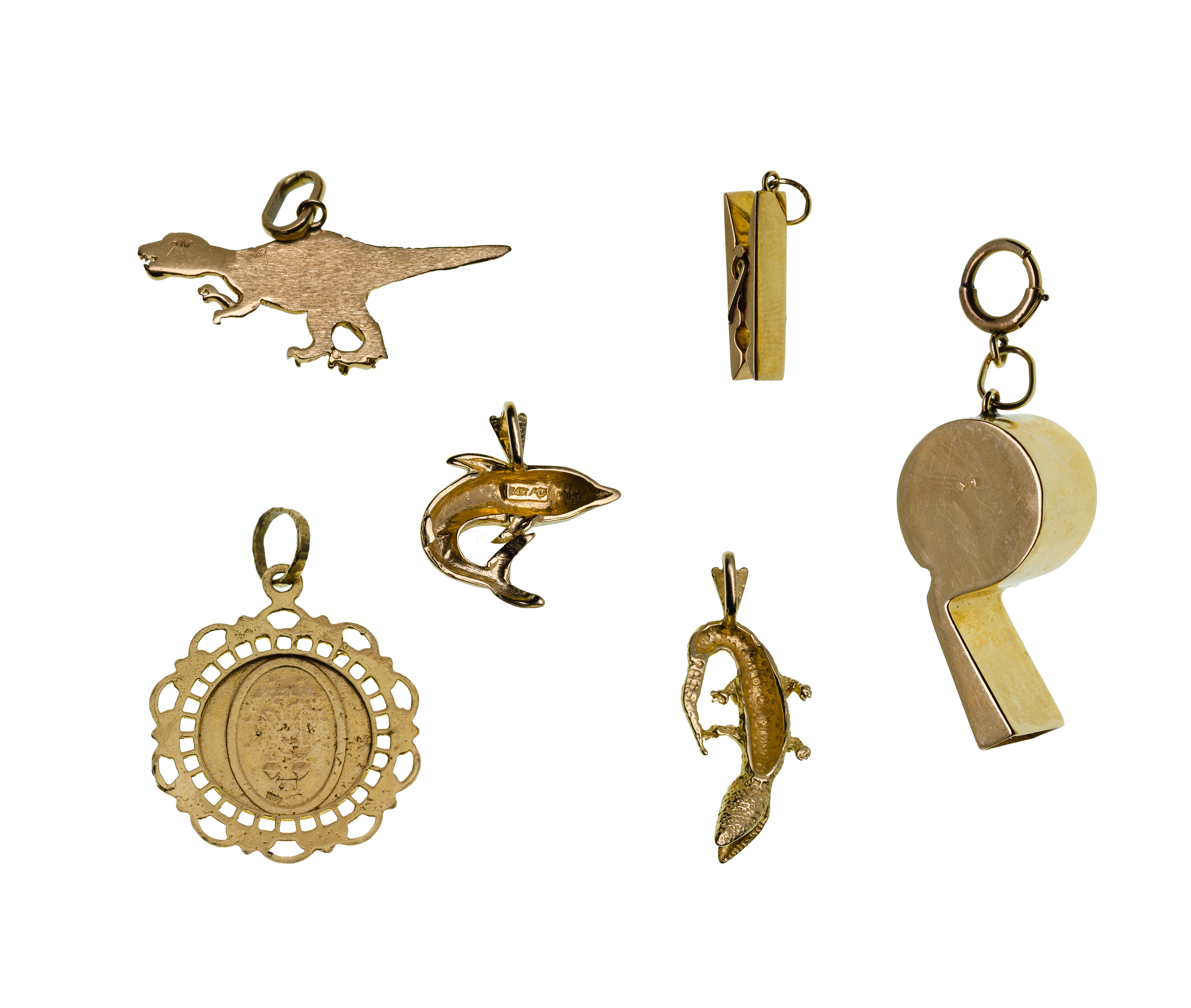 (6) items including (3) pendants and (3) charms (marked ’14k’ / ‘585’)