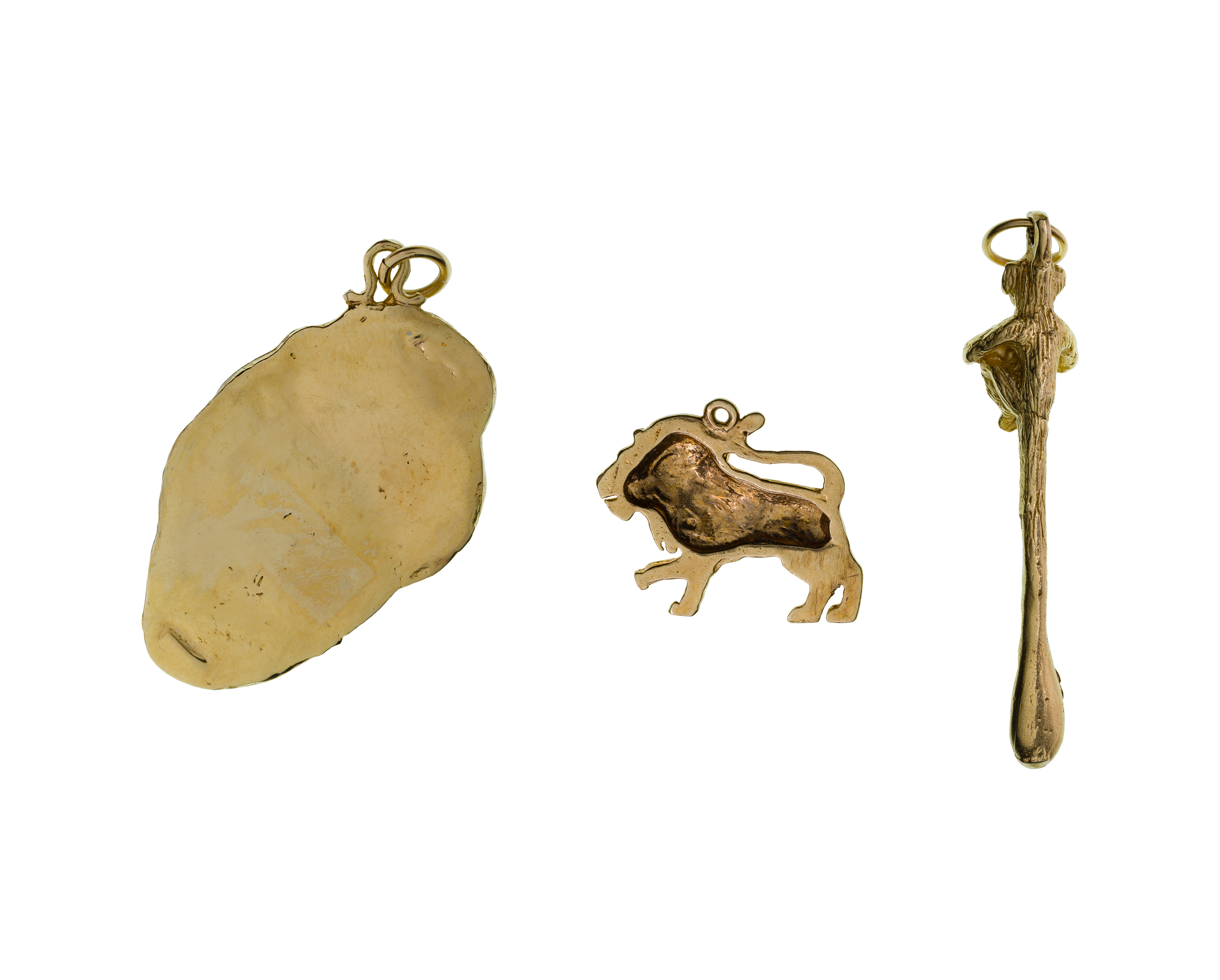 (3) items including a lion, a monkey and a figure (unmarked 14k gold)