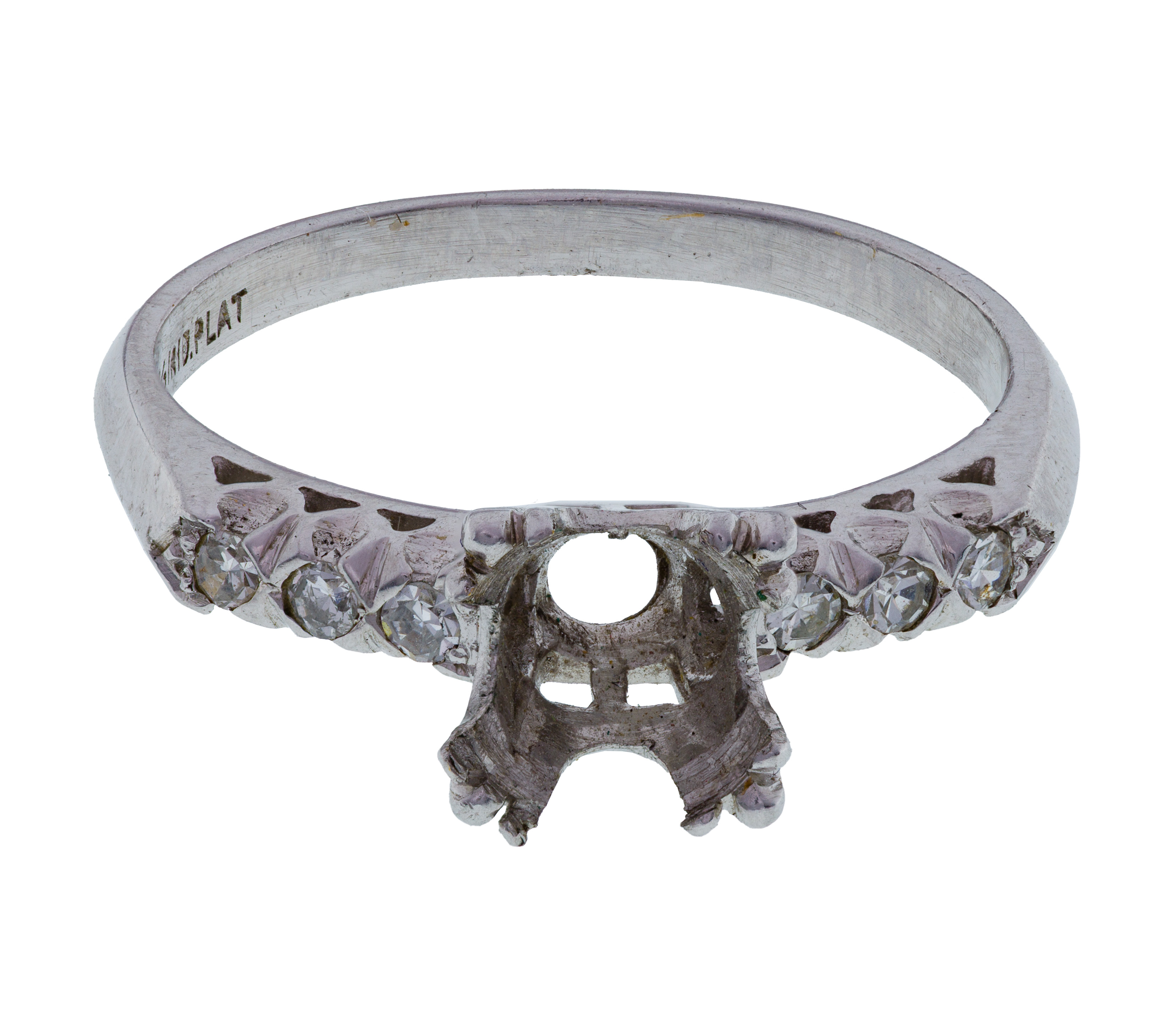 Retaining accent diamonds on either side of central setting (marked ‘10%IRID-PLAT’)