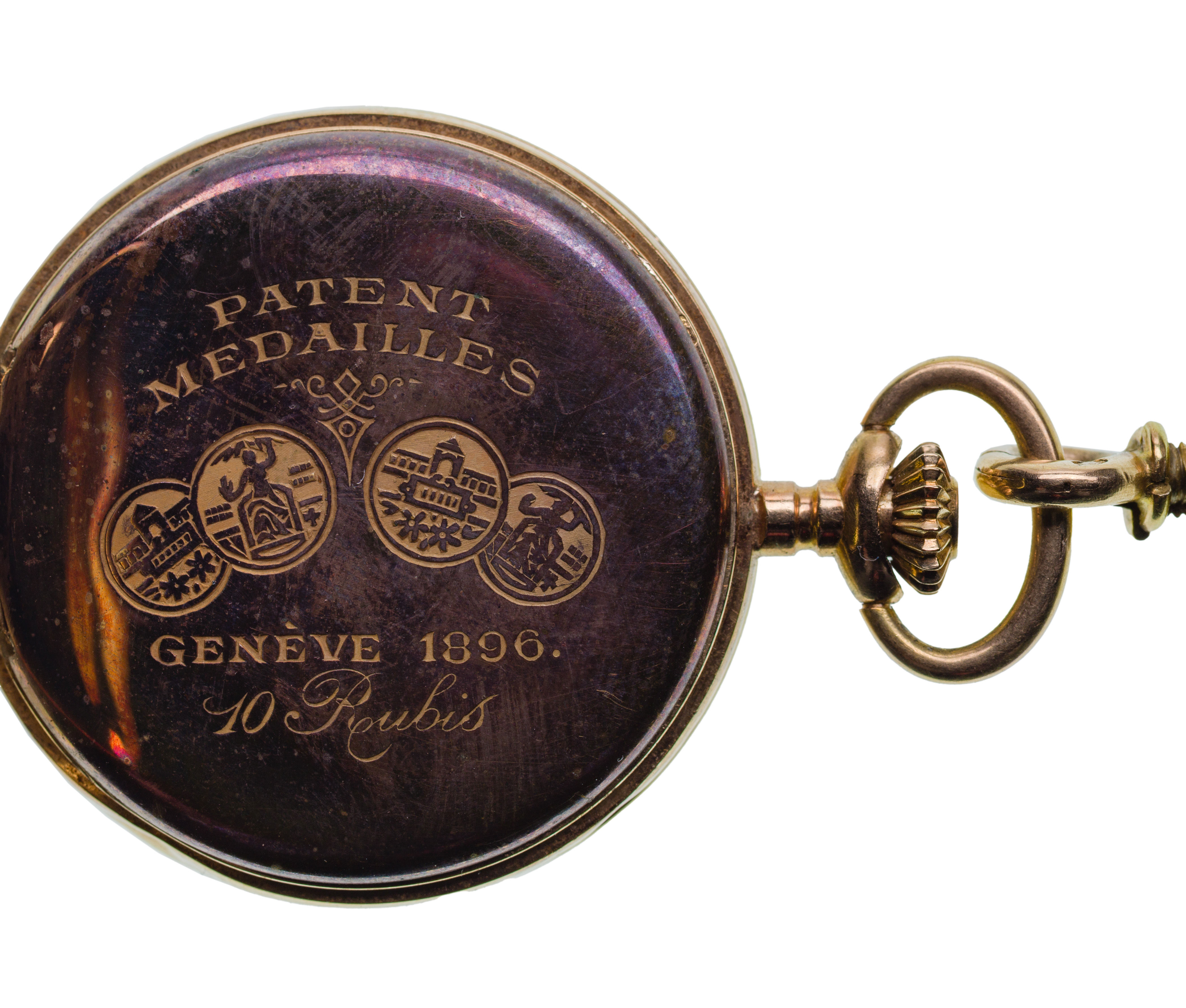 moderate wear, missing crystal, monogrammed and dated 1896, not running when tested