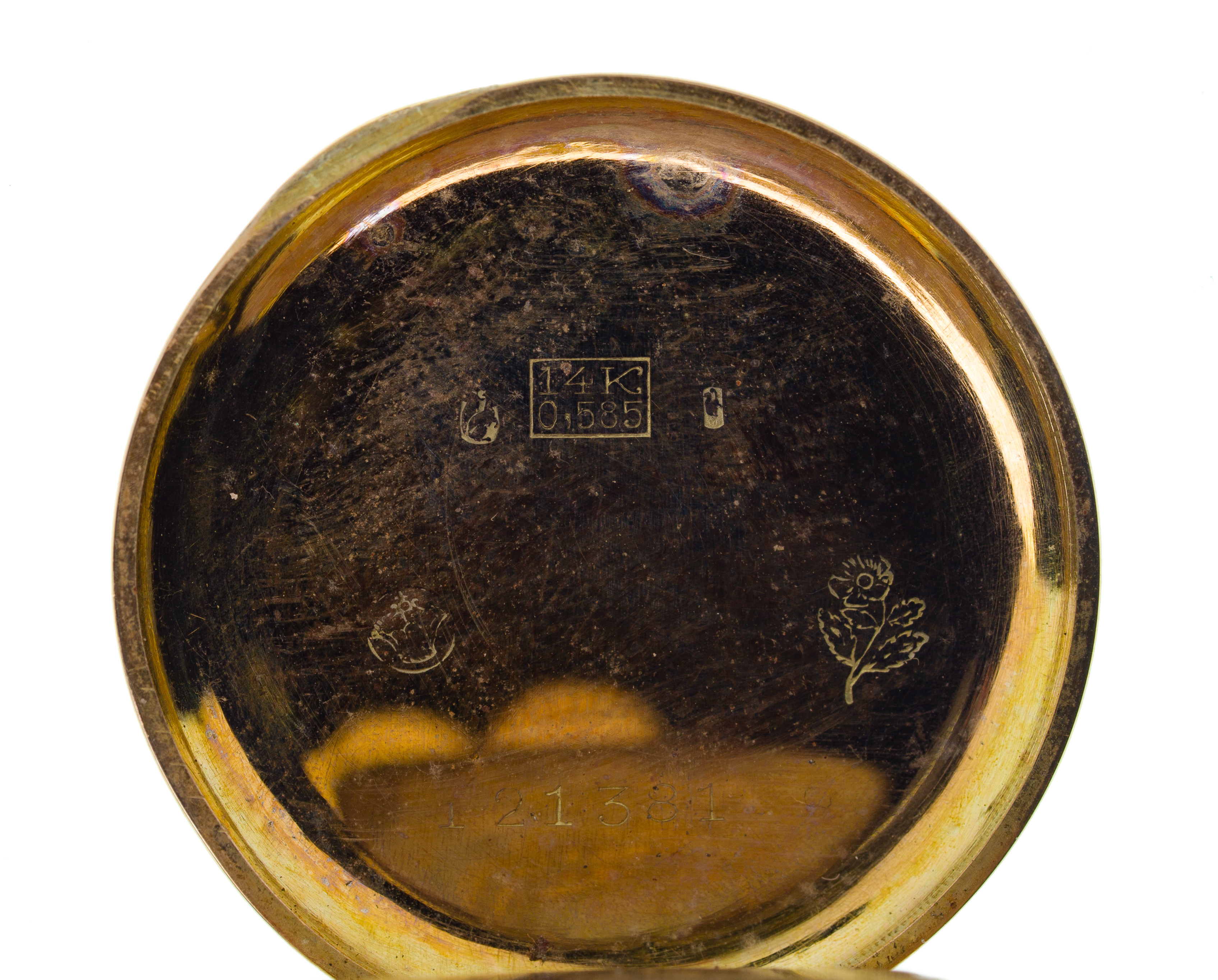 Weight: 14k gold: 16.08 dwts. (total including movement)
