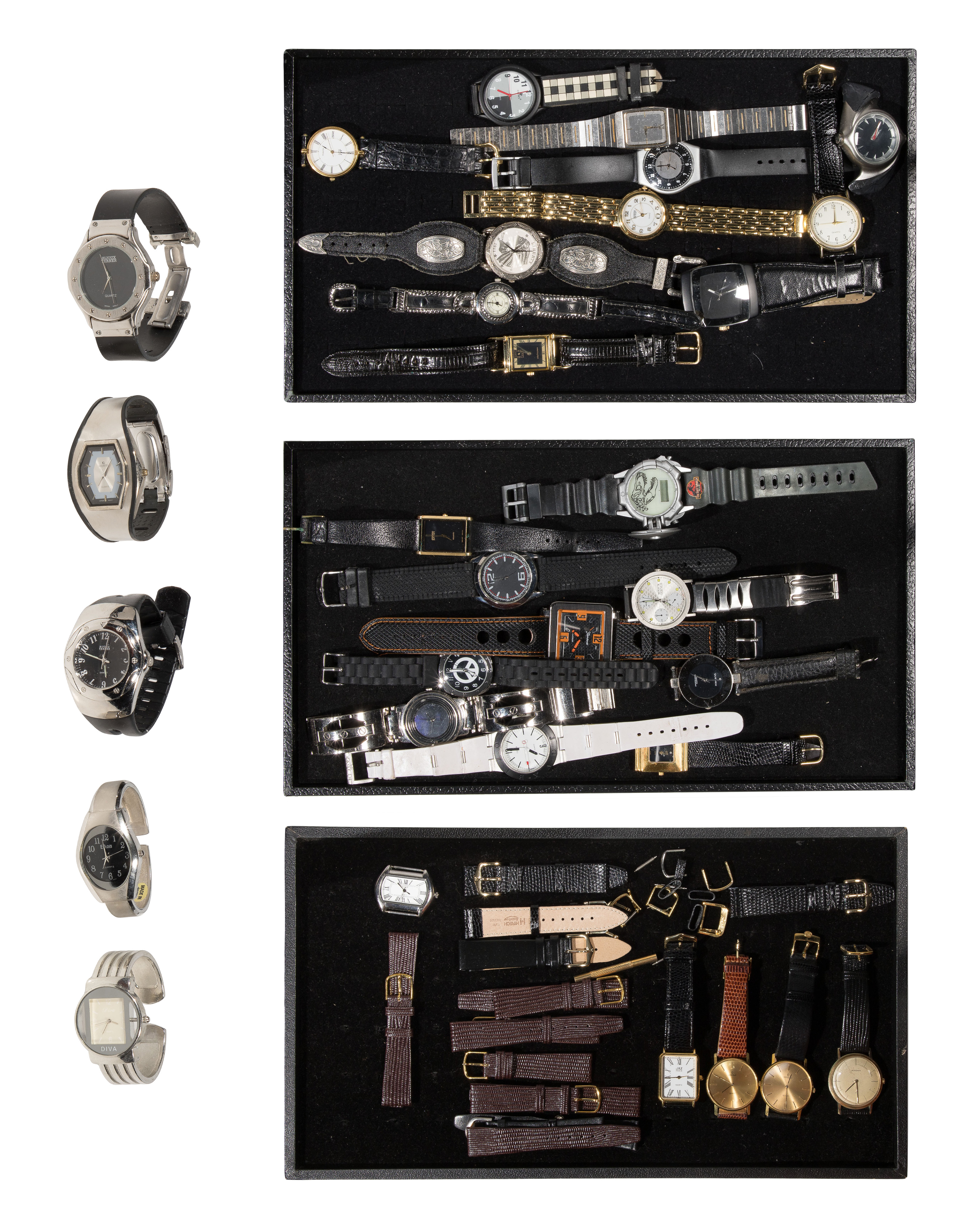 Approximately (30) items including examples by Junevia, Concord, Jaz and Hamiliton as well as watch parts / pieces, most having quarts movements