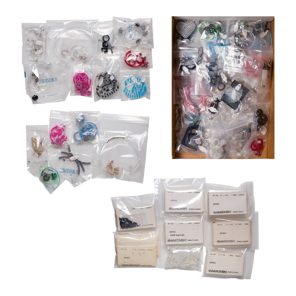 Approximately (50) groups including necklaces, rings, earrings and pins; together with Swarovski crystal beads, some in original packaging