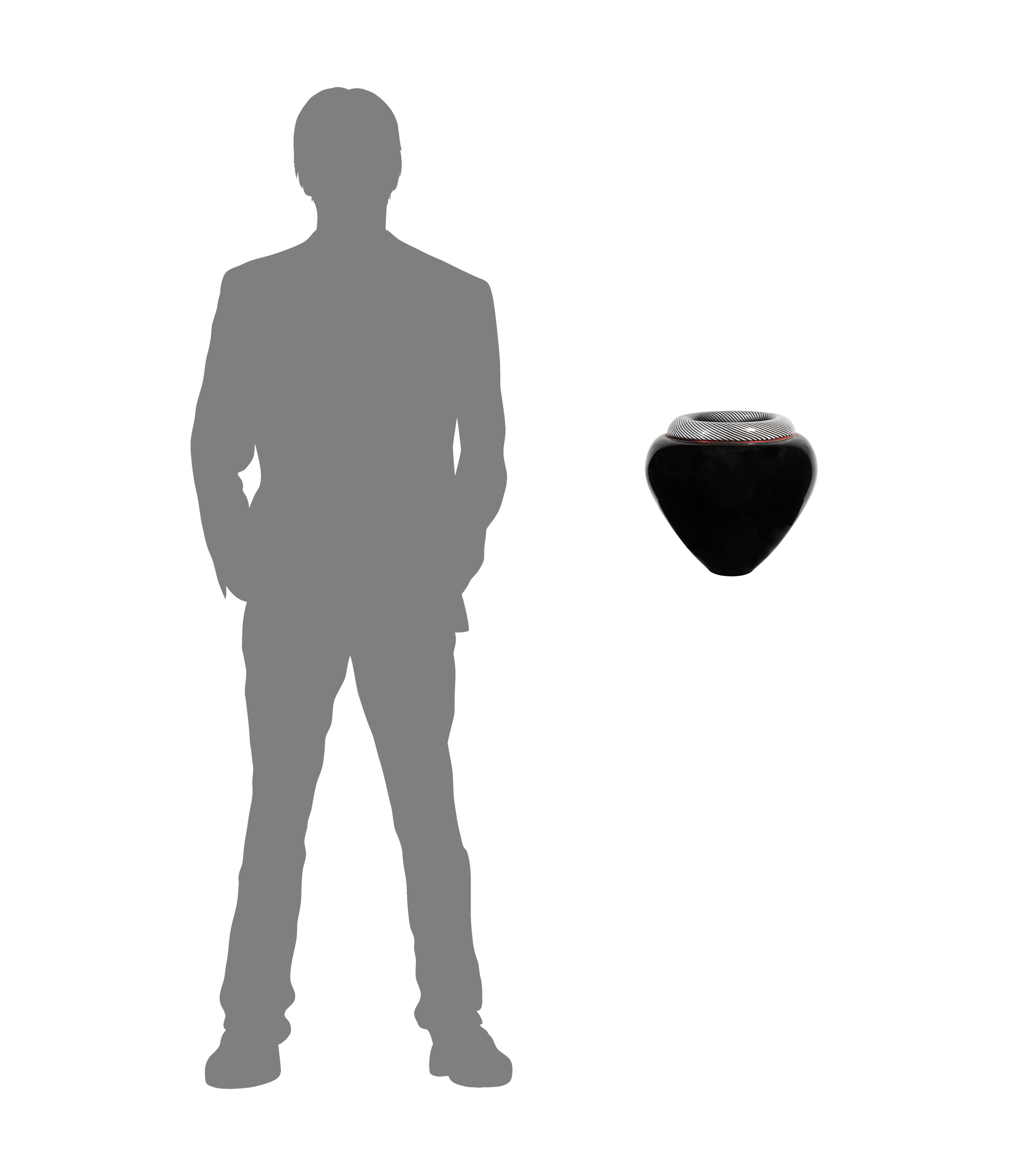 1985, signed, #13/100 on underside, black glass vase having black and white spiral design and red accent band at shoulder