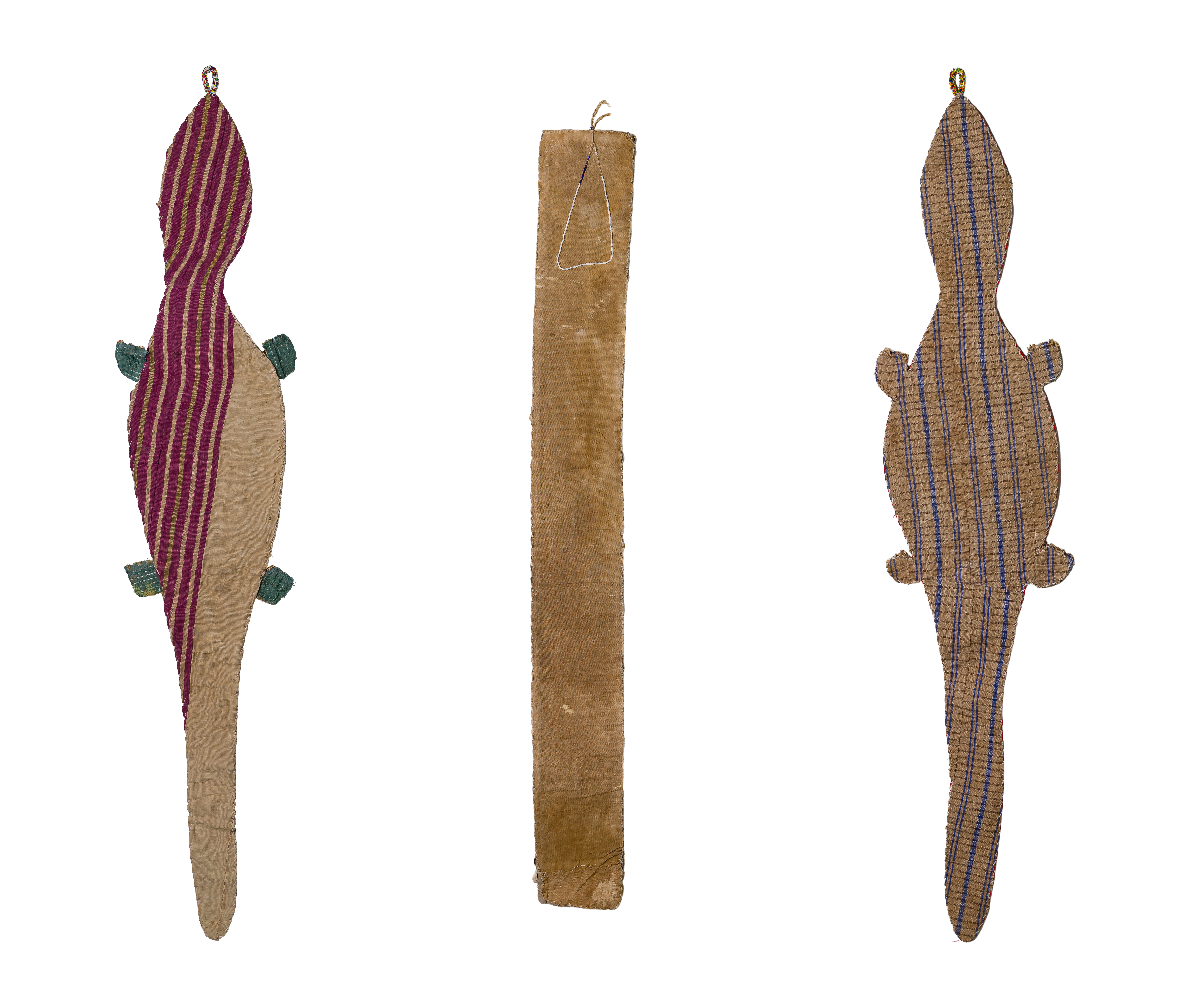 (3) densely-beaded items including (2) sashes and a wall hanging depicting turtles, snakes and Yoruba faces